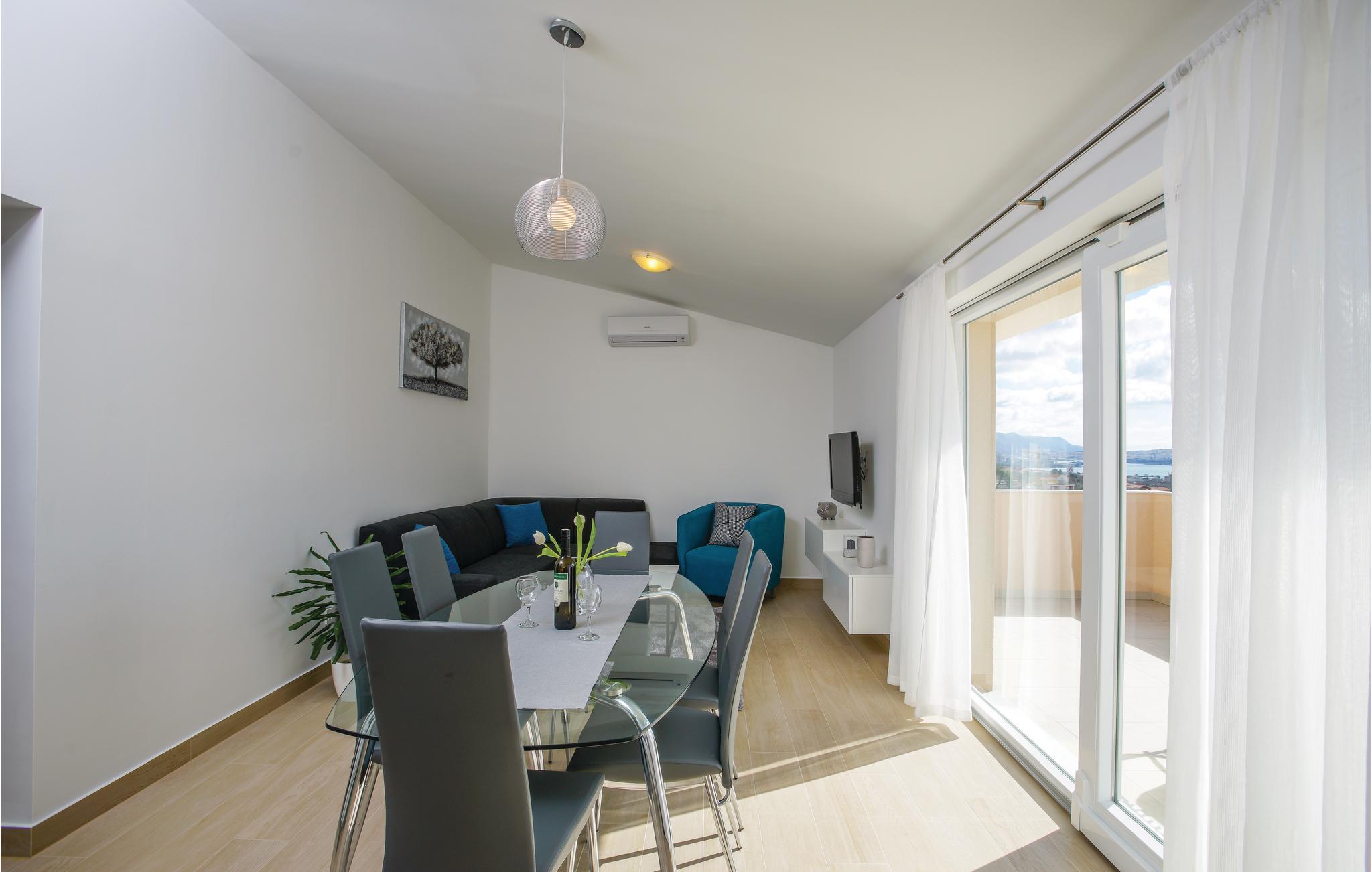 Diese freundliche Ferienwohnung, im zweiten Stock, liegt in einem grünen Gebiet und an einem Ausläufer des Kozjak-Gebirges. Sie liegt weit genug entfernt vom Verkehrslärm, aber trotzdem in Reichweite von herrlichen Stränden. Diesen kleinen, mediterranen Ort dominiert die Festung, die auf einer winzigen Insel vor dem alten Ortskern liegt. Entspannen Sie auf der geräumigen Terrasse mit Ausblick auf die Bucht. Es steht Ihnen auch ein Gemeinschaftsgrill und Spielgeräte für Kinder auf dem Grundstück zur Verfügung. Besuchen Sie auch die historischen Städte Split und Trogir, mit viel Unterhaltung und Kultur.