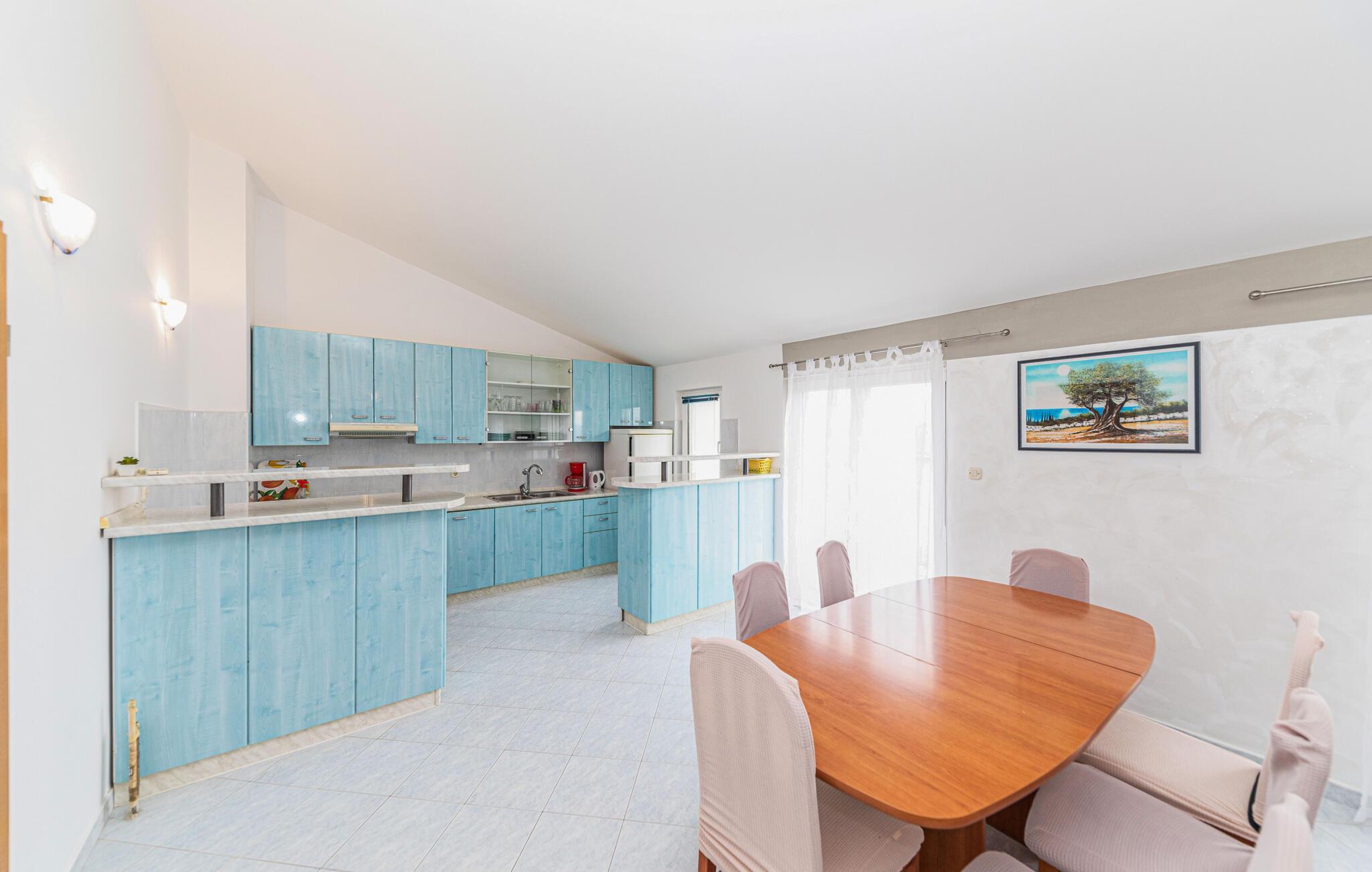 Diese schön eingerichteten Ferienwohnungen befinden sich in Kastel Luksic. CDF632 liegt mit einem Schlafzimmer im 1. Stock. CDF630 hat drei Schlafzimmer und die Deckenschräge reicht teilweise auf 160 cm herab, denn diese Wohnung liegt im 2. Stock. Ebenfalls im 2. Stock zu finden ist CDF631 mit einem Schlafzimmer. Erfrischung finden Sie im schönen, gemeinsamen Pool neben dem Haus. Das Haus ist gut positioniert, es liegt in der Nähe der historischen Städte Trogir und Split. Auch ist die Nähe zum Flughafen für alle ideal, die nicht im eigenen Auto anreisen. Neben dem Pool gibt es eine Außendusche, eine Toilette und eine überdachte Terrasse mit Sommerküche.