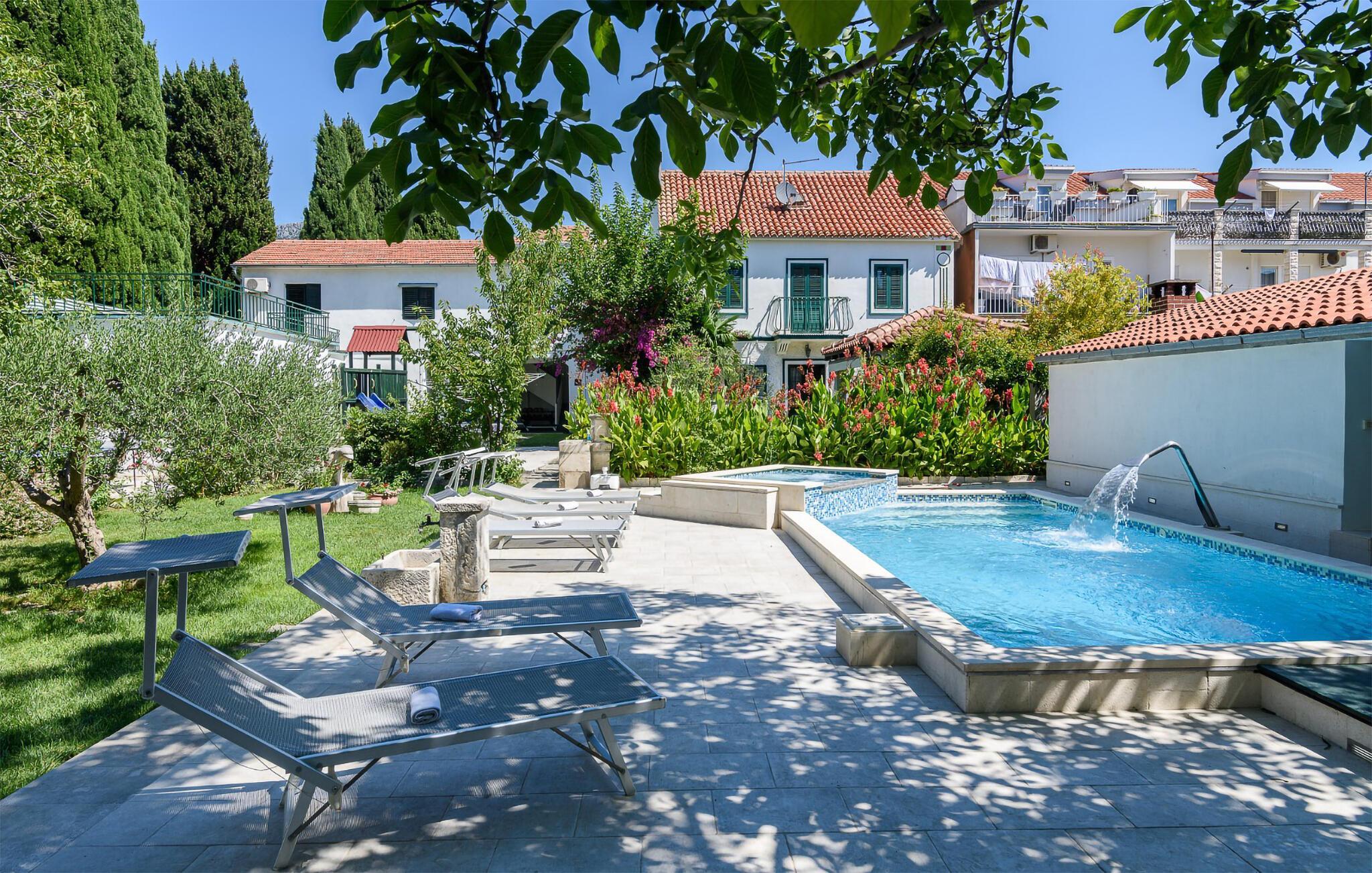 Nur einen Katzensprung entfernt finden Sie einen Kieselstrand, ideal für einen erfrischenden Sprung ins kristallklare Wasser der Adria. Erkunden Sie die Umgebung und entdecken Sie die charmante Altstadt von Trogir, die nur eine kurze Fahrt entfernt ist.