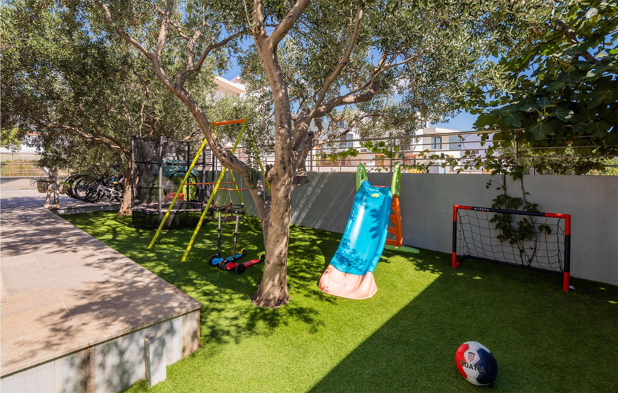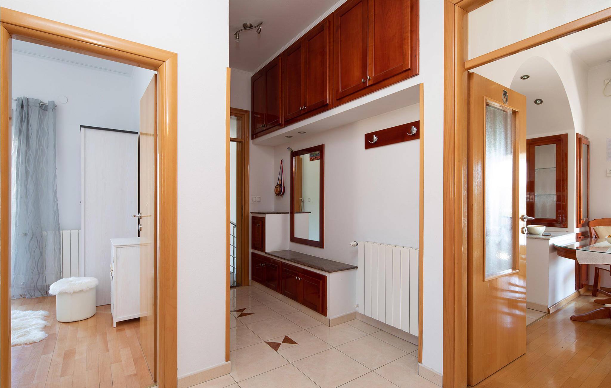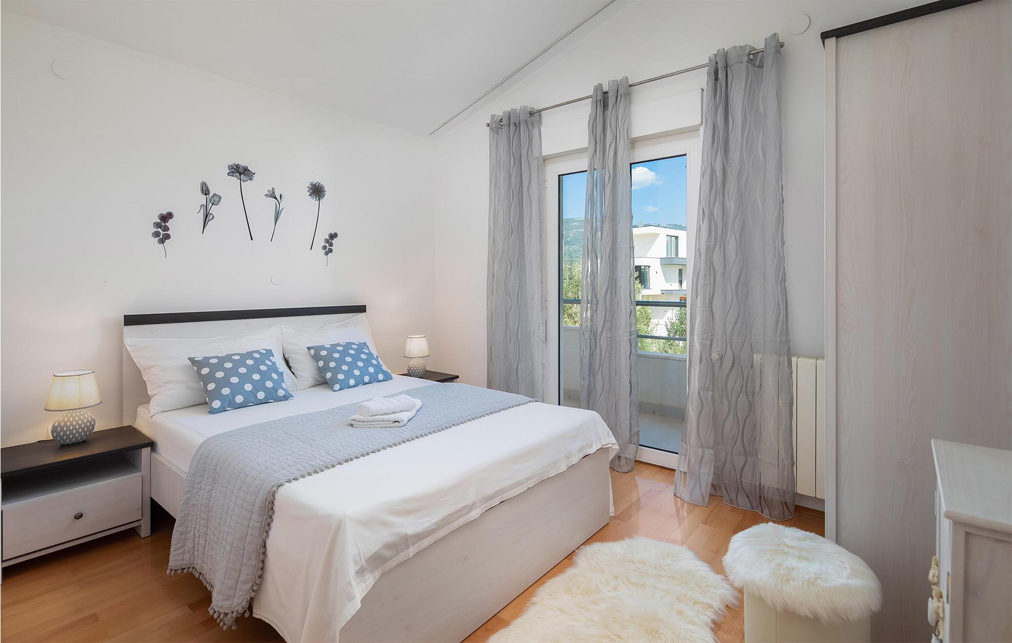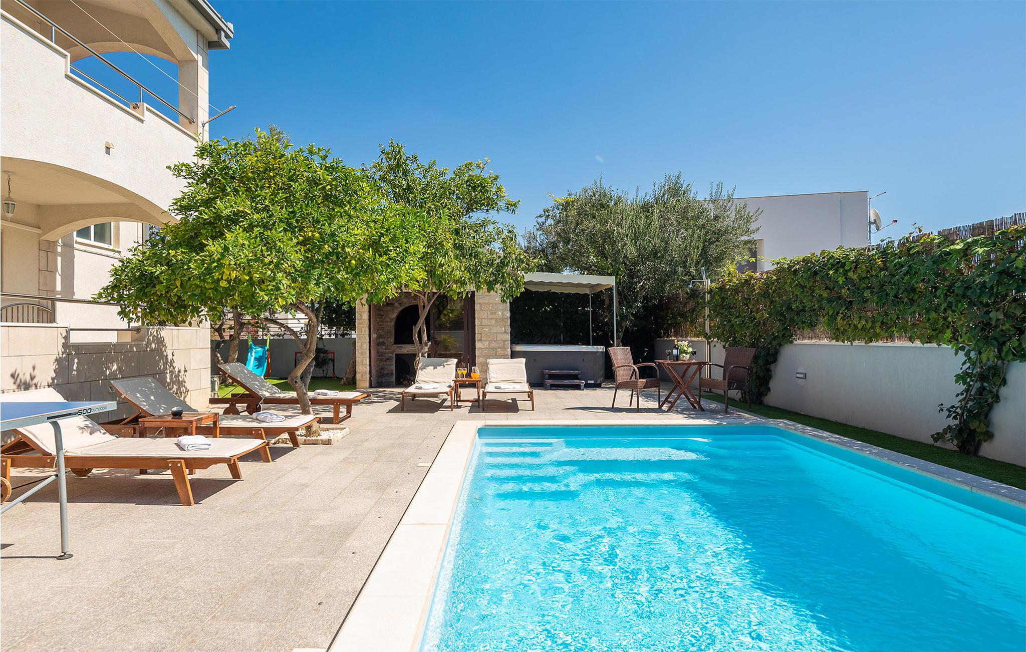 Nicht weit entfernt finden Sie den nächstgelegenen Kiesstrand, der ideal für einen erholsamen Tag am Meer ist. Erkunden Sie die historische Umgebung von Kastel Novi und bestaunen Sie die Architektur des nahe gelegenen Kastel Stari. Besuchen Sie auch die UNESCO-geschützte Altstadt von Trogir, die nur eine kurze Fahrt entfernt liegt. Schlendern Sie durch die engen Gassen, genießen Sie lokale Spezialitäten in einem der charmanten Restaurants und erleben Sie die mediterrane Lebensfreude.