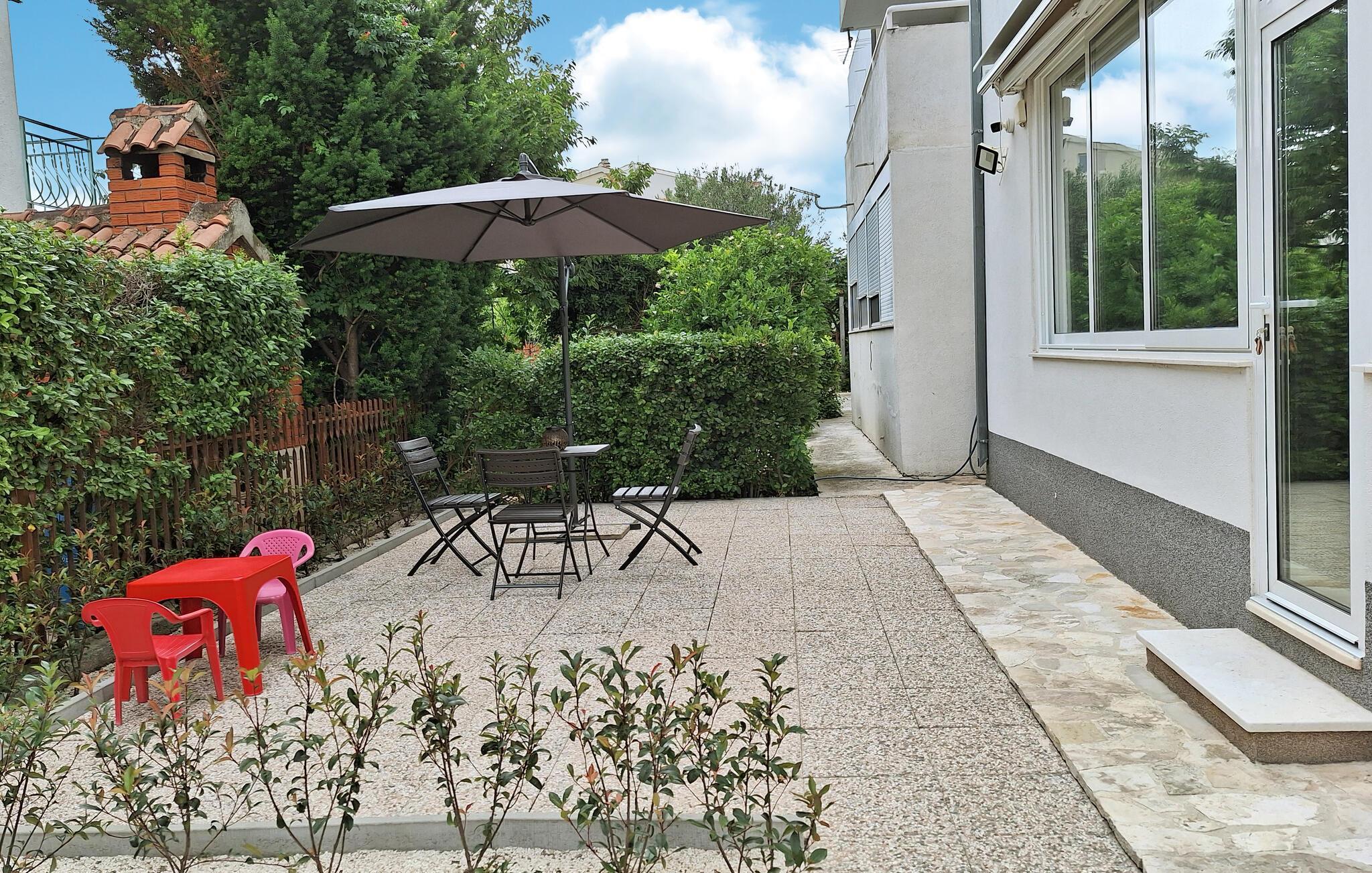 Erfrischen Sie sich nach Belieben im Meer, das Sie hier fast vor der Haustür haben. Unternehmen Sie einen Ausflug nach Trogir, spazieren Sie über die Brücke in die Altstadt und erkunden Sie die Bauwerke, die von der reichen Vergangenheit dieser beeindruckenden Stadt zeugen, darunter der Cipiko Palast, die Kirche Sveti Petar und die Gebäude am Platz Johannes Paul II.