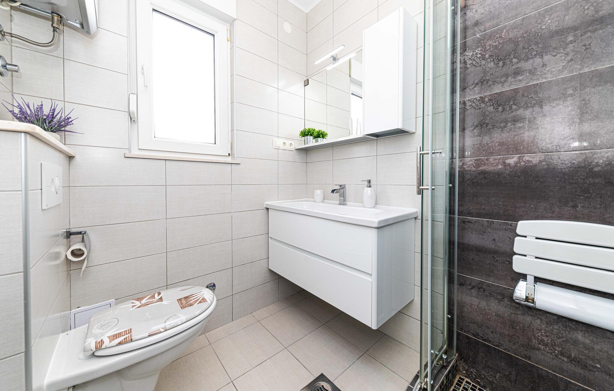 Badezimmer 5m2 (nr. 1) - WC. Warmes und kaltes Wasser. Dusche