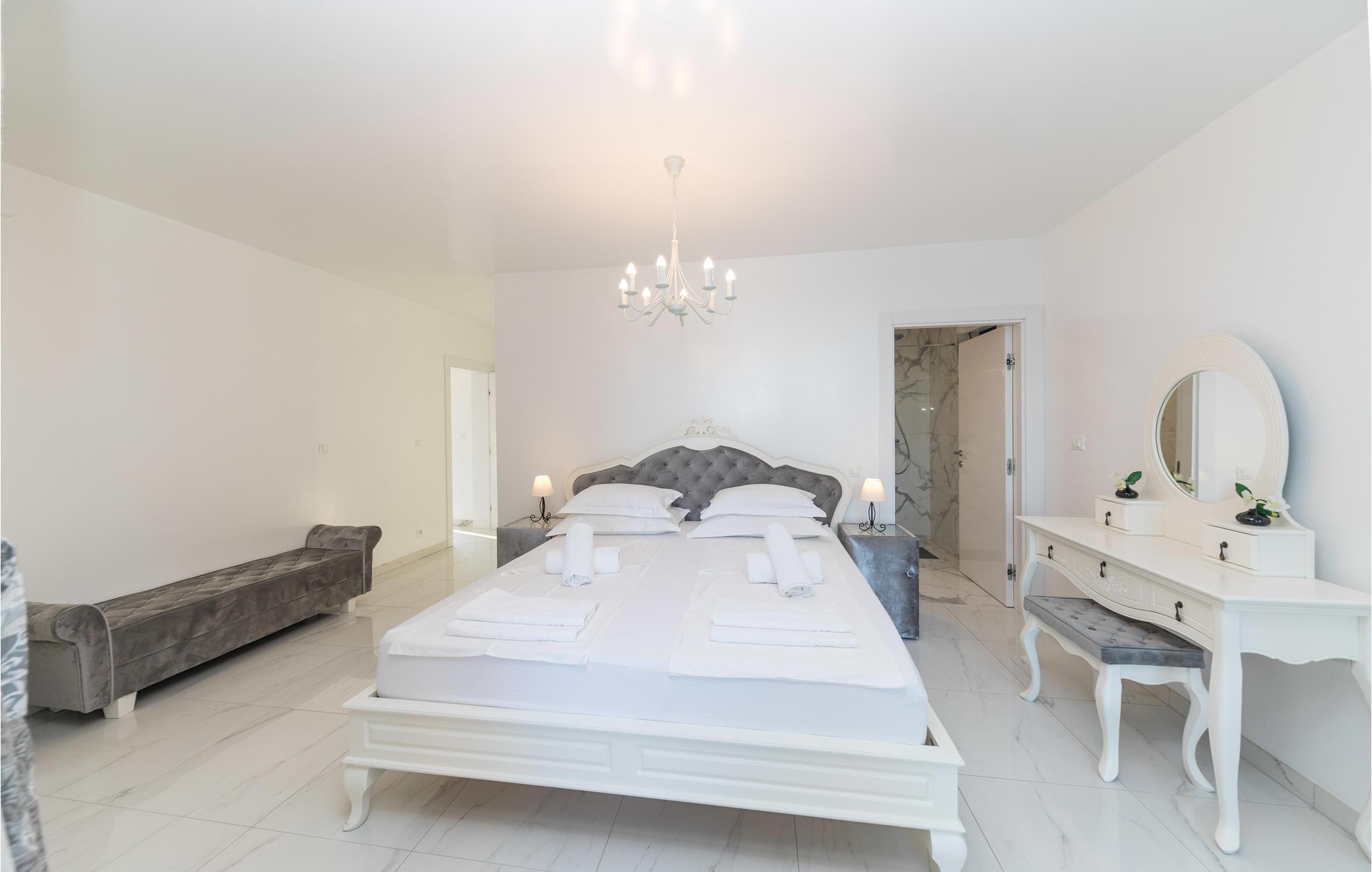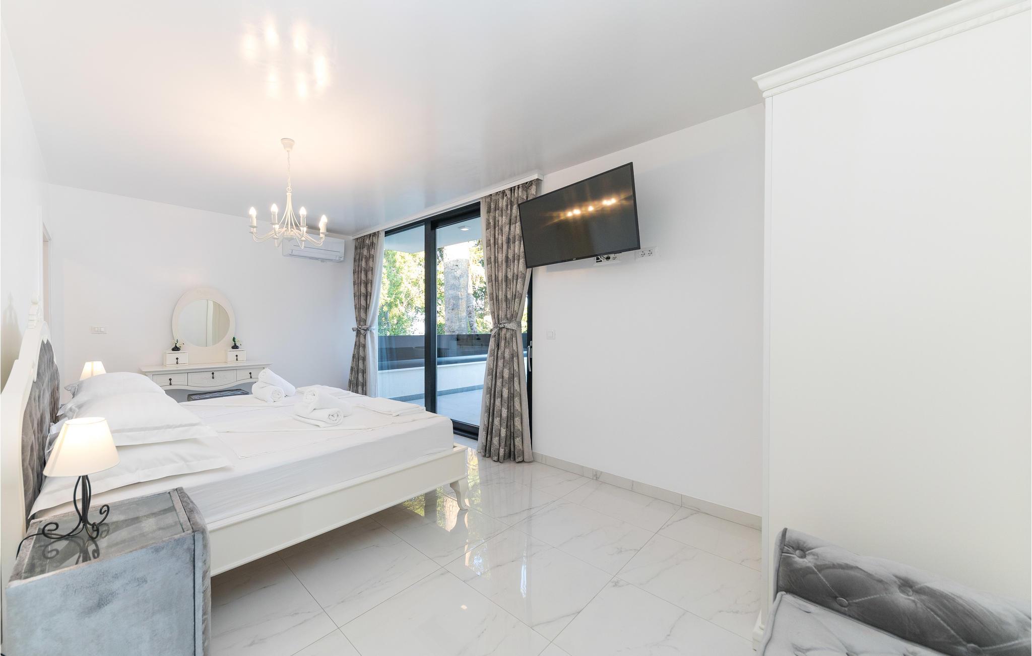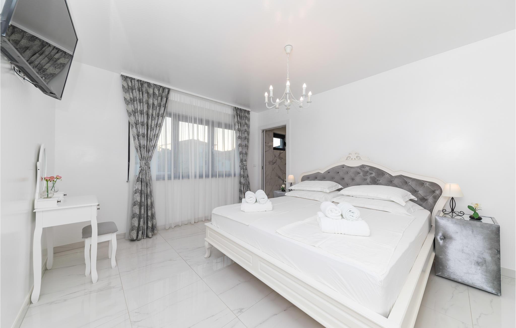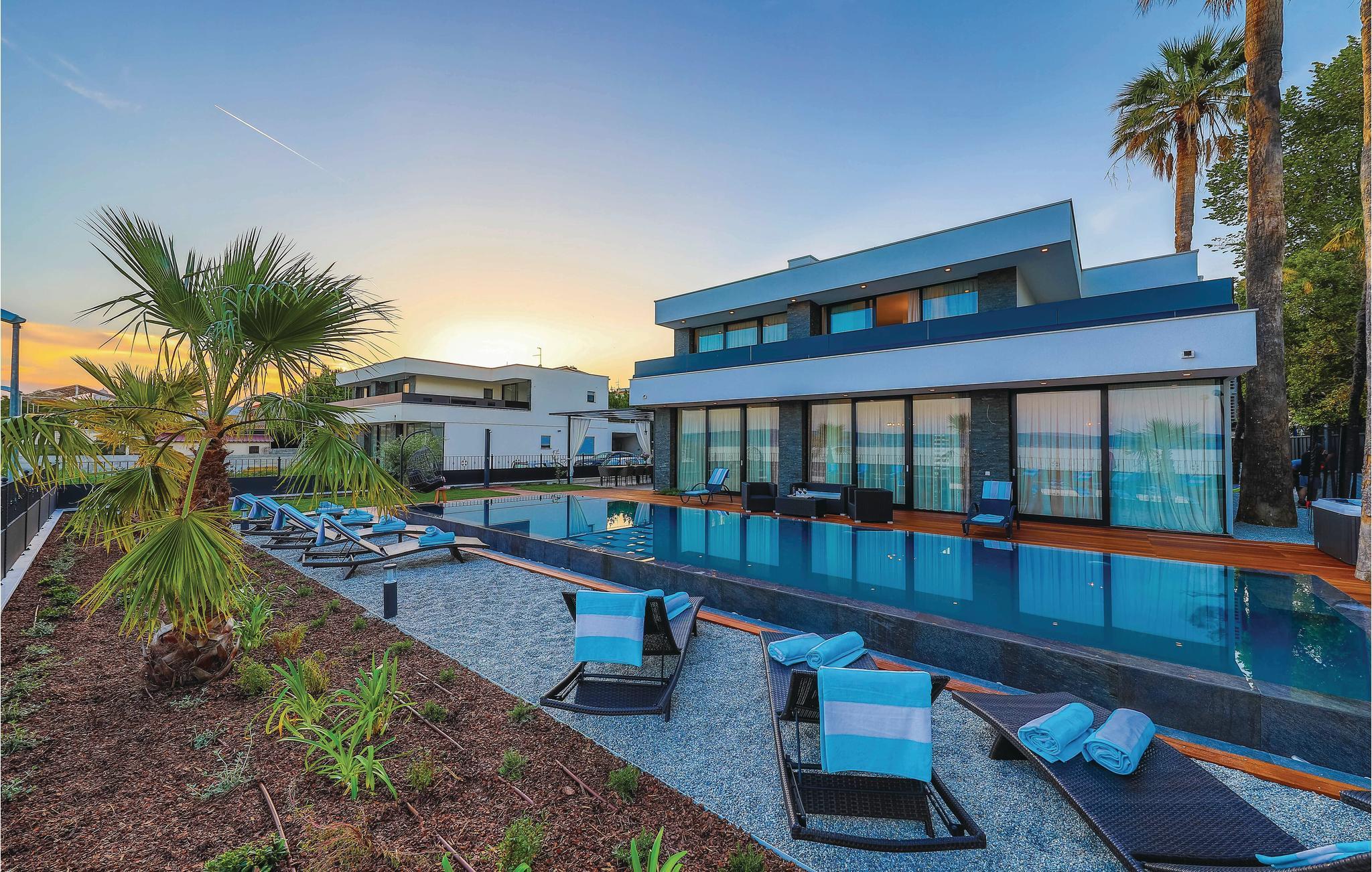 Im Ort Kastel Stari, nahe der Stadt Trogir, steht dieses modern eingerichtete Ferienhaus direkt am Meer. Dieses Feriendomizil bietet alles, was für einen erholsamen Urlaub notwendig ist. Große Fensterscheiben bringen viel Licht ins Innere und ermöglichen einen wunderschönen Meerblick. Im Gartenbereich steht Ihnen ein Außenpool zur Verfügung, der den Aufenthalt ebenfalls bereichert. Alle Aktivurlauber werden besonders am Fitnessraum Freude finden. Zur Erholung steht Ihnen nach einem Training dann der Whirlpool und lädt Sie ein, zu entspannen. Besuchen Sie die Stadt Trogir und erkunden Sie das schöne Kulturerbe. Das reiche Gastronomieangebot dieser Stadt wartet auf Sie und bietet traditionelle Köstlichkeiten, die Sie sich auf keinen Fall entgehen lassen sollten.