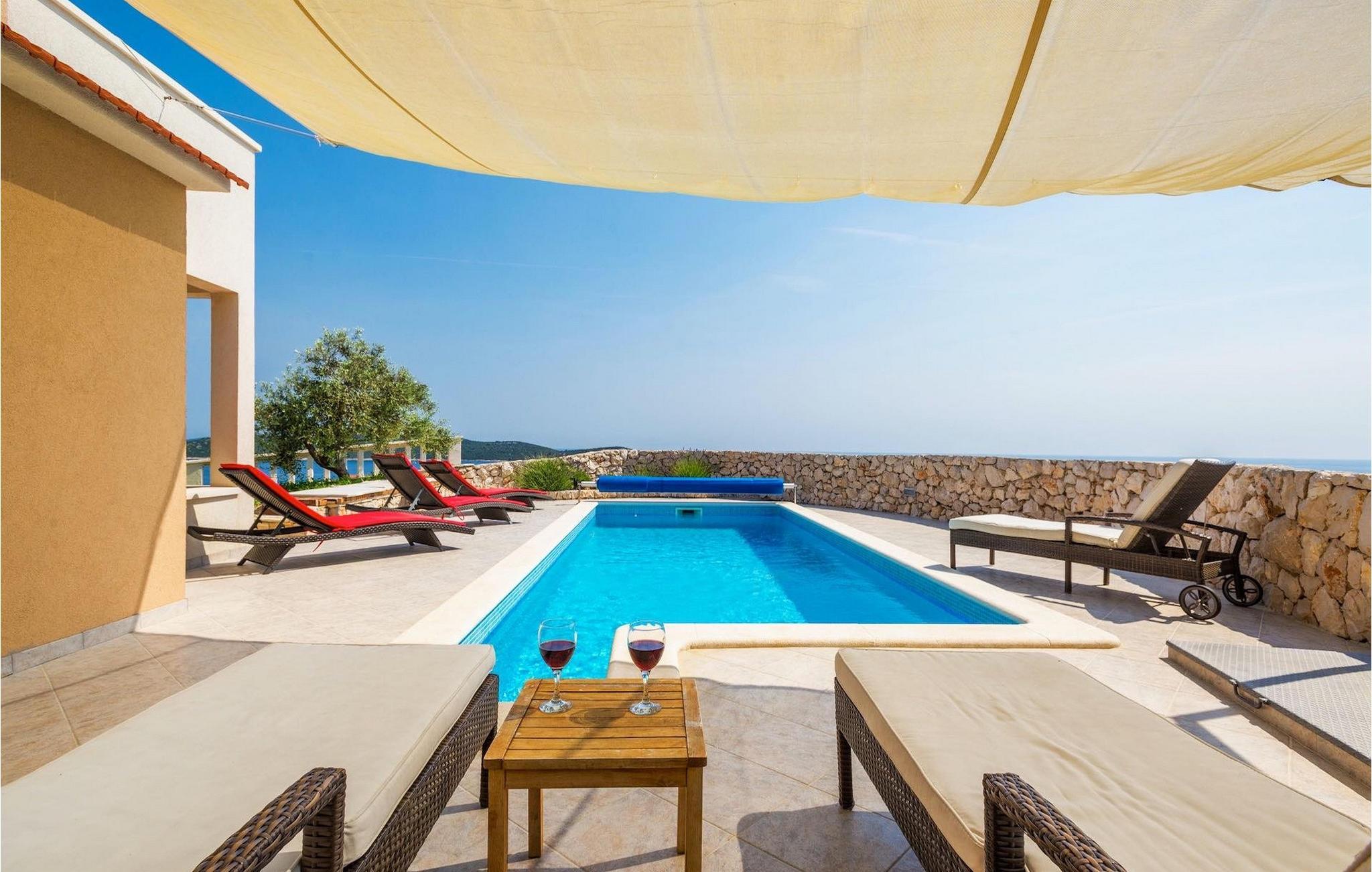 Das Ferienhaus liegt in Sevid, auf einer kleinen ruhigen Halbinsel an der dalmatischen Küste, zwischen Rogoznica und Marina. Ein ruhiges Dorf, Sevid bietet einen schönen Blick auf 2 Buchten, eine Halbinsel und mehrere Inseln. Vom Dorf aus kann man an einem klaren Tag sogar die weit entfernten Inseln von Hvar und Vis sehen. Hier sind Sie in bester Lage, einen entspannenden Urlaub zu machen, mit spektakulären Ausblicken auf die naturbelassene mediterrane Landschaft und das kristallklare Wasser des Meers. Das Wasser um Sevid ist bekannt als das klarste der ganzen Gegend. Die Halbinsel Sevids hat die Form der Schwanzflosse eines Wals, wodurch sie 2 ruhigen Buchte bildet – ideal zum Baden, Schnorcheln, Wassersport treiben und zur Erkundung.