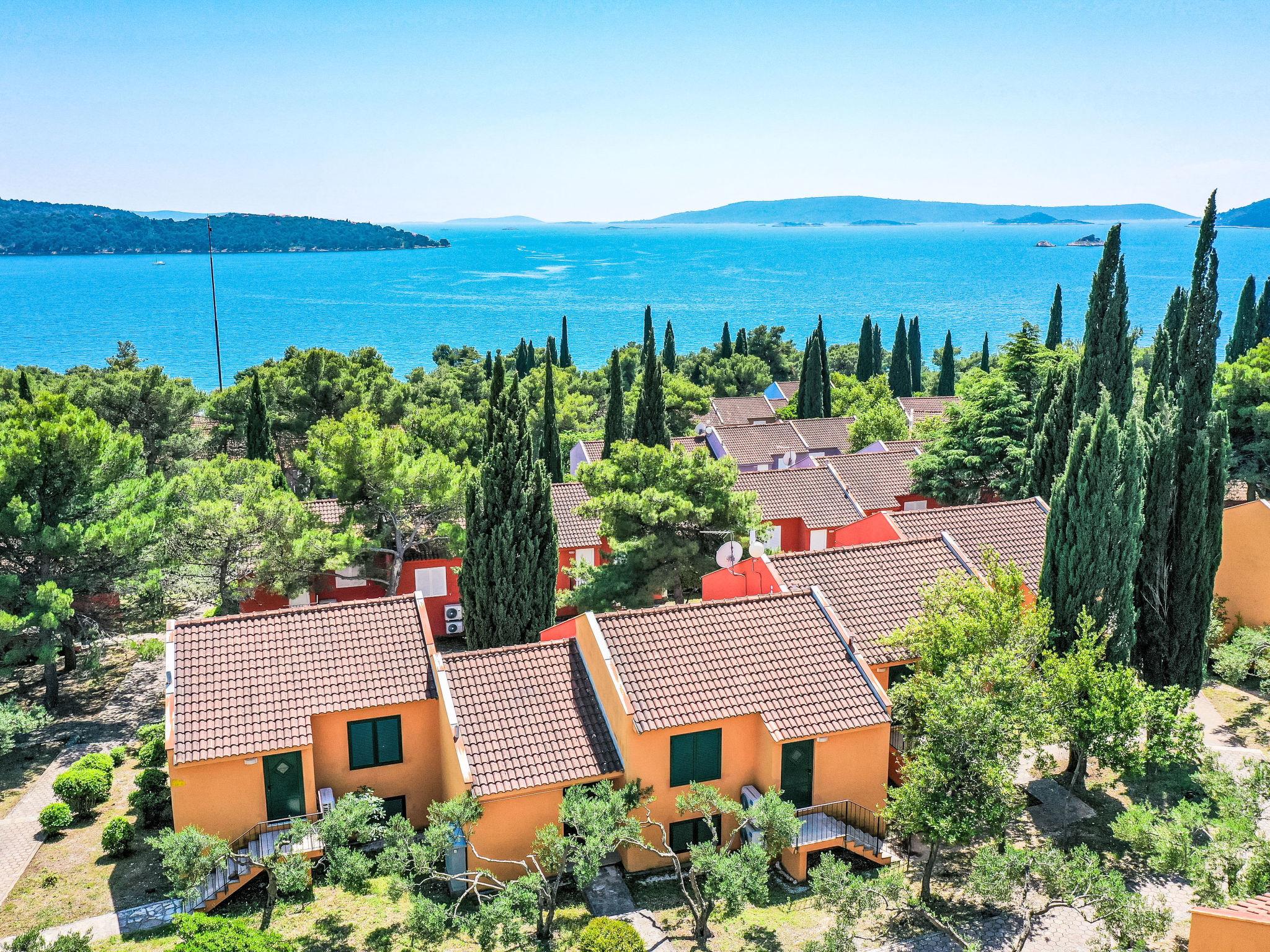 Resort "Medena". In the district of Seget Donji 3 km from the centre of Trogir, 30 km from the centre of Split, at the seaside. For shared use: property with plants and trees, 3 swimming pools (31 m2, depth 140 cm, seasonal availability: 01.Apr. - 01.Nov.) with internal staircase. Children's pool, outdoor shower, tennis (extra), basketball (extra), children's playground. In the complex: reception, restaurant, internet access, laundry. Available: bicycles (extra). Breakfast full board half board possible on request (extra). Airport transfer (extra). Parking (extra) on the premises. Bus stop 650 m. Object suitable for 2 adults + 2 children. Please note: airfield 8 km from the property. The photograph shows a typical example. 1 double sofabed in living/dining area is only for 2 children up to 12 years old. For shared use mini golf and cageball court (on request, extra).