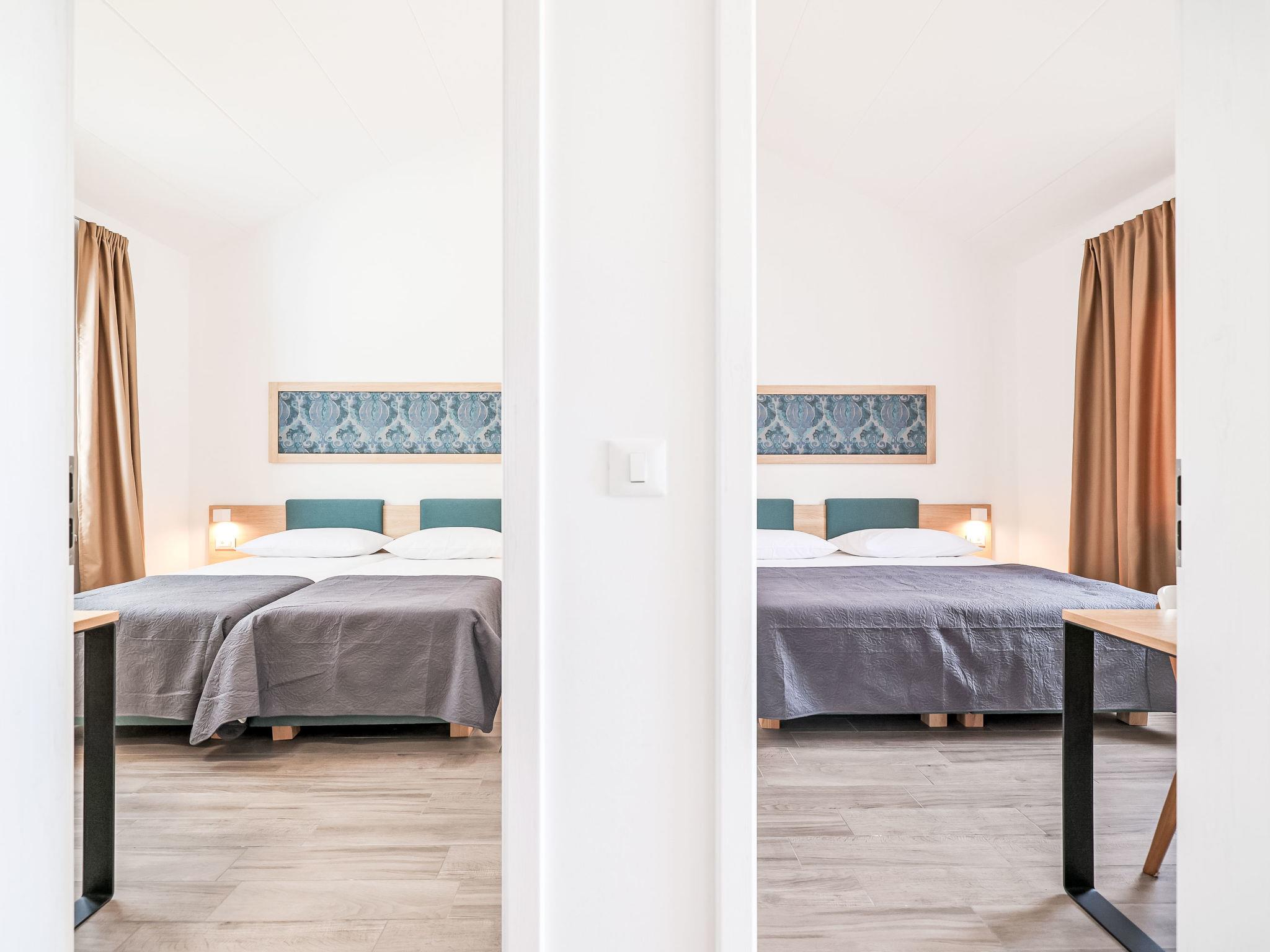 3-room apartment 46 m2 on 1st floor, south facing position. Living/dining room with 1 sofabed (80 cm, length 180 cm), satellite TV (flat screen), air conditioning. Exit to the terrace. 2 rooms, each room with 2 beds (90 cm, length 200 cm). Open kitchen (2 ceramic glass hob hotplates, microwave, electric coffee machine). Shower/WC, sep. WC. No heating option. Terrace 13 m2, roofed. Terrace furniture. Facilities: baby cot (extra). Internet (WiFi, free). Maximum 1 small pet/ dog allowed. The houses are situated 160-250 m from the sea and the beach.