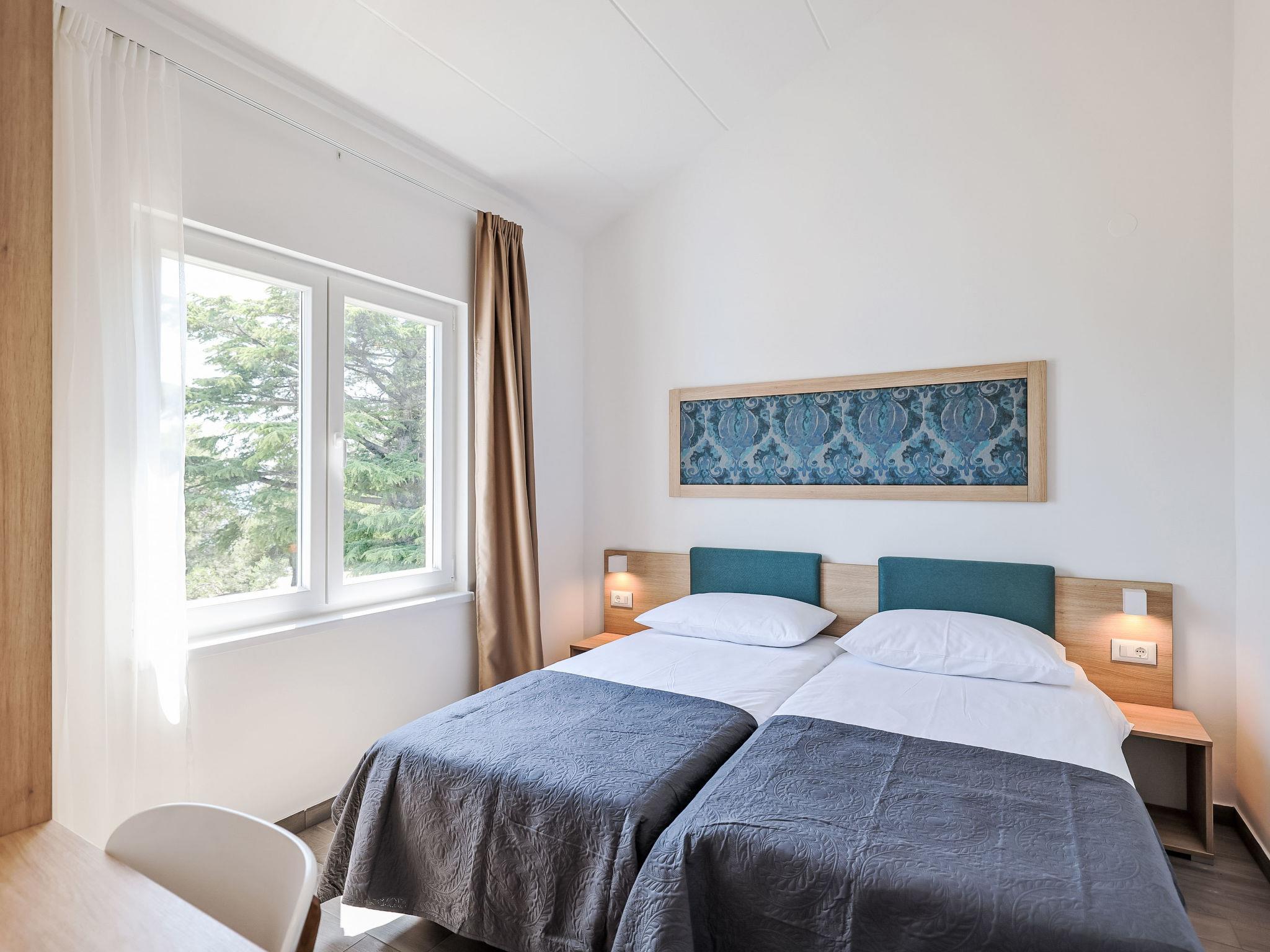 Resort "Medena". In the district of Seget Donji 3 km from the centre of Trogir, 30 km from the centre of Split, in a sunny position, at the seaside. For shared use: property with plants and trees, 3 swimming pools (31 m2, depth 140 cm, seasonal availability: 01.Apr. - 01.Nov.) with internal staircase. Children's pool, outdoor shower, tennis (extra), basketball (extra), children's playground. In the complex: reception, restaurant, internet access, laundry. Available: bicycles (extra). Breakfast full board half board possible on request (extra). Airport transfer (extra). Parking (extra) on the premises. Bus stop 650 m. Object suitable for 4 adults + 1 child. Please note: airfield 8 km from the property. The photograph shows a typical example. A sofa bed in the living/dining area is only suitable for 1 child up to 12 years old.