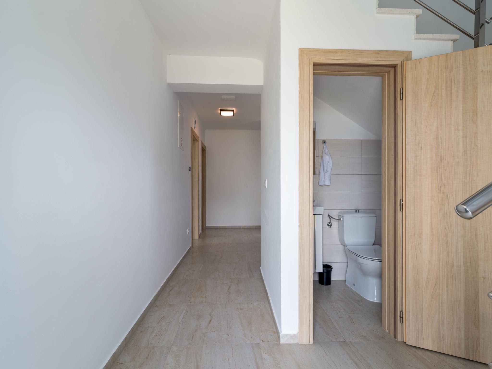 6-room house 145 m2. Modern furnishings: living/dining room with 1 sofabed, kitchen corner and satellite TV (flat screen), air conditioning. Exit to the terrace. 1 room with 1 double bed. 1 room with 2 beds. Living/dining room with 1 double sofabed (140 cm, length 220 cm), satellite TV and air conditioning. Exit to the terrace. 1 room with 1 french bed (180 cm, length 200 cm), shower/WC and air conditioning. Exit to the terrace. 1 room with 1 french bed (180 cm, length 200 cm), shower/WC and air conditioning. Open kitchen (oven, dishwasher, 4 ceramic glass hob hotplates, toaster, kettle, freezer, electric coffee machine). Shower/WC, sep. WC. No heating option. Terrace 16 m2, roofed, terrace 35 m2, roofed. Terrace furniture, deck chairs. Panoramic view of the sea. Facilities: safe, mosquito net. Internet (WiFi, free). Each house with living/dining area, open kitchen and 2 bedrooms.