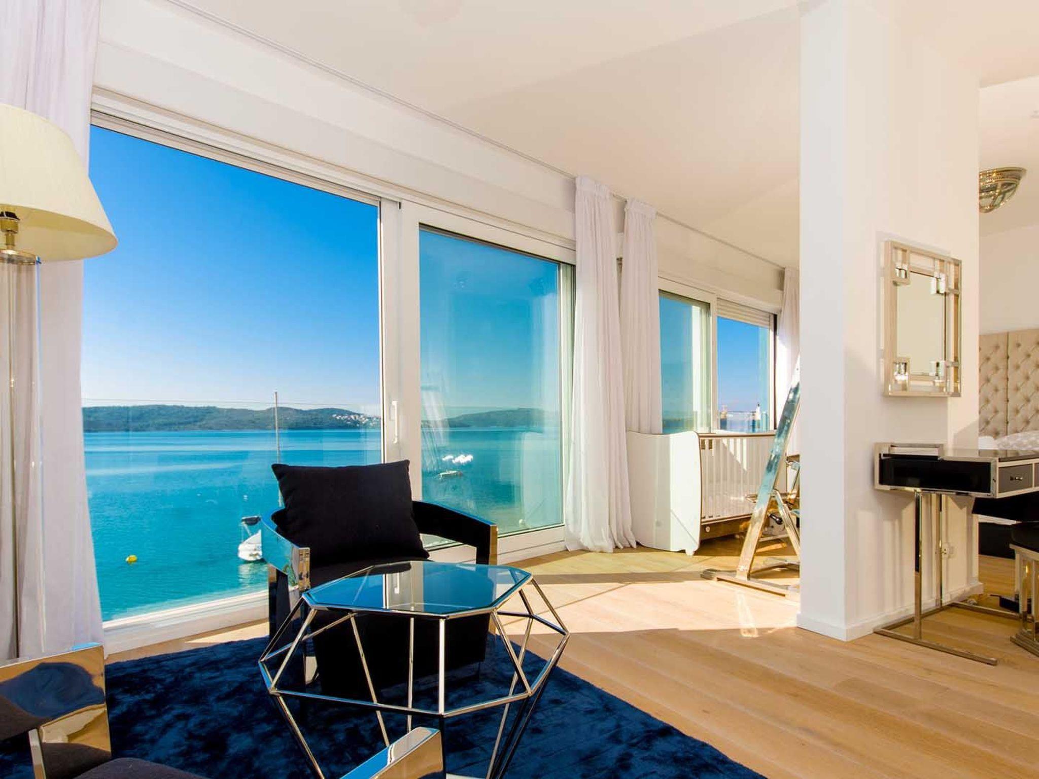 Villa Luna Azzurra is a luxurious superbly decorated beachside holiday villa located on the small island of Ciovo, just 900 m from the historical UNESCO protected city center of town Trogir which is connected to the island with a bridge.