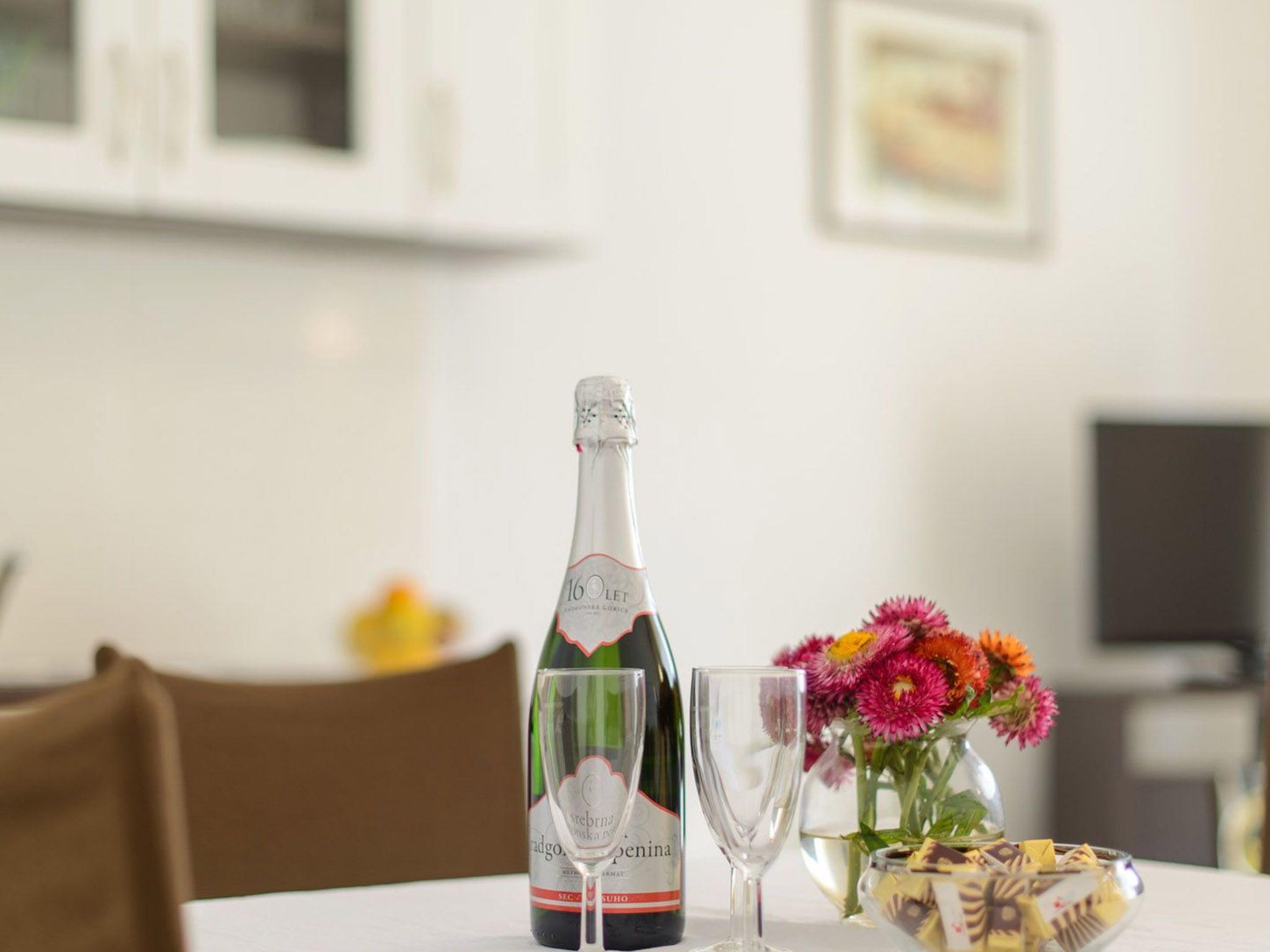 Apartment Sunrise covers 40 m2 and is located on the ground floor of a family house. The apartment consists of 1 bedroom with double bed, 1 bathroom with shower, modernly furnished living room with sofa bed for 2 persons, dining area and a kitchen. The living room has access to a spacious balcony with outdoor table and chairs. Apartment Sunrise can accommodate up to 4 persons (2+2). Apartment Sunrise is equipped with air condition, Wi-fi, SAT-TV, iron and ironing board, stove, oven, hood, refrigerator with freezer, electric kettle, coffee maker, washing machine and hair dryer. Baby cot and high chair are available on request. The property offers 1 parking place, free of charge.