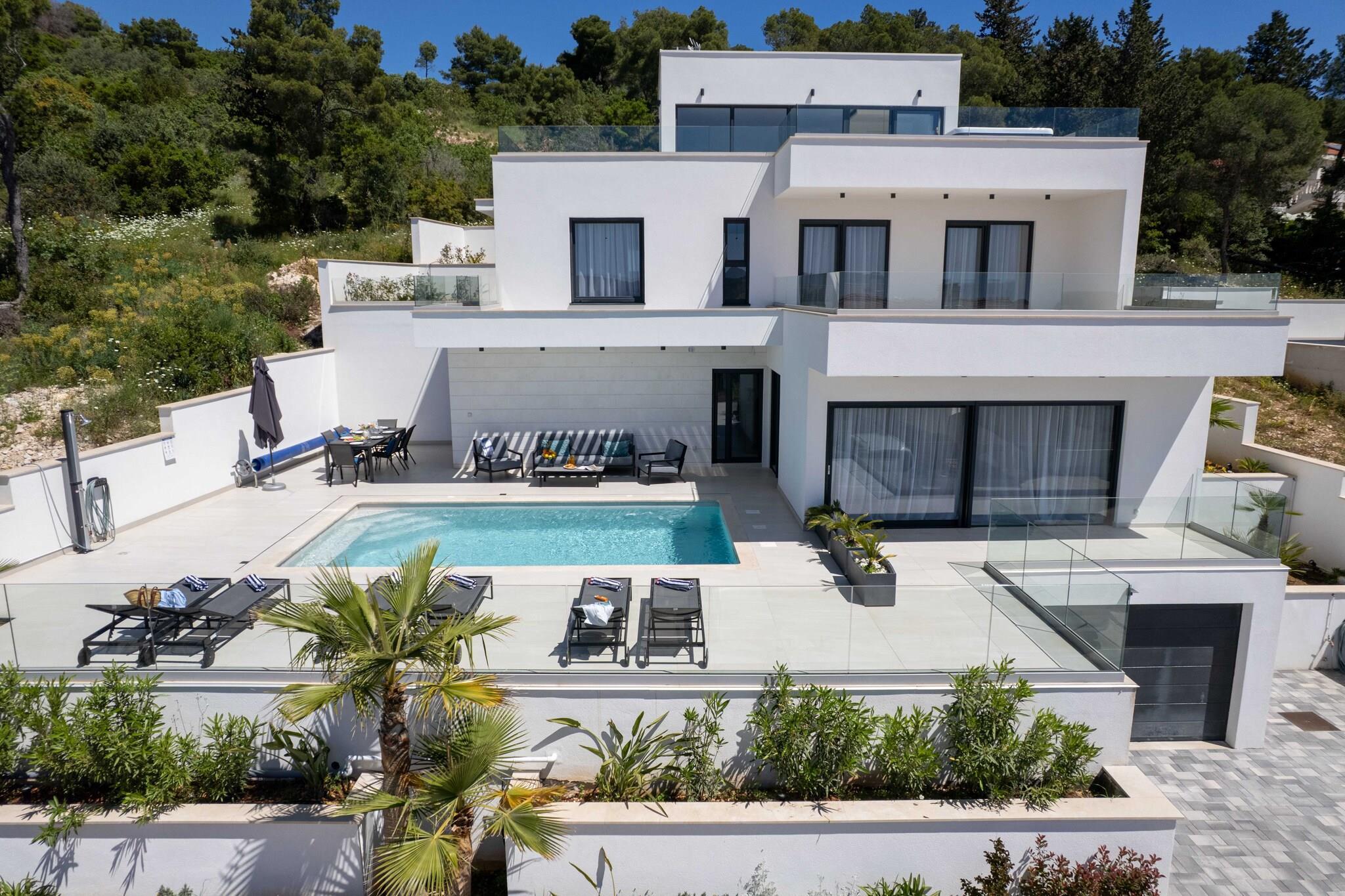 Villa Oasis in Trogir, Split-Dalmatia County, Croatia, is a luxurious villa offering modern amenities such as free Wi-Fi, air conditioning, a fully equipped kitchen, and a private pool. It features stylish interiors, spacious living areas, and outdoor terraces with beautiful views. Located near the historic town of Trogir, the villa is ideal for families, couples, and groups seeking a serene and comfortable retreat while exploring the Adriatic coast and its cultural landmarks. Note: Private parking is available, reservation is not required. Wi-Fi is available throughout the property. Pets are not allowed. This five-bedroom villa can accommodate up to ten guests. It features an internet-enabled/flat-screen TV and is combined with a living room seating area, sofa, and kitchen. The private bathroom is equipped with a shower and toilet. Thanks to its excellent location, everything you'll need for your vacation is just a short walk away from the property. Grocery stores, cafes, restaurants—everything is within a 200 m radius. The airport is 5 km away from the property.