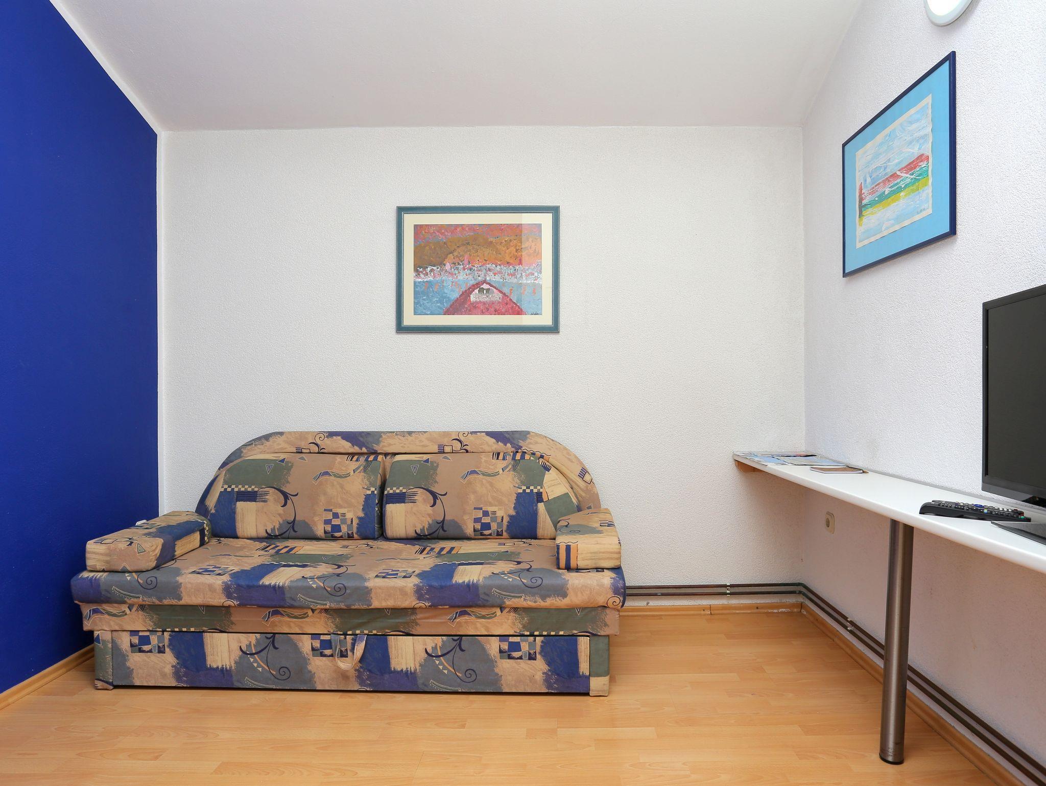 Ferienwohnung bietet Platz für 2 Gäste. Die Betten sind in Schlafzimmern, die es 1 gibt, innerhalb einer Gesamtfläche von 36m2, angeordnet. Die Gäste haben eine eigene Terrasse zur Verfügung, auf der sie in warmen Sommernächten genießen können. Das Apartment bietet Meerblick. Es ist erlaubt, Speisen auf dem Gemeinschafts-Grill vorzubereiten. IM PREIS INBEGRIFFEN: Kurtaxe, Endreinigung, Klimatisierung, Zentralheizung, Parkplatz, Internet, Kinderbett, Bügeleisen, Bügelbrett, Föhn, Sonnenschirm. UNVERBINDLICHE ZUSÄTZLICHE KOSTEN: Wäschewaschen (7,00 € Waschen). Die Verfügbarkeit zusätzlicher Dienstleistungen in Ihrem reservierten Termin und die Preise derselben (falls nicht aufgeführt) müssen im Voraus überprüft werden. Zusätzliche Dienstleistungen die in der Zahlungsaufforderung nicht aufgeführt sind werden direkt beim Vermieter bezahlt, angenommen der Gast nutzt auch diese. Ermäßigung auf den Grundpreis: Gratistag 14=13 (bei einem Aufenthalt von 14 Tagen oder mehr erhalten Sie einen Gratistag für den Aufenthalt bis 31.12.26).