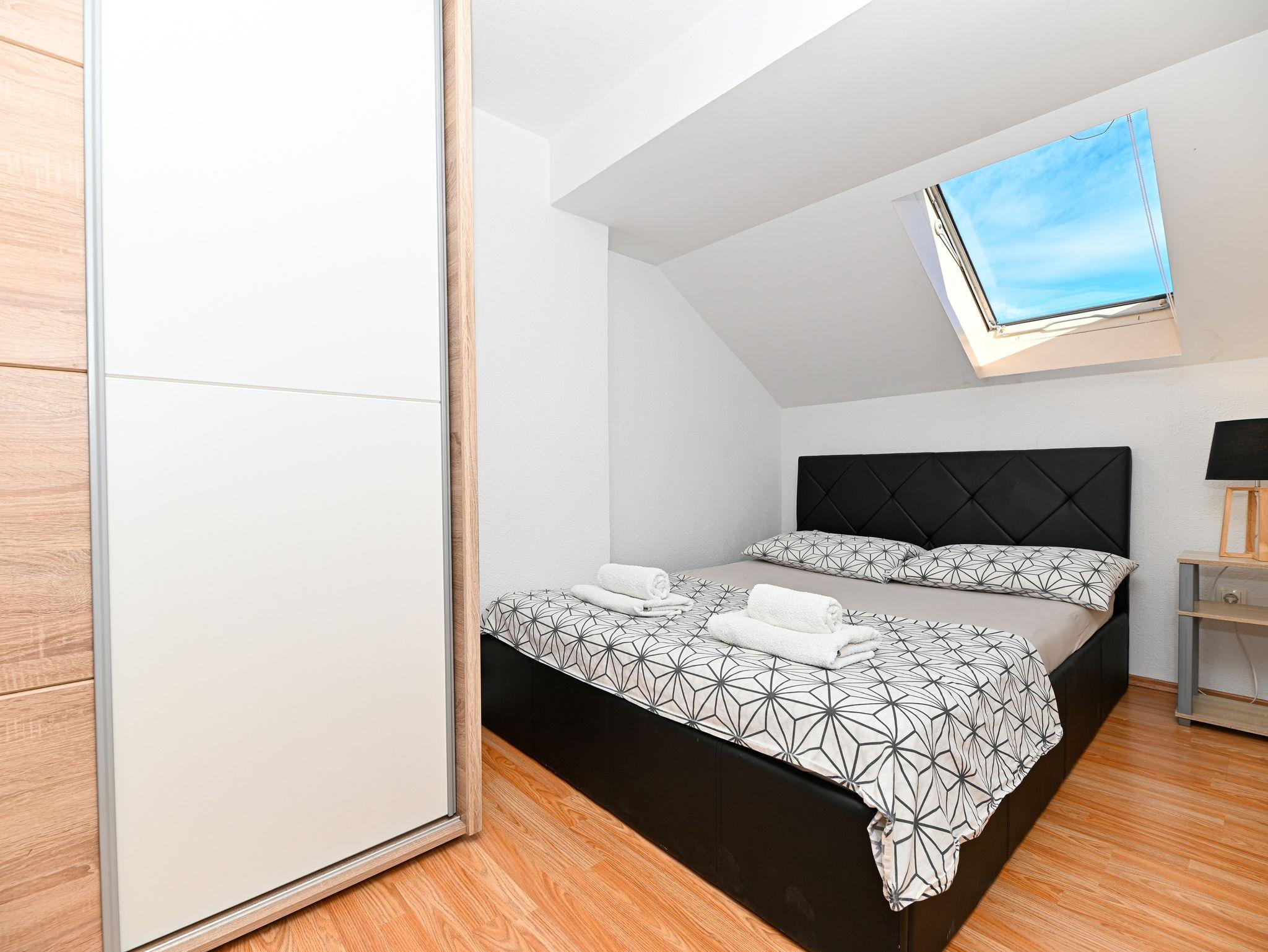 Ferienwohnung bietet Platz für 2 Gäste. Die Betten sind in Schlafzimmern, die es 1 gibt, innerhalb einer Gesamtfläche von 71m2, angeordnet. Die Gäste haben einen eigenen Balkon zur Verfügung, auf der sie in warmen Sommernächten genießen können. Das Apartment bietet Meerblick. Es ist erlaubt, Speisen auf dem Gemeinschafts-Grill vorzubereiten. IM PREIS INBEGRIFFEN: Kurtaxe, Endreinigung, Klimatisierung, Parkplatz, Internet, Kinderbett, Bügeleisen, Bügelbrett, Föhn. Die Verfügbarkeit zusätzlicher Dienstleistungen in Ihrem reservierten Termin und die Preise derselben (falls nicht aufgeführt) müssen im Voraus überprüft werden. Zusätzliche Dienstleistungen die in der Zahlungsaufforderung nicht aufgeführt sind werden direkt beim Vermieter bezahlt, angenommen der Gast nutzt auch diese. Ermäßigung auf den Grundpreis: Gratistag 14=13 (bei einem Aufenthalt von 14 Tagen oder mehr erhalten Sie einen Gratistag für den Aufenthalt bis 31.12.26).