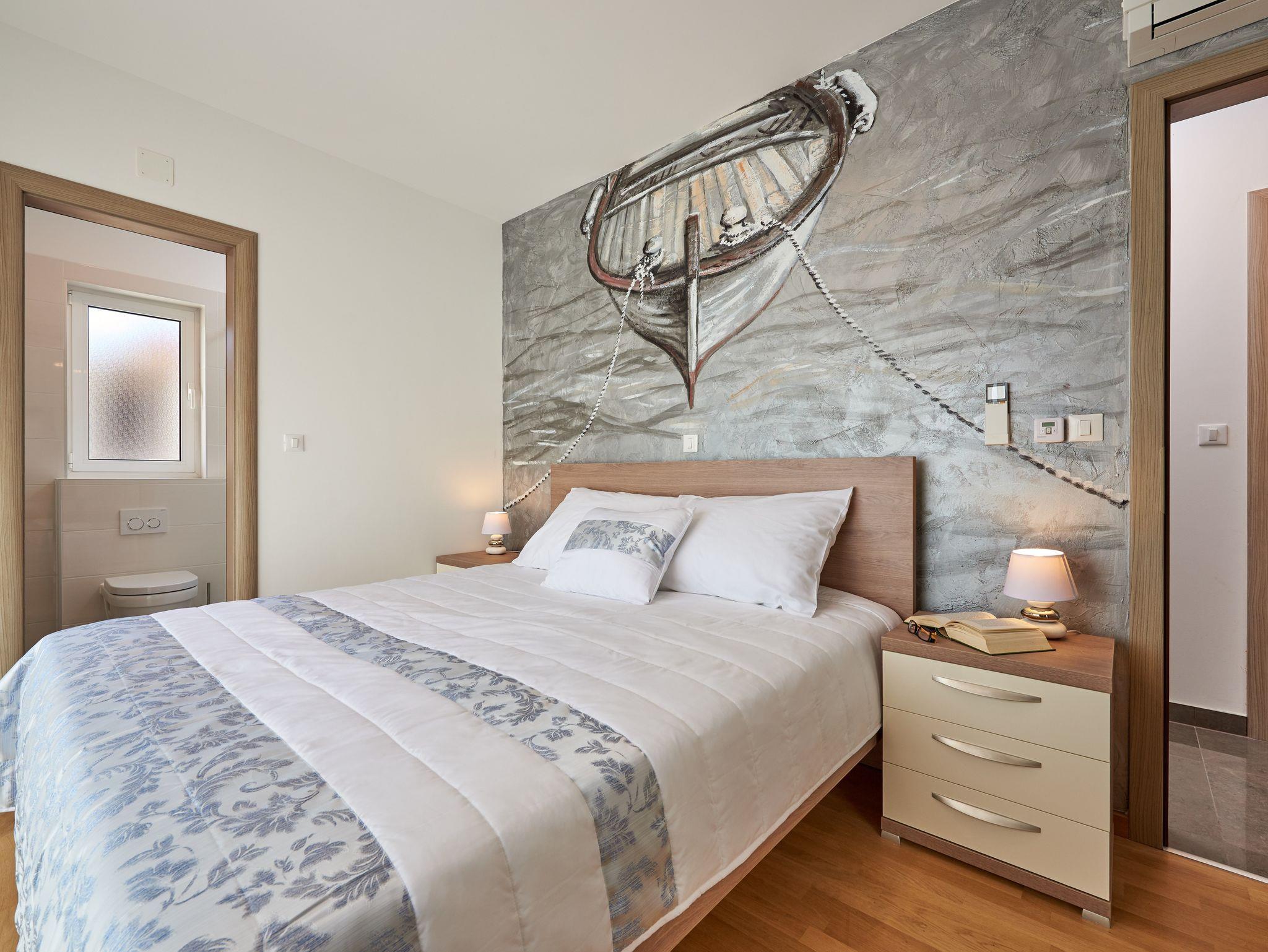 Ferienwohnung bietet Platz für 6 Gäste. Die Betten sind in Schlafzimmern, die es 3 gibt, innerhalb einer Gesamtfläche von 215m2, angeordnet. Die Gäste haben eine eigene Terrasse zur Verfügung, auf der sie in warmen Sommernächten genießen können. Das Apartment bietet Meerblick. Für vollen Genuss und Entspannung gibt es einen privaten Grill für Gäste dieser Unterkunft. Während ihres Aufenthalts können sich Gäste im privaten Schwimmbad entspannen. IM PREIS INBEGRIFFEN: Kurtaxe, Endreinigung, Klimatisierung, Pool, Parkplatz, Internet, Kinderbett, Zusatzbett, Bügeleisen, Bügelbrett, Föhn. Die Verfügbarkeit zusätzlicher Dienstleistungen in Ihrem reservierten Termin und die Preise derselben (falls nicht aufgeführt) müssen im Voraus überprüft werden. Zusätzliche Dienstleistungen die in der Zahlungsaufforderung nicht aufgeführt sind werden direkt beim Vermieter bezahlt, angenommen der Gast nutzt auch diese.