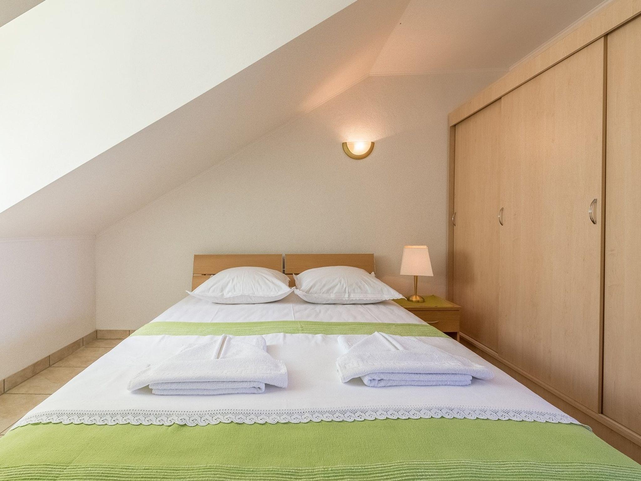 Ferienwohnung bietet Platz für 5 Gäste. Die Betten sind in Schlafzimmern, die es 2 gibt, und in Wohnzimmer, innerhalb einer Gesamtfläche von 49m2, angeordnet. Die Gäste haben eine eigene Terrasse zur Verfügung, auf der sie in warmen Sommernächten genießen können. Das Apartment bietet Meerblick. Es ist erlaubt, Speisen auf dem Gemeinschafts-Grill vorzubereiten. IM PREIS INBEGRIFFEN: Kurtaxe, Endreinigung, Klimatisierung, Parkplatz, Garage, Internet, Kinderbett, Bügeleisen, Föhn. Die Verfügbarkeit zusätzlicher Dienstleistungen in Ihrem reservierten Termin und die Preise derselben (falls nicht aufgeführt) müssen im Voraus überprüft werden. Zusätzliche Dienstleistungen die in der Zahlungsaufforderung nicht aufgeführt sind werden direkt beim Vermieter bezahlt, angenommen der Gast nutzt auch diese.
