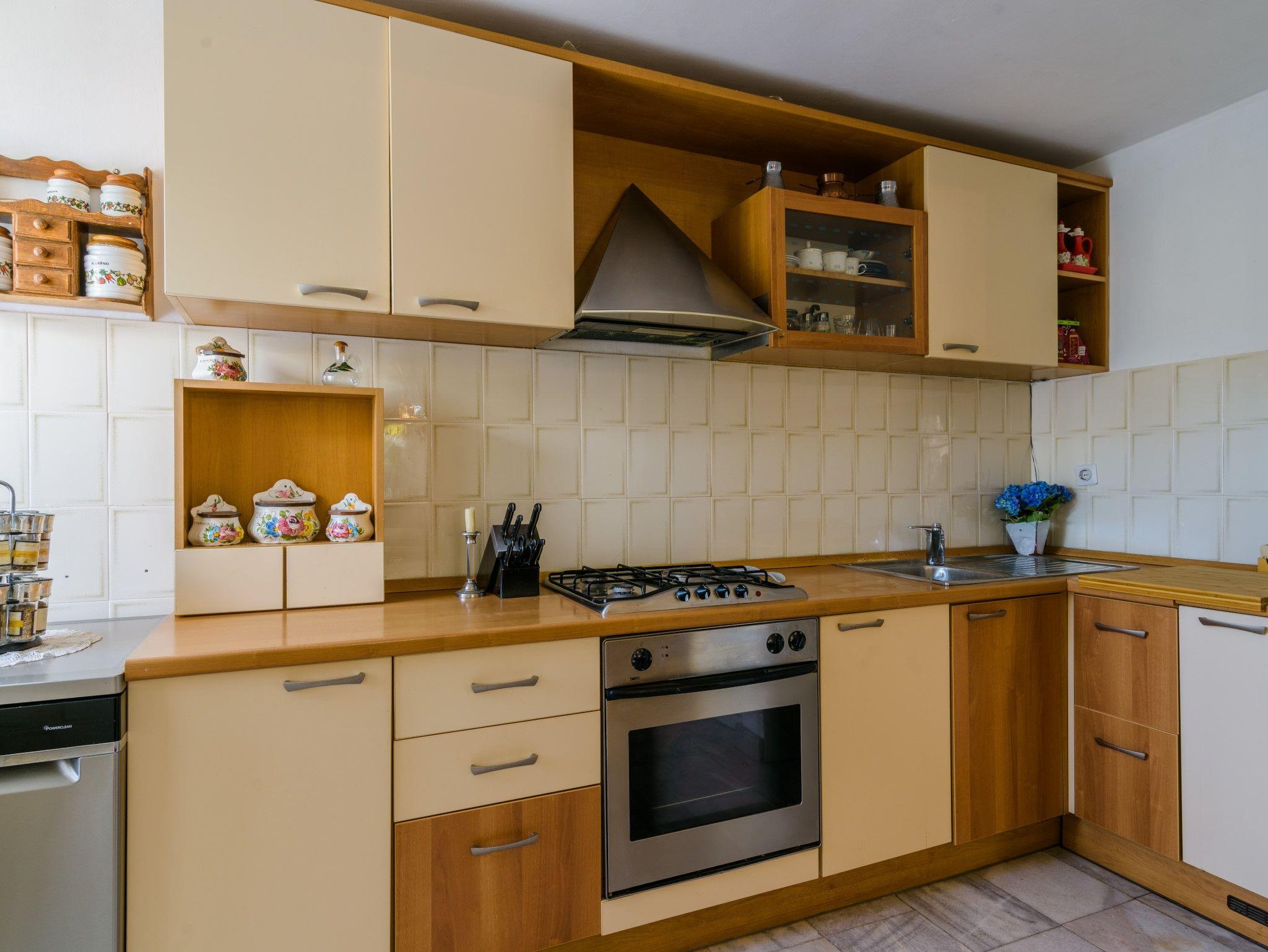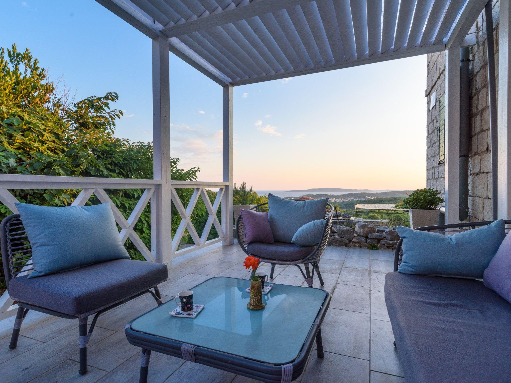 Haus bietet Platz für 6 Gäste. Die Betten sind in Schlafzimmern, die es 3 gibt, innerhalb einer Gesamtfläche von 120m2, angeordnet. Die Gäste haben eine eigene Terrasse zur Verfügung, auf der sie in warmen Sommernächten genießen können. Das Haus bietet Meerblick. Für vollen Genuss und Entspannung gibt es einen privaten Grill für Gäste dieser Unterkunft. Während ihres Aufenthalts können sich Gäste im privaten Schwimmbad entspannen. IM PREIS INBEGRIFFEN: Kurtaxe, Endreinigung, Klimatisierung, Pool, Parkplatz, Internet, Kinderbett, Bügeleisen, Bügelbrett, Föhn, Liegestühle. VERBINDLICHE ZUSÄTZLICHE KOSTEN: Aufzahlung für Kurzaufenthalte (prozentualer Zuschlag pro Nächtigungsanzahl: 30% - 1, 20% - 2, 10% - 3). Die Verfügbarkeit zusätzlicher Dienstleistungen in Ihrem reservierten Termin und die Preise derselben (falls nicht aufgeführt) müssen im Voraus überprüft werden. Zusätzliche Dienstleistungen die in der Zahlungsaufforderung nicht aufgeführt sind werden direkt beim Vermieter bezahlt, angenommen der Gast nutzt auch diese.