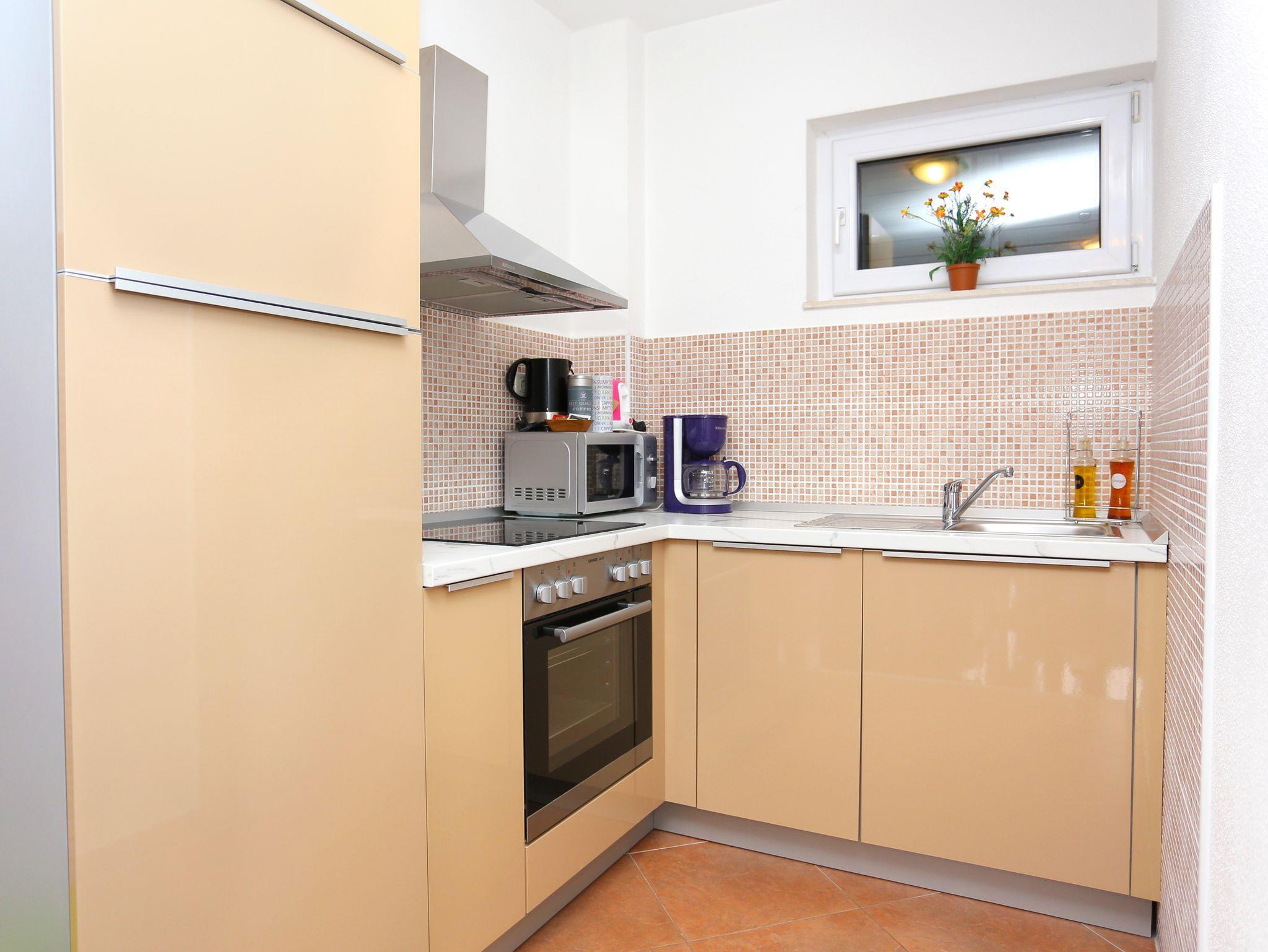 Ferienwohnung bietet Platz für 4 Gäste. Die Betten sind in Schlafzimmern, die es 1 gibt, und in Wohnzimmer, innerhalb einer Gesamtfläche von 37m2, angeordnet. Die Gäste haben eine eigene Terrasse zur Verfügung, auf der sie in warmen Sommernächten genießen können. Das Apartment bietet Meerblick. IM PREIS INBEGRIFFEN: Kurtaxe, Endreinigung, Klimatisierung, Parkplatz, Internet, Kinderbett, Bügeleisen, Bügelbrett, Föhn. VERBINDLICHE ZUSÄTZLICHE KOSTEN: Aufzahlung für Kurzaufenthalte (prozentualer Zuschlag pro Nächtigungsanzahl: 30% - 1, 20% - 2, 10% - 3). Die Verfügbarkeit zusätzlicher Dienstleistungen in Ihrem reservierten Termin und die Preise derselben (falls nicht aufgeführt) müssen im Voraus überprüft werden. Zusätzliche Dienstleistungen die in der Zahlungsaufforderung nicht aufgeführt sind werden direkt beim Vermieter bezahlt, angenommen der Gast nutzt auch diese. Ermäßigung auf den Grundpreis: Gratistag 14=13 (bei einem Aufenthalt von 14 Tagen oder mehr erhalten Sie einen Gratistag für den Aufenthalt bis 31.12.26).