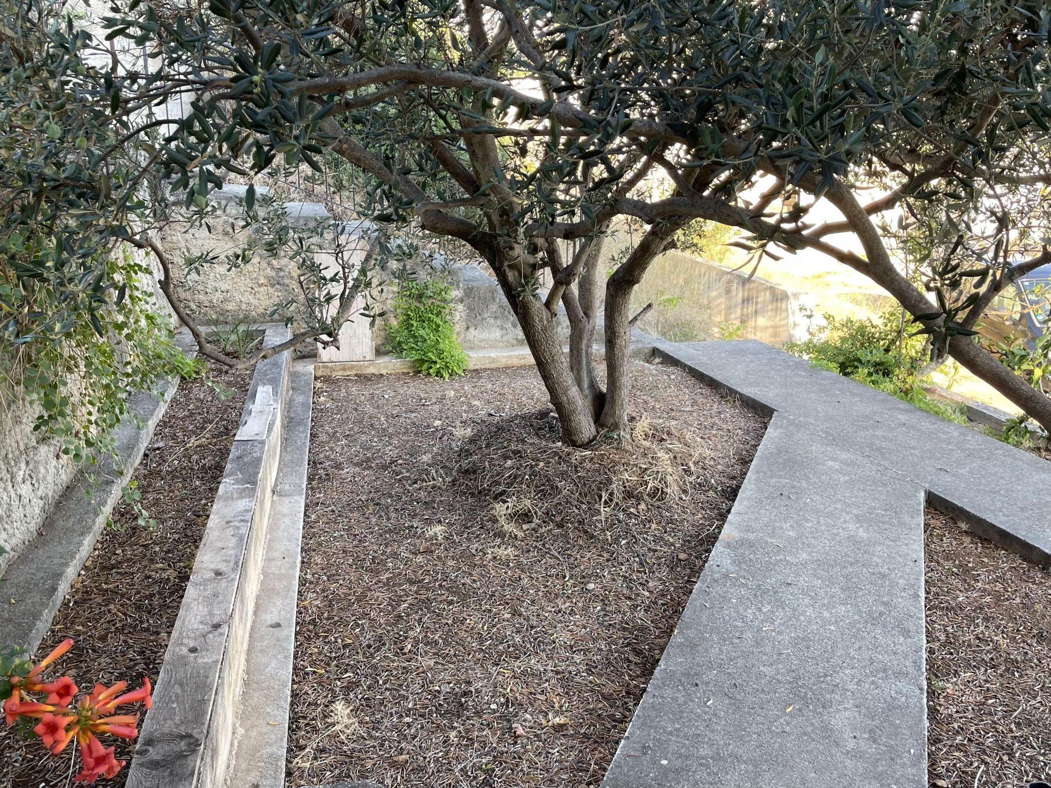 The holiday home is located on a plot of approx. 500 m², which guarantees guests complete privacy, as there is no one else on the property. Various types of Mediterranean plants, trees and citrus fruits grow around the house.