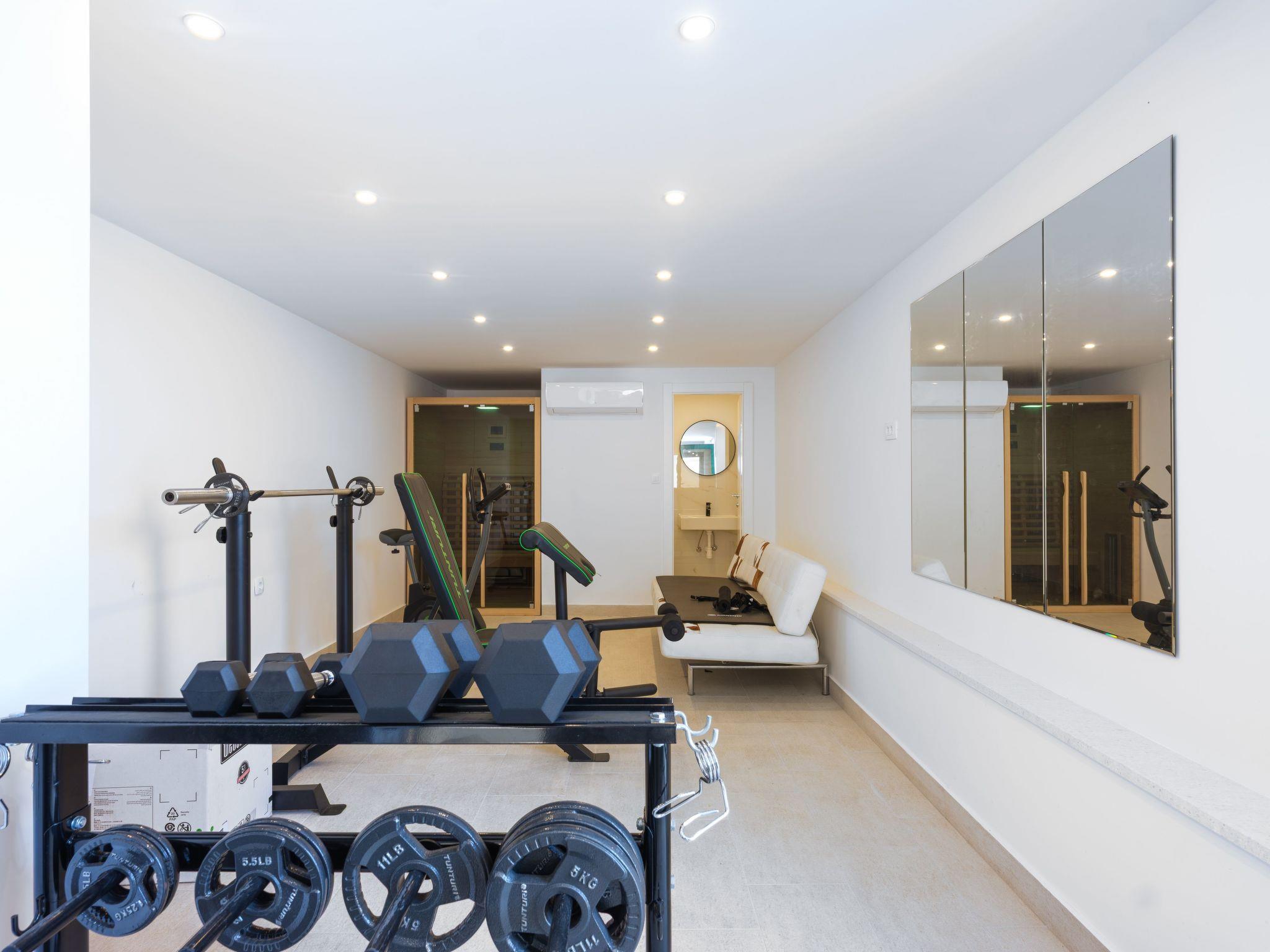In the basement with a window there is a wellness area with a gym, sauna and toilet, as well as a machine room for the swimming pool.