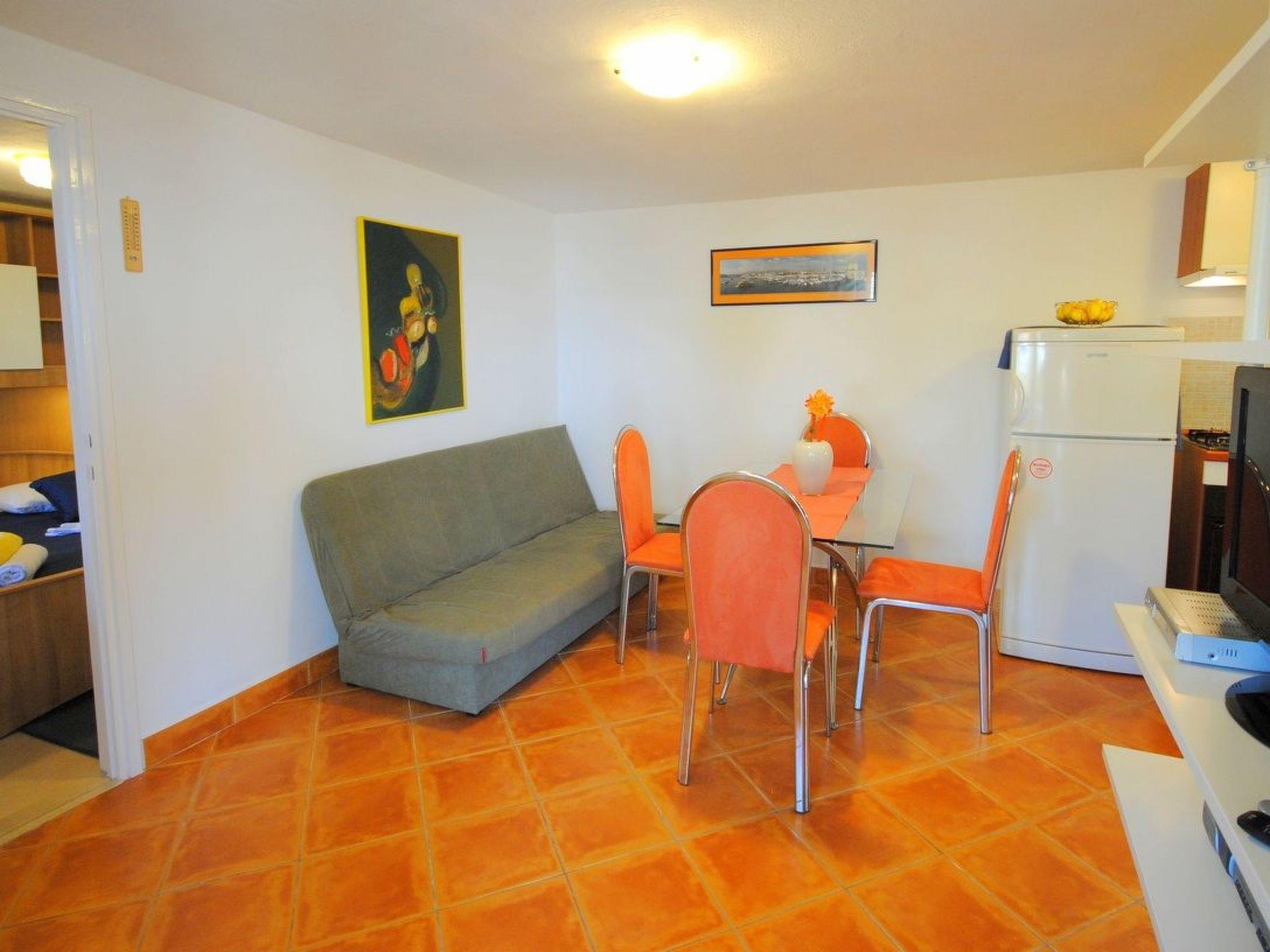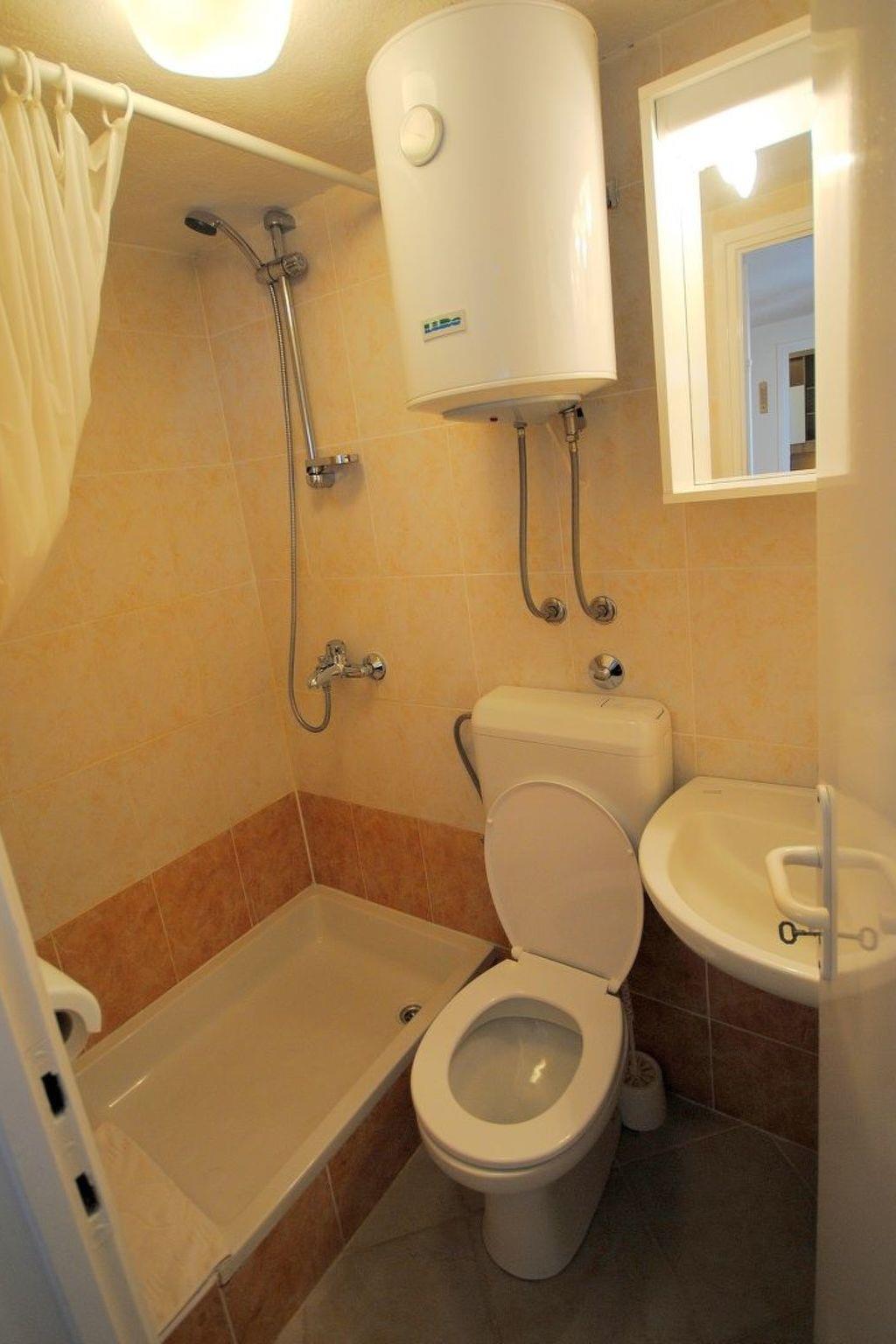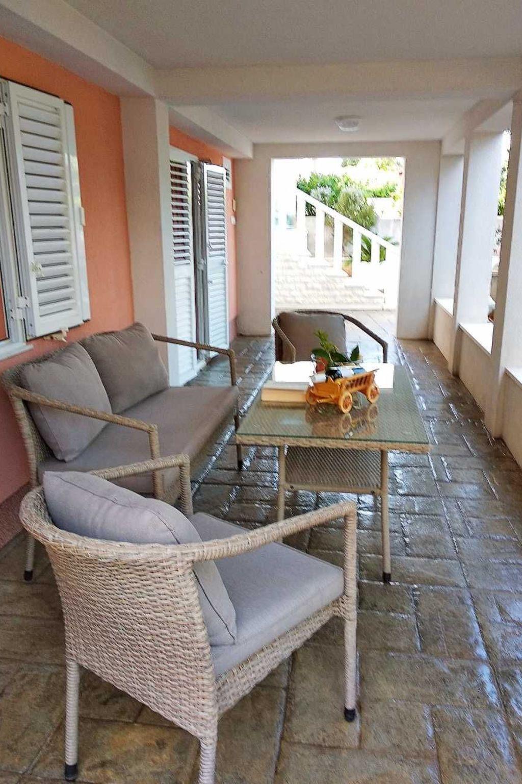 Stepping outside, the apartment extends into an inviting open front terrace, allowing guests to bask in the mild Dalmatian climate. Although the focus is not on luxury, the communal garden area offers a tranquil spot for relaxation and socializing. This shared space adds an extra dimension of outdoor enjoyment, complementing your beachside holiday experience.