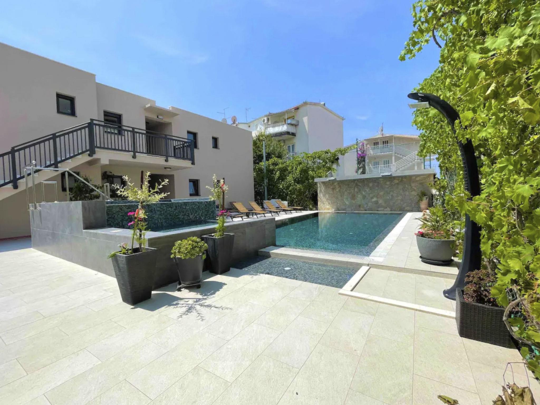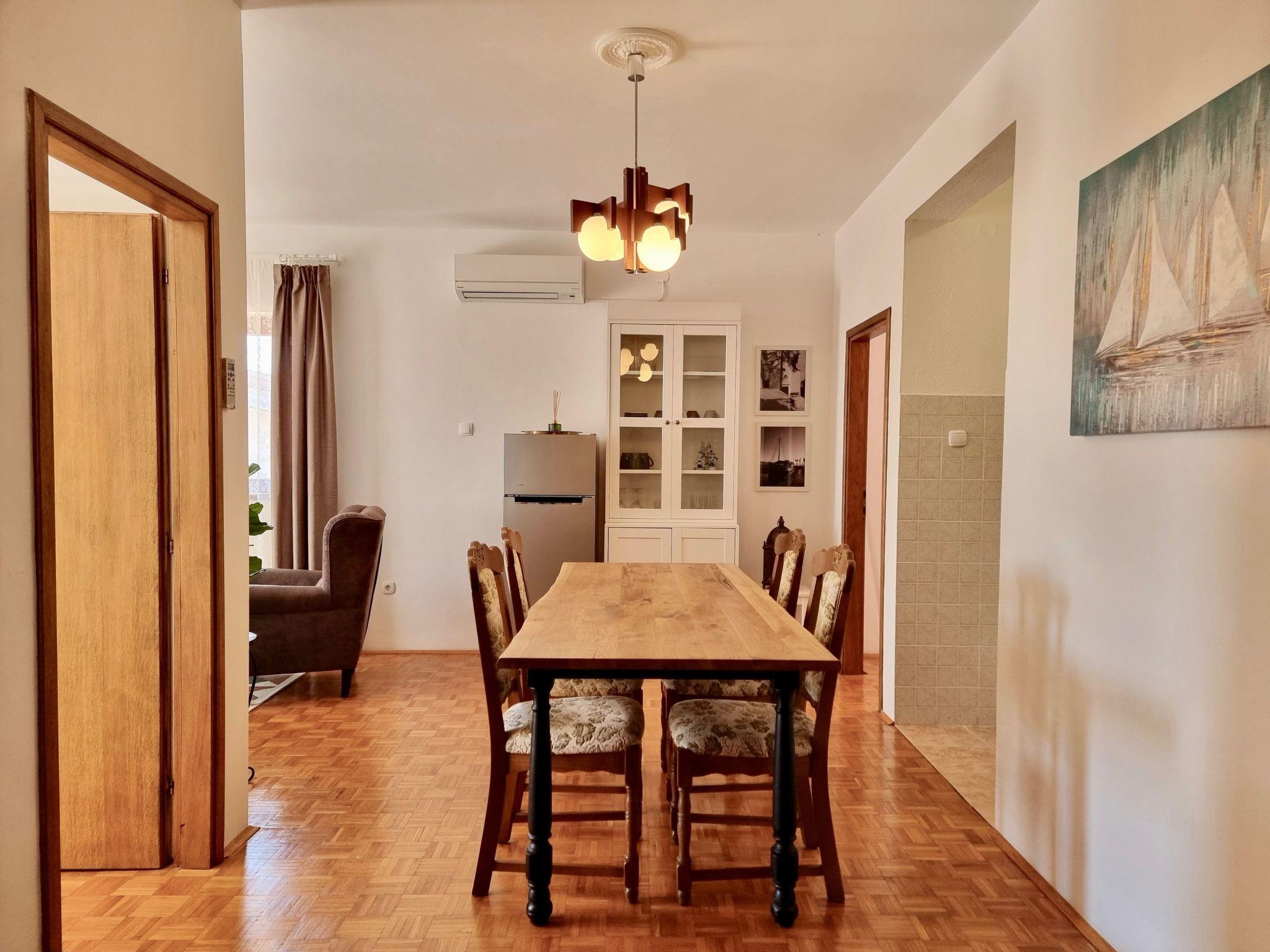Relax with your entire family at this peaceful place to stay. Spend summer afternoons in the private swimming pool, which is shared only with property guests(a total of seven apartments), or enjoy the sun on the private balcony. The interior of the apartment is furnished with charming décor and is equipped with Wi-Fi, air conditioning, private parking, and a brand-new kitchen. It features two bedrooms with a double bed and a second bedroom with two single beds.