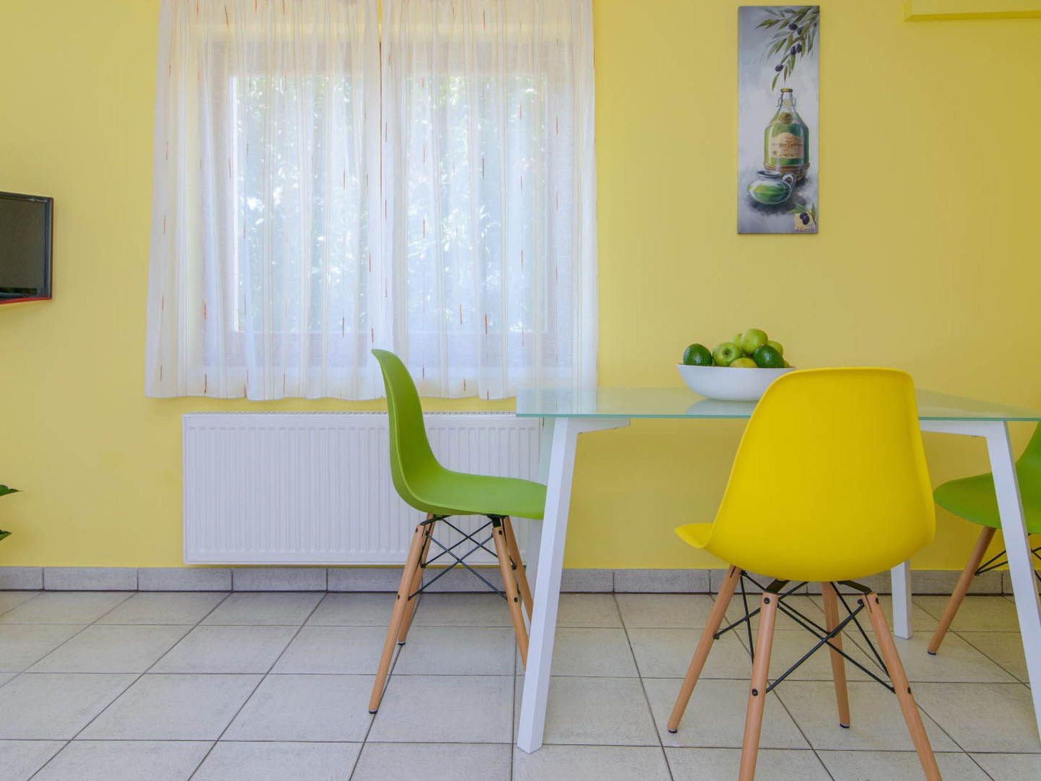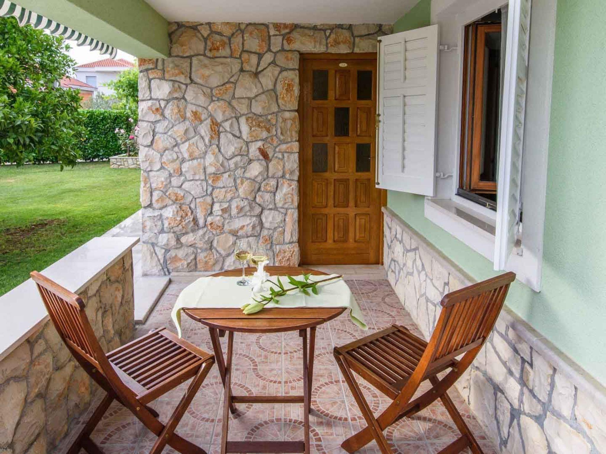 Apartment Maris 1A is located on the ground floor and covers the living area of 26 m2 + covered terrace of 7m2. The apartment consists of 1 bedroom with a double bed, 1 modern bathroom with shower, living room and a kitchen with a dining area. The apartment can comfortably accommodate 2 persons. The guests can relax on the private covered terrace equipped with outdoor furniture, overlooking the garden and the pool area. Apartment Maris 1A is equipped with air condition (living room), SAT-TV, wi-fi internet, iron and ironing board, electric stove, hood, mini fridge with freezing compartment, microwave, coffee maker, washing machine and hair dryer. Baby cot and high chair are available on request. The property offers parking places free of charge.