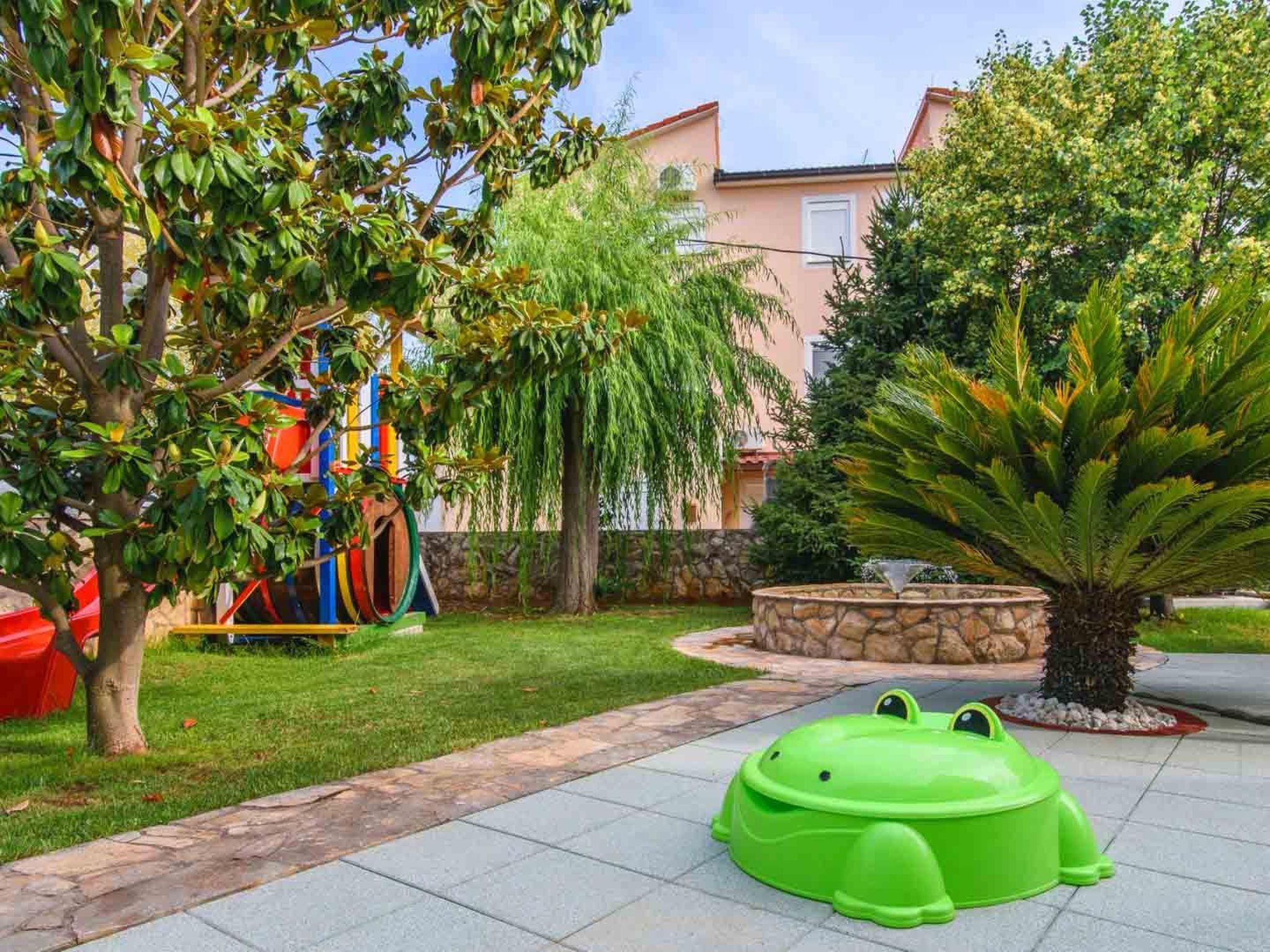 The outdoor area is perfectly designed to provide complete relaxation. Guests of apartments Maris have access to the shared heated pool (30 m2) with massage jets and a waterfall surrounded with sun loungers and parasols, while those who enjoy barbecue can use the shared barbecue in the summer kitchen, which is available on request and with previous notice. Families with children will surely appreciate the play area in the garden, which consists of a slide and a swing, while the water fountain in the middle of the lush Mediterranean garden completes the ambience of a peaceful oasis.