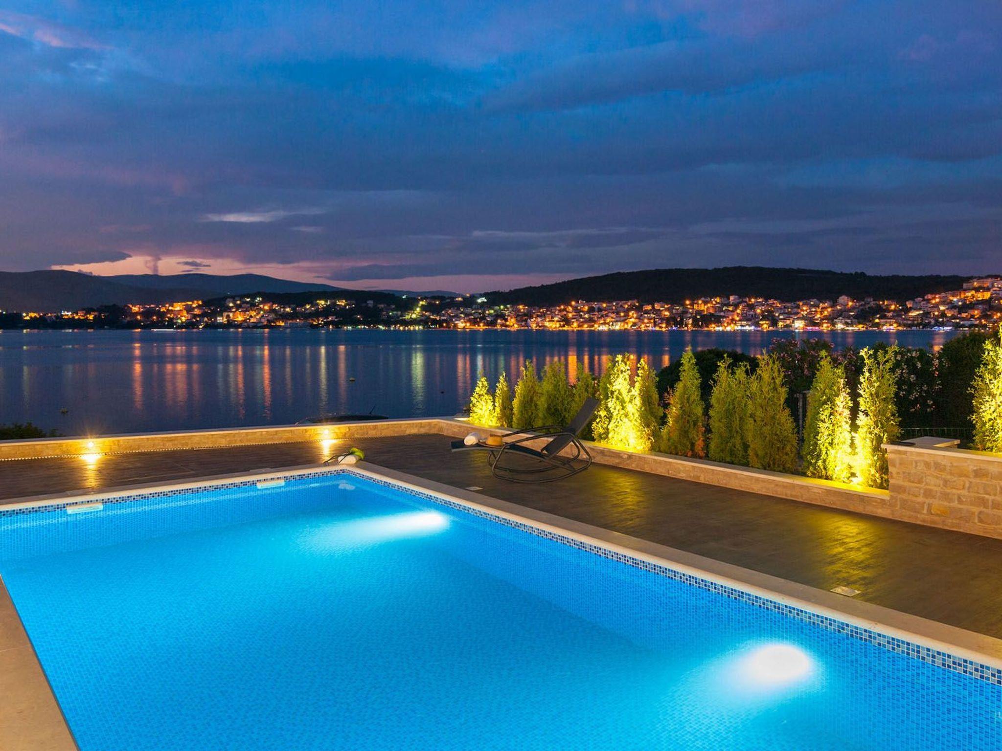 Luxurious five star villa Rose is located in the first row from the sea in Okrug Gornji on island Ciovo, which is connected to the mainland with two bridges and conveniently located just 4 km from UNESCO protected center of town Trogir.