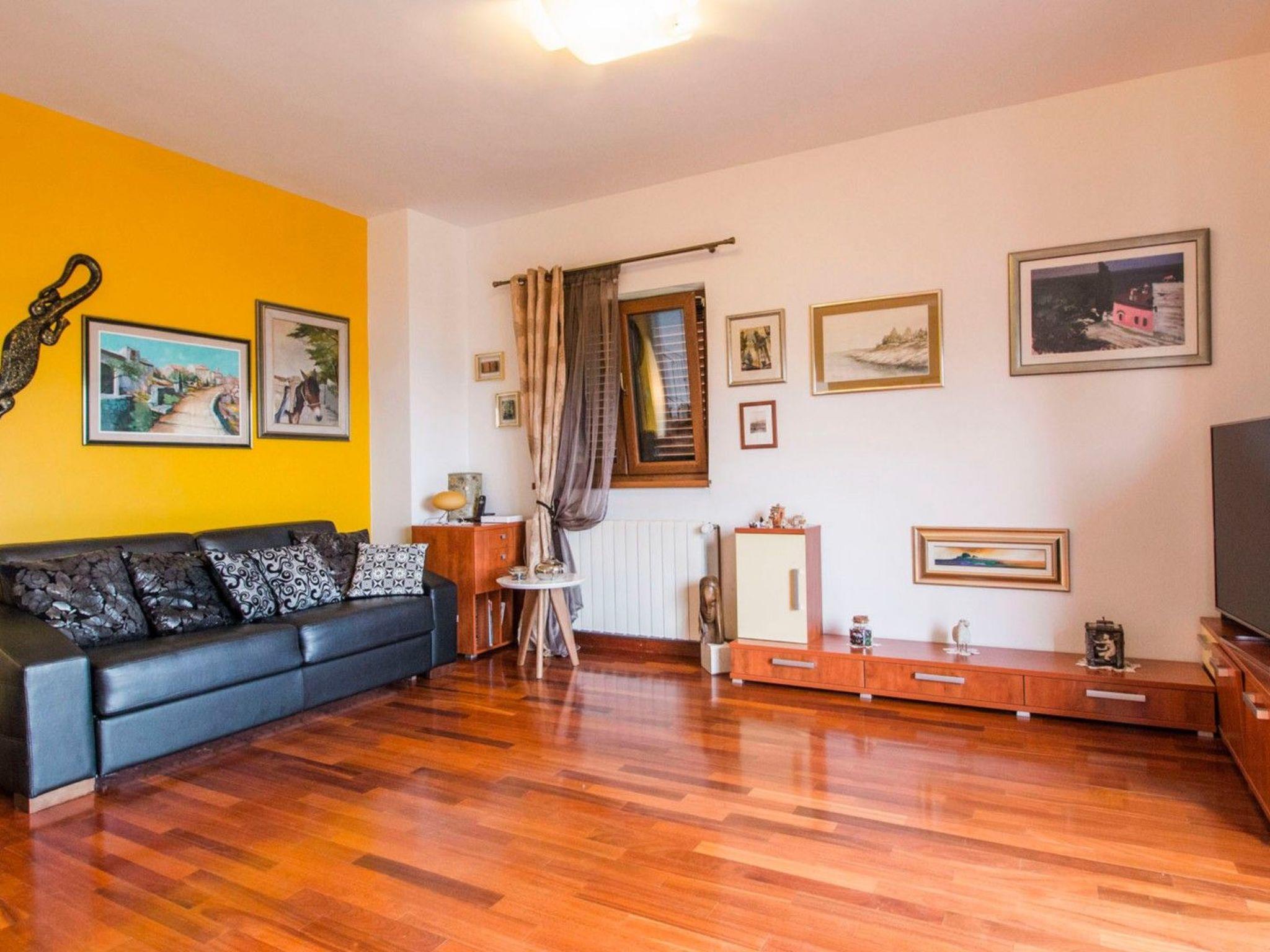 Second Floor: Two bedrooms, two bathrooms, an open-concept kitchen, a contemporary living and dining space, and a balcony offering breathtaking Adriatic vistas.