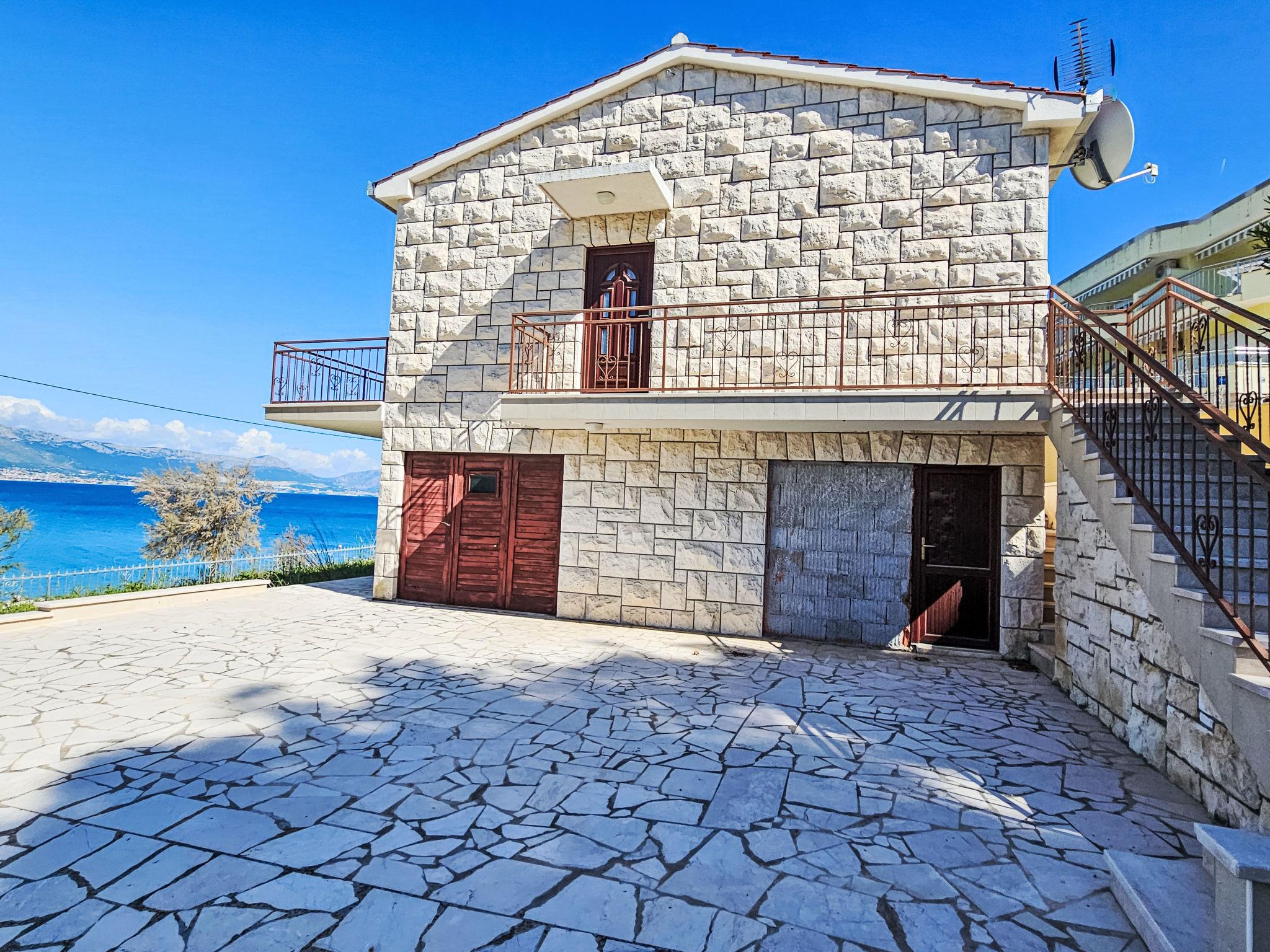 Slatine (Ciovo) 6 km from Trogir: Single-family house "Robert", 2 storeys. In a sunny, elevated position, 30 m from the sea, 30 m from the beach, road to cross, north facing position. For shared use: property 800 m2 (fenced), garden. Private: outdoor shower, terrace (5 m2), garden furniture, barbecue. In the house: internet access. Parking (for 3 cars) at the house on the premises. Shop 550 m, restaurant 350 m, bus stop 94 m, shingle beach 30 m, rocky beach 50 m. Please note: airfield 9 km from the property.