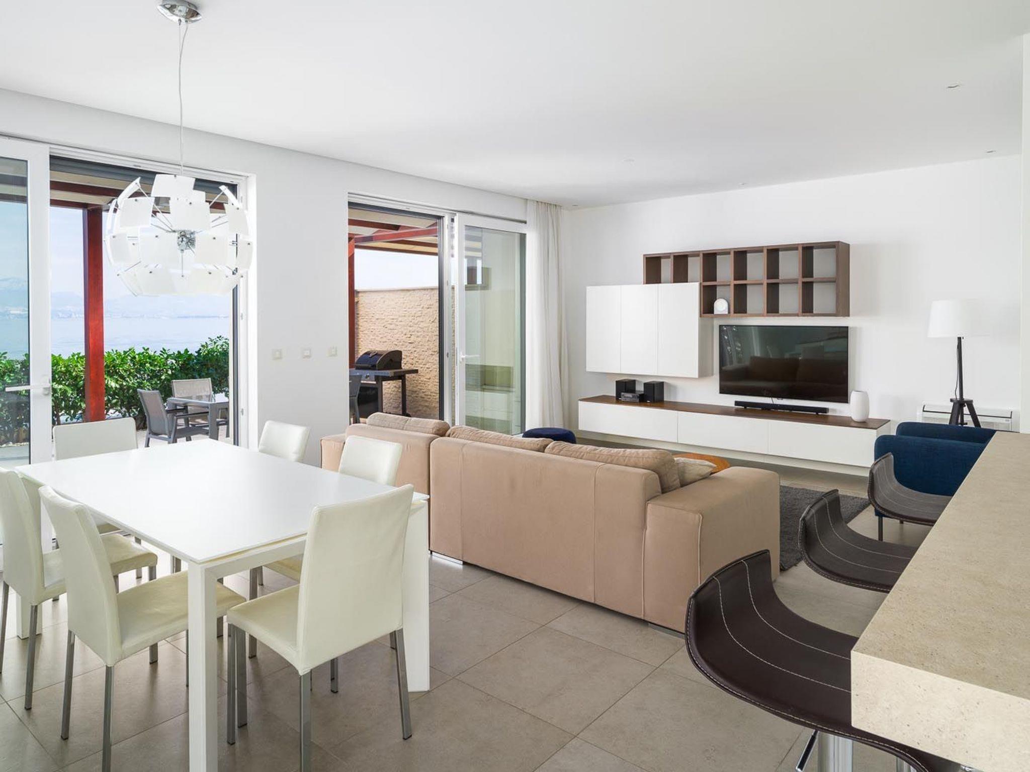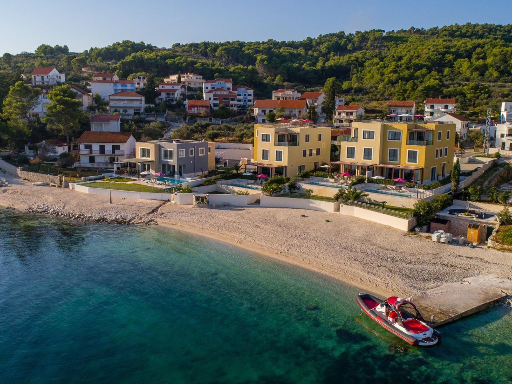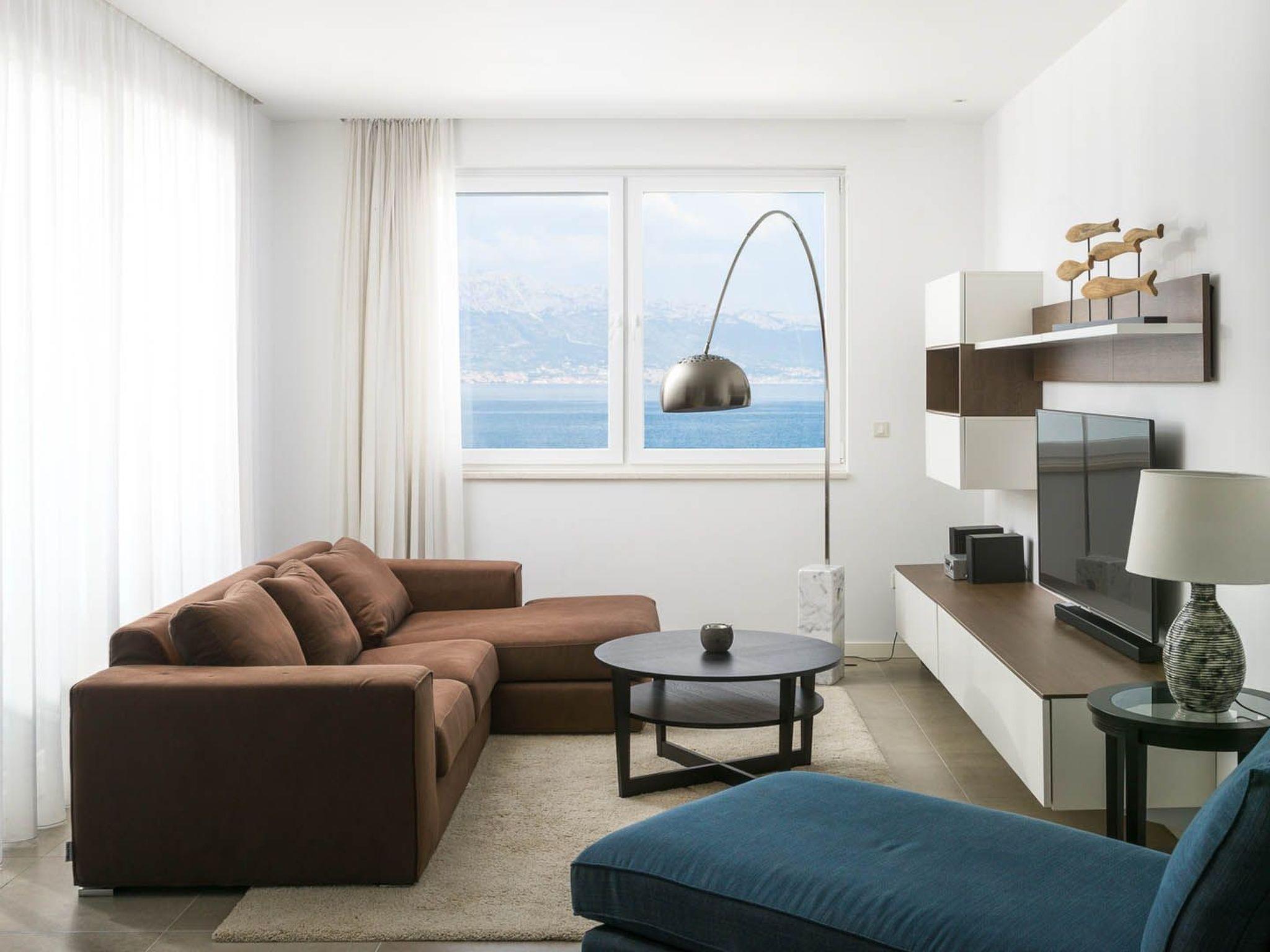 Villa Golden A is a luxurious beachside holiday villa located on island Ciovo, just 7 km from historical UNESCO protected town Trogir connected to the island with a bridge and 10 km from Split airport. This superbly decorated and elegant villa is part of a newly built luxurious beachfront complex Golden, situated just 10 m away from the beautiful pebble beach and crystal clear sea with a stunning panoramic view of the coast, mountains and the city of Split.