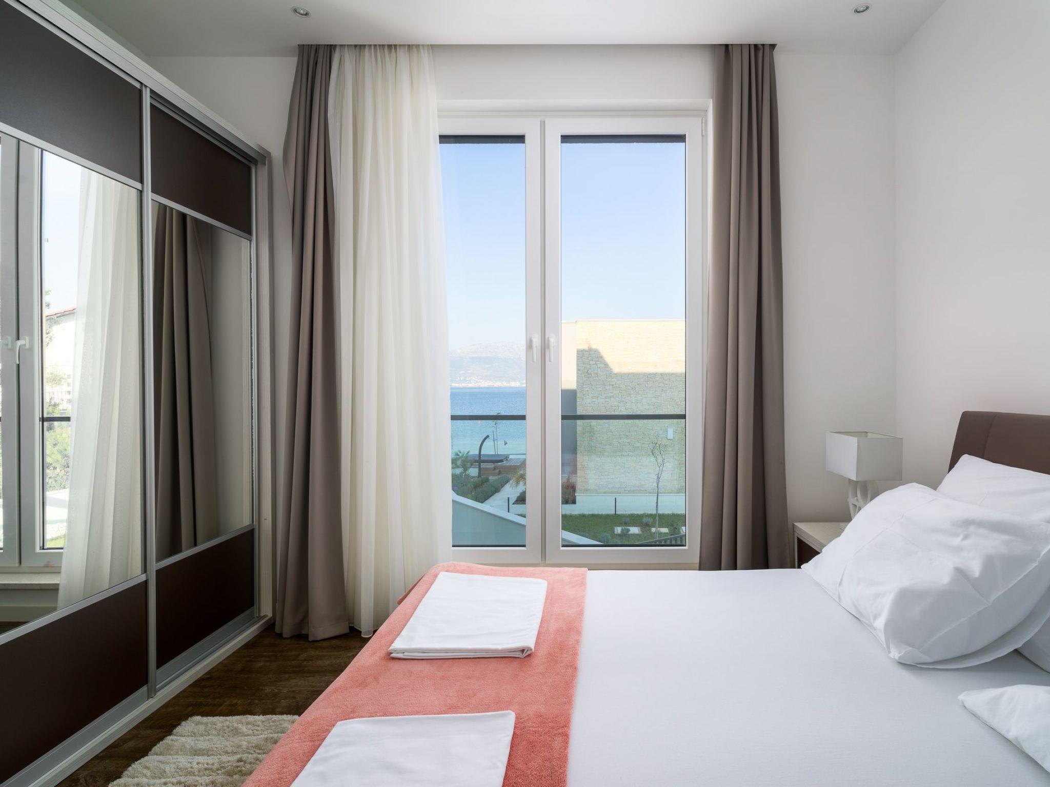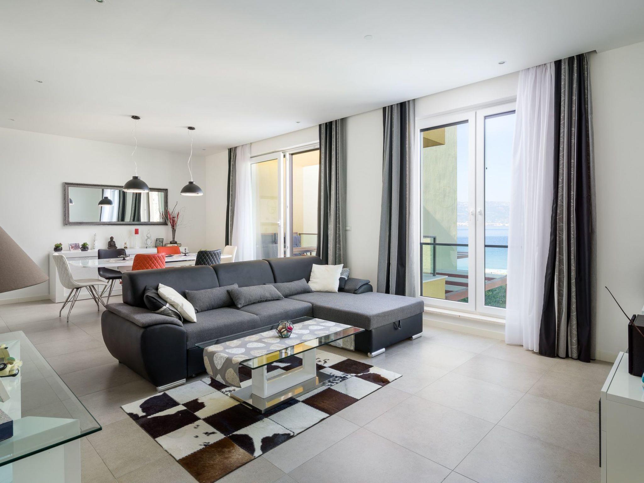 This superbly decorated apartment is part of a newly built luxurious beachfront complex Golden, situated just 10 m away from the beautiful pebble beach and crystal clear sea with a stunning panoramic view of the coast, mountains and the city of Split.