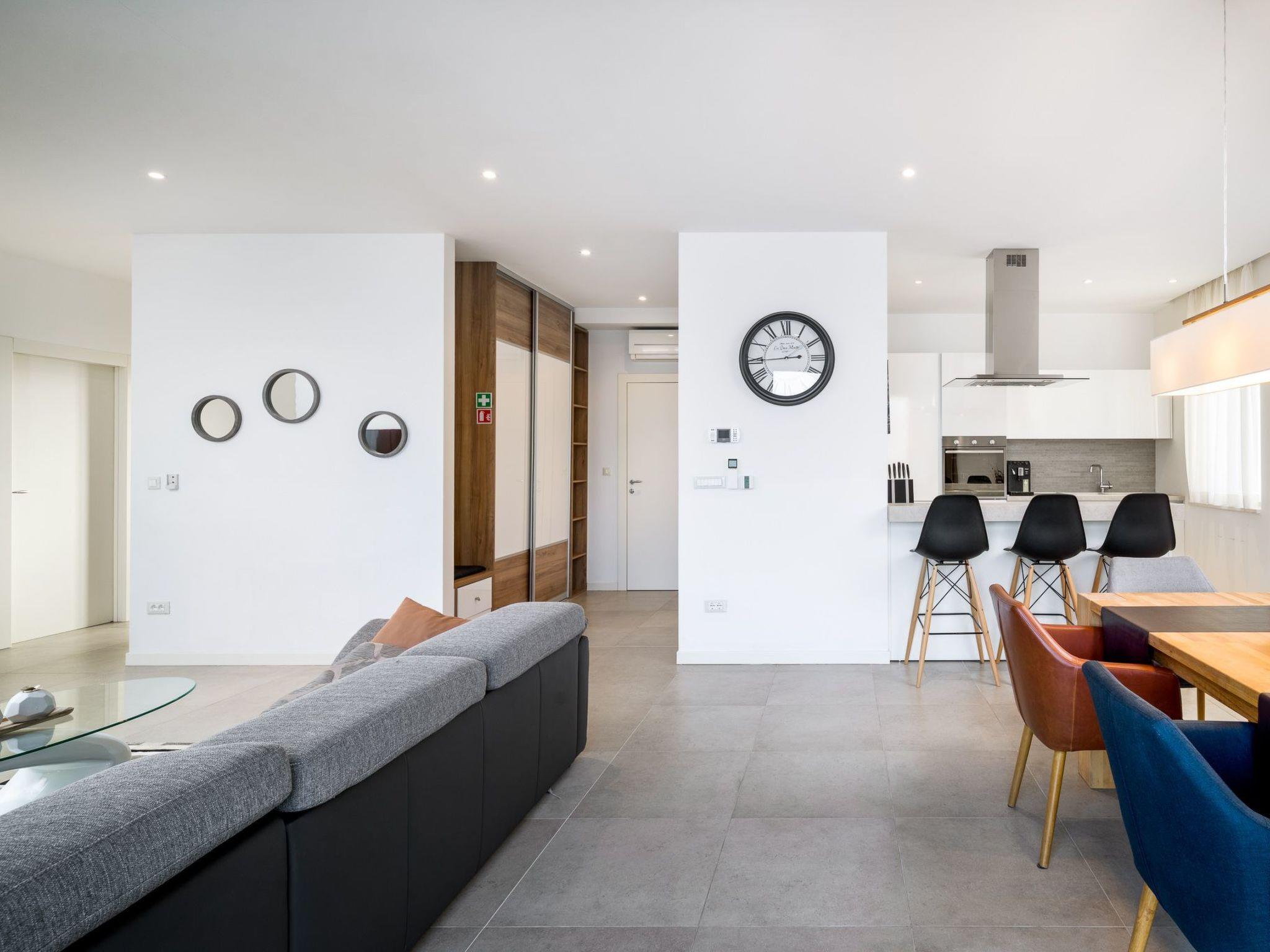 This superbly decorated apartment is part of a newly built luxurious beachfront complex Golden, situated just 10 m away from the beautiful pebble beach and crystal clear sea with a stunning panoramic view of the coast, mountains and the city of Split.