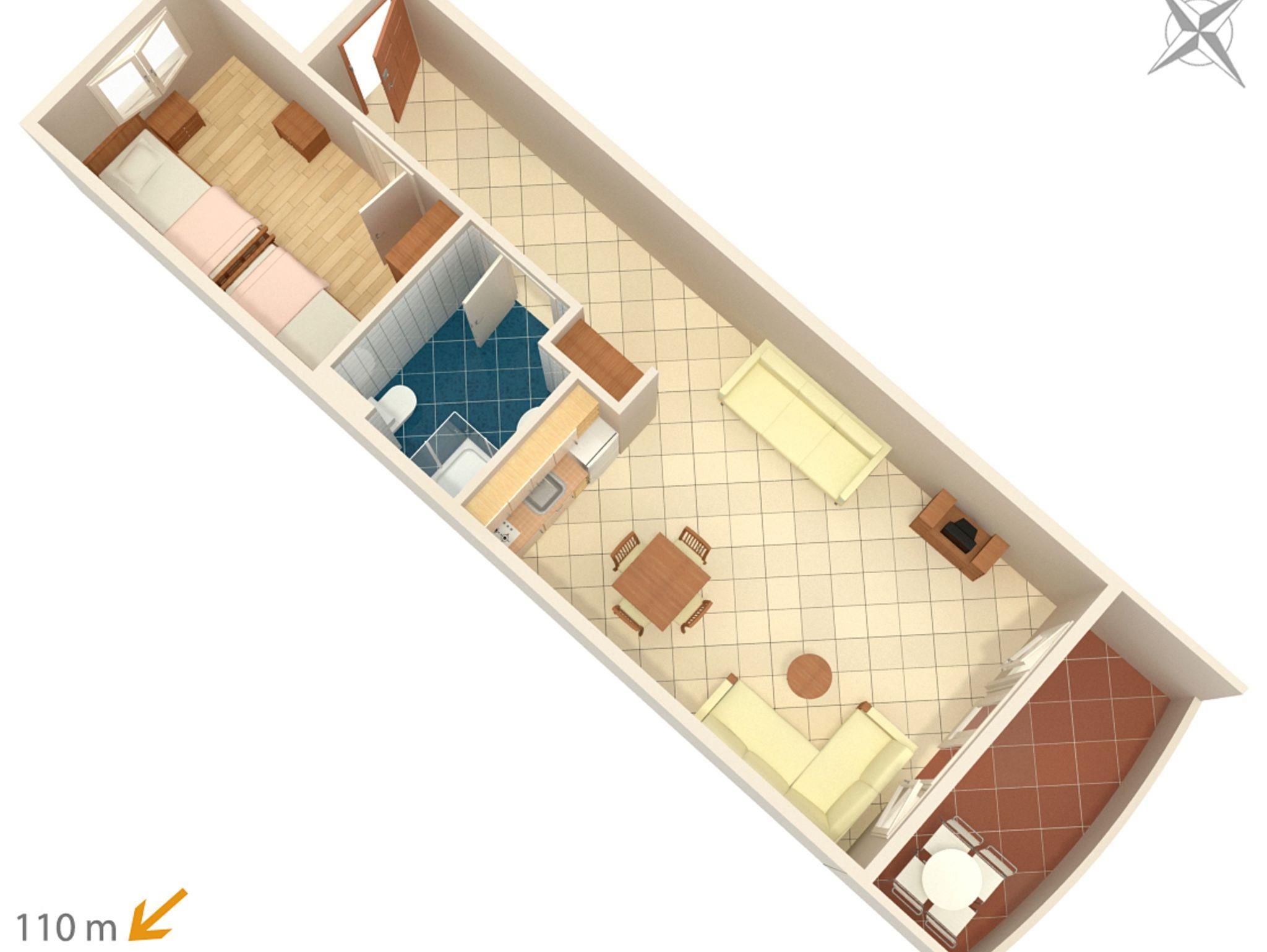 Ferienwohnung bietet Platz für 5 Gäste. Die Betten sind in Schlafzimmern, die es 1 gibt, und in Wohnzimmer, innerhalb einer Gesamtfläche von 38m2, angeordnet. Die Gäste haben eine eigene Terrasse zur Verfügung, auf der sie in warmen Sommernächten genießen können. Es ist erlaubt, Speisen auf dem Gemeinschafts-Grill vorzubereiten. In der Unterkunftseinheit besteht die Möglichkeit des Mitbringens von Haustieren gegen Aufpreis. IM PREIS INBEGRIFFEN: Endreinigung, Klimatisierung, Parkplatz, Internet, Kinderbett, Bügeleisen, Bügelbrett, Föhn. VERBINDLICHE ZUSÄTZLICHE KOSTEN: Kurtaxe (Erwachsene 0,93 € - 1,80 € Nacht/Person, Kinderermäßigung 12 - 17 Jahre). UNVERBINDLICHE ZUSÄTZLICHE KOSTEN: Frühstück (4,00 €, 50% Nachlass für Kinder zwischen 4 und 12 Jahren, Kinder bis 4 Jahre sind frei.), Halbpension (10,00 €, 50% Nachlass für Kinder zwischen 4 und 12 Jahren, Kinder bis 4 Jahre sind frei.), Vollpension (15,00 €, 50% Nachlass für Kinder zwischen 4 und 12 Jahren, Kinder bis 4 Jahre sind frei.), Haustiere (5,00 € pro Nacht). Die Verfügbarkeit zusätzlicher Dienstleistungen in Ihrem reservierten Termin und die Preise derselben (falls nicht aufgeführt) müssen im Voraus überprüft werden. Zusätzliche Dienstleistungen die in der Zahlungsaufforderung nicht aufgeführt sind werden direkt beim Vermieter bezahlt, angenommen der Gast nutzt auch diese.