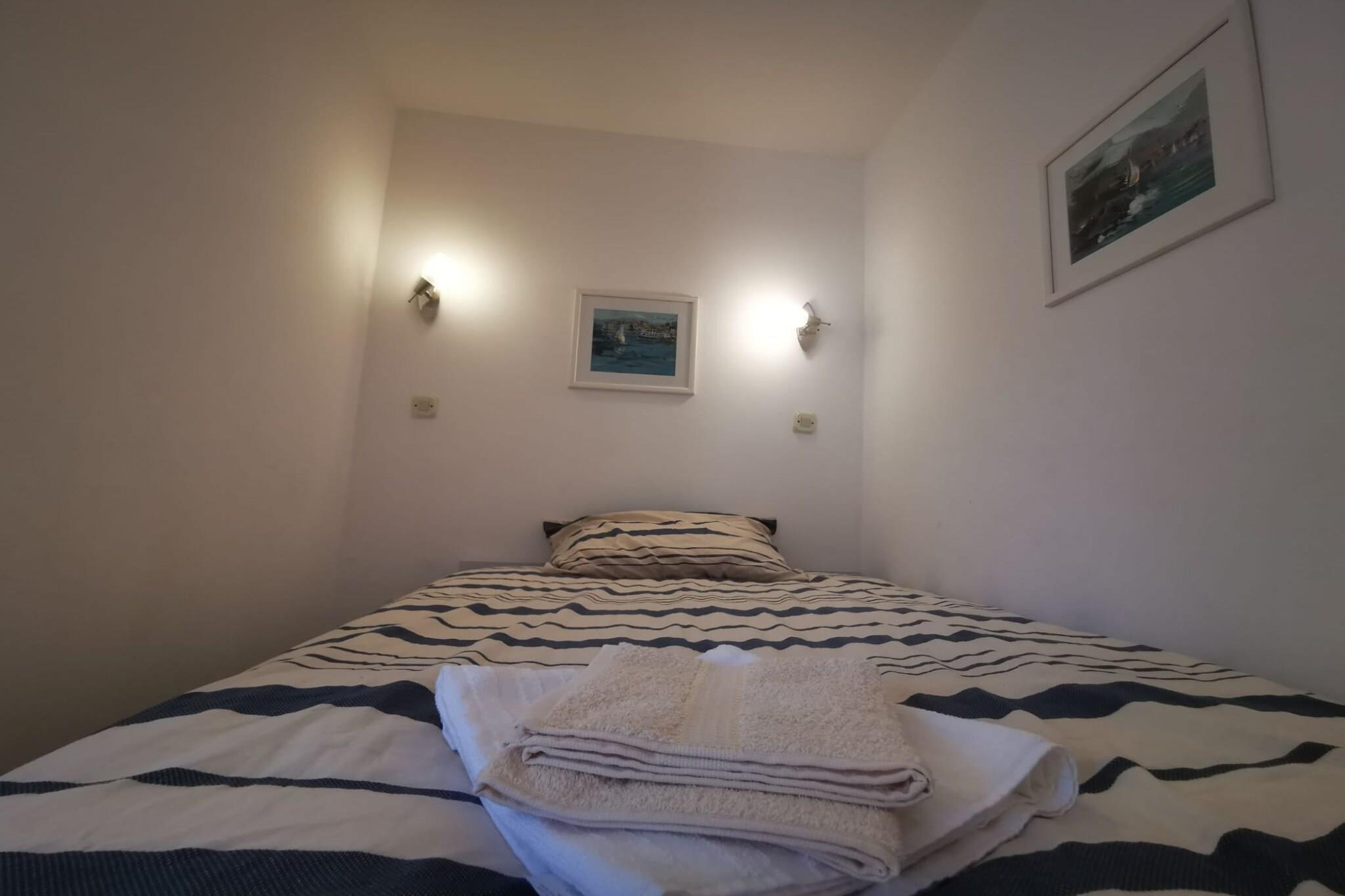 Welcome to our charming three-story house in the center of Umag, just 30 meters from the Adriatic Sea. The ground floor features a spacious dining/living room perfect for relaxing. On the first floor a modern bathroom and a cozy bedroom with a double bed. The second floor offers another comfortable bedroom with stunning views. Located steps from Umag's best restaurants, cafes, shops, and the coastline, our house blends comfort and convenience for a memorable stay. Note: Baggage drop-off is available before check-in. Pets are not allowed. Private parking, reservation is not required. Wi-Fi is available throughout the property. This three-bedroom can accommodate up to five guests. It features a Flat screen TV and is combined with a living room and kitchen. The private bathroom is equipped with a shower and toilet. Thanks to its excellent location, everything you'll need for your vacation is just a short walk away from the property. Spa- 20.00 km, cafes-300.00 m, restaurants—500.00 m. The beach is 300.00 m away from the property. The airport is 52 km away from the property.