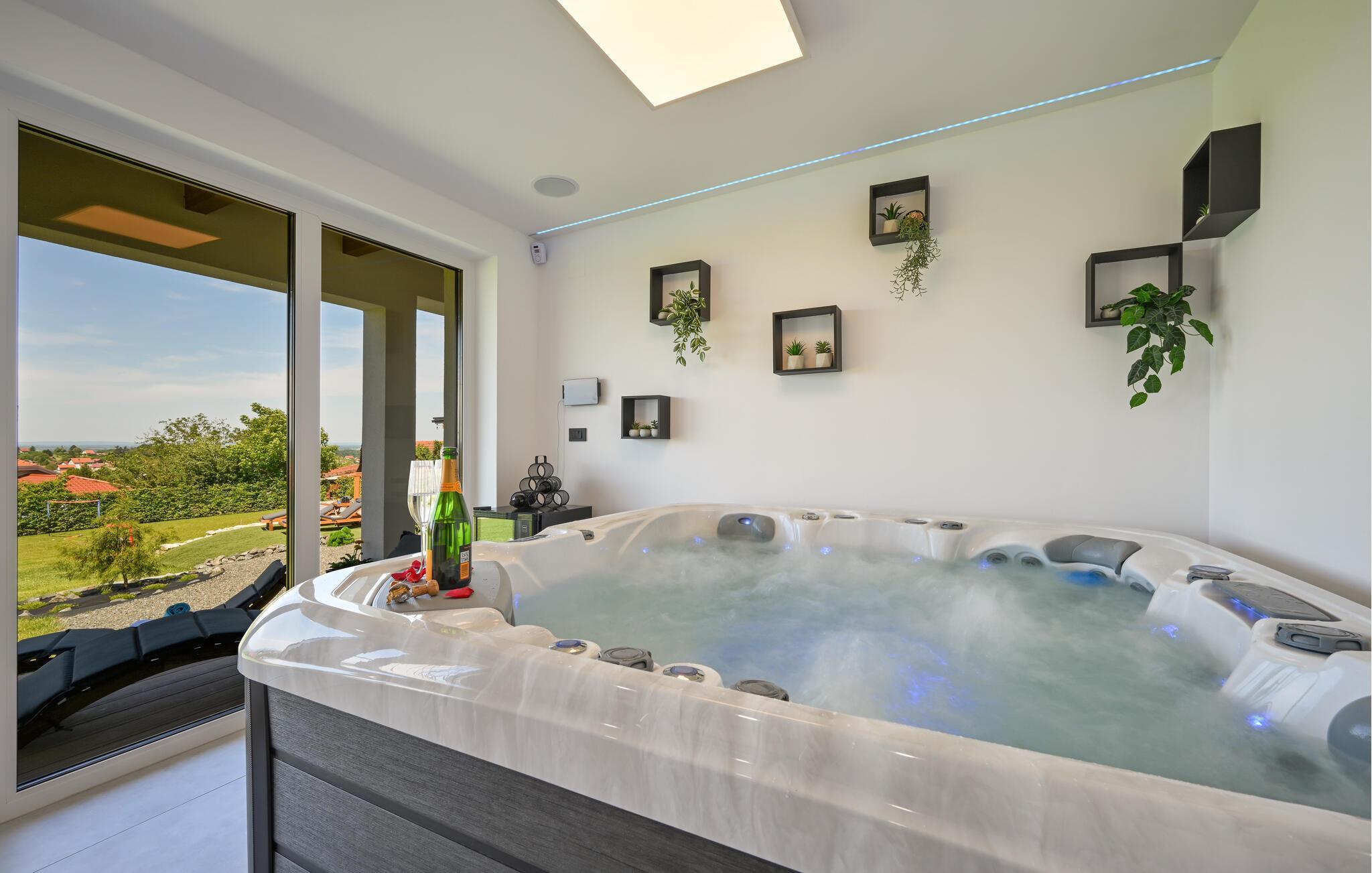 Verbringen Sie einen sonnigen Erholungsurlaub in diesem komfortablen Ferienhaus mit Whirlpool und Sauna in idyllischer Lage.