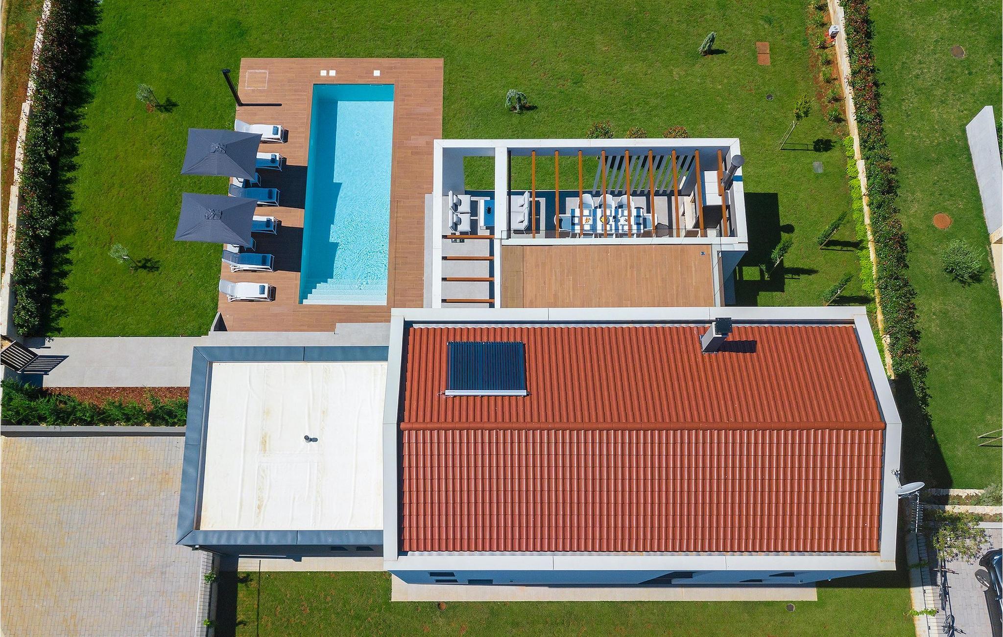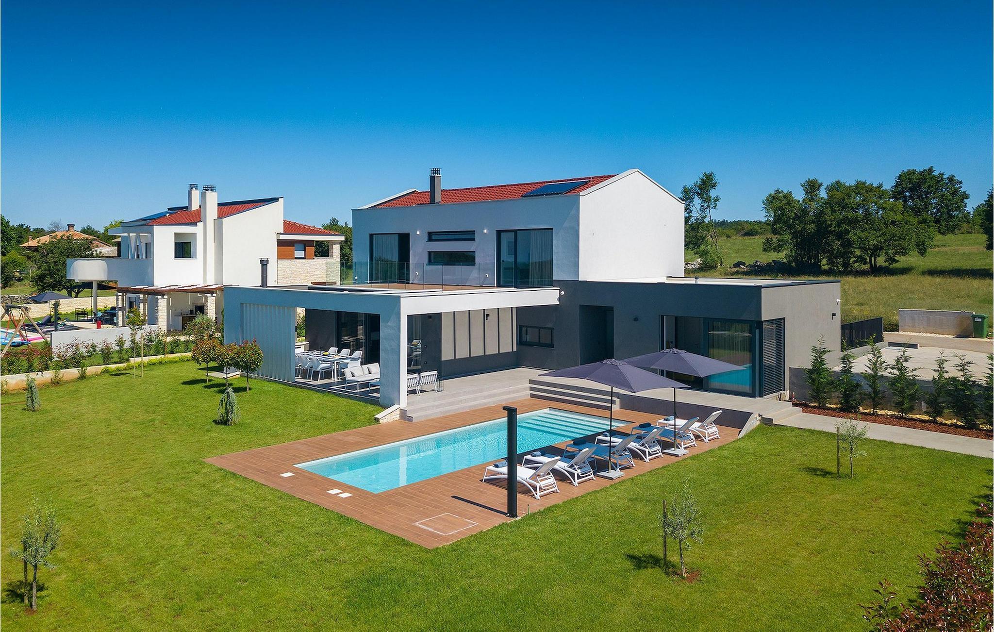Die Villa Sabina ist eine schöne moderne Villa mit privatem Pool und vier Schlafzimmern und bietet Platz für bis zu 8 Personen. Im Garten der Villa gibt es einen privaten Pool, der an heißen Tagen für Abkühlung sorgt, und Sonnenliegen, auf denen Sie die Seele baumeln lassen können. In der Nähe des Pools steht Ihnen eine komfortable Lounge zur Verfügung, in der Sie morgens mit der ersten Tasse Kaffee oder Tee genießen können. Außerdem gibt es einen Essbereich im Freien mit Grill, an dem Sie Ihre Grillkünste unter Beweis stellen können. Die Lounge eignet sich hervorragend für Mahlzeiten im Freien mit Familie und Freunden.