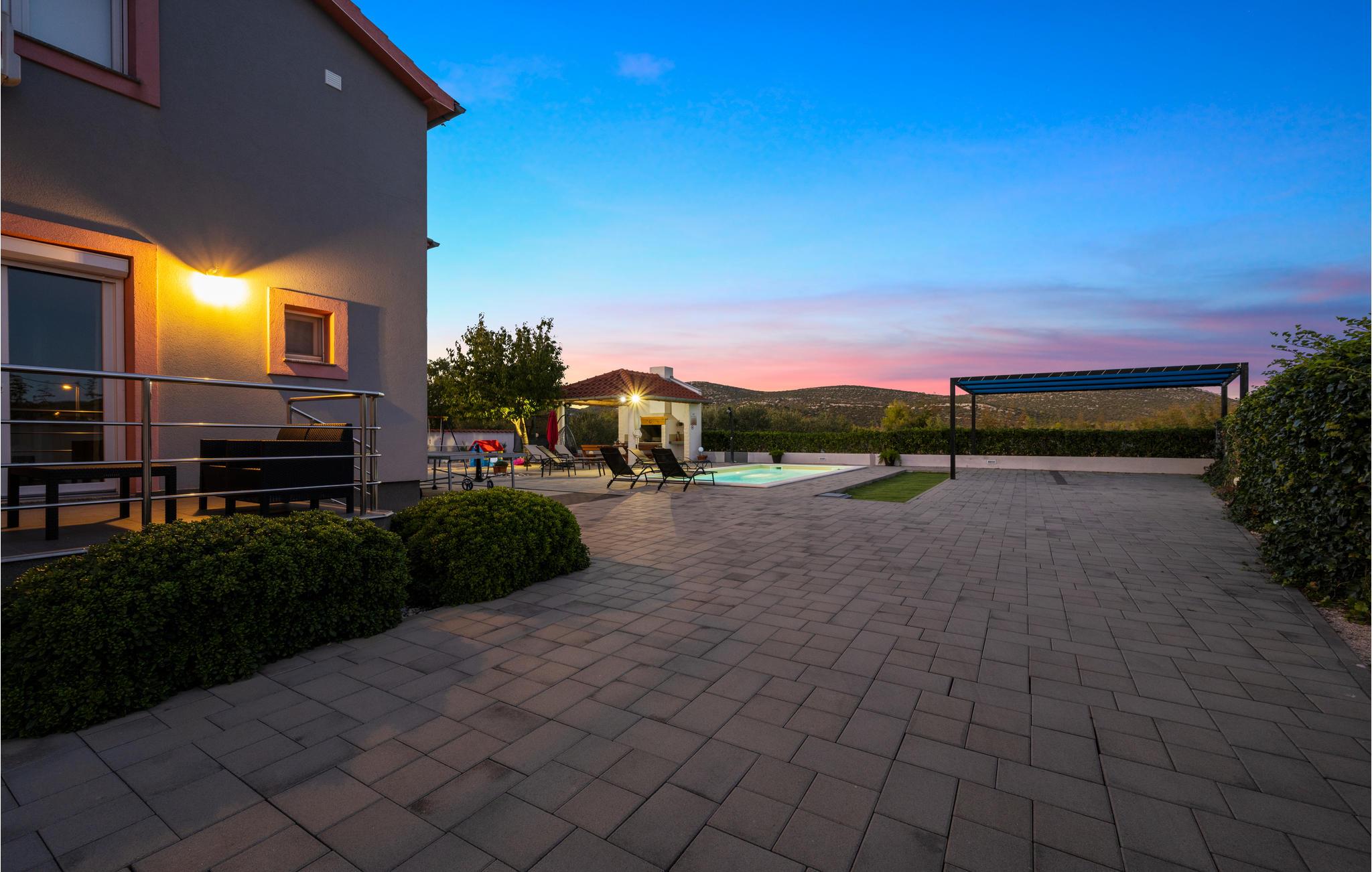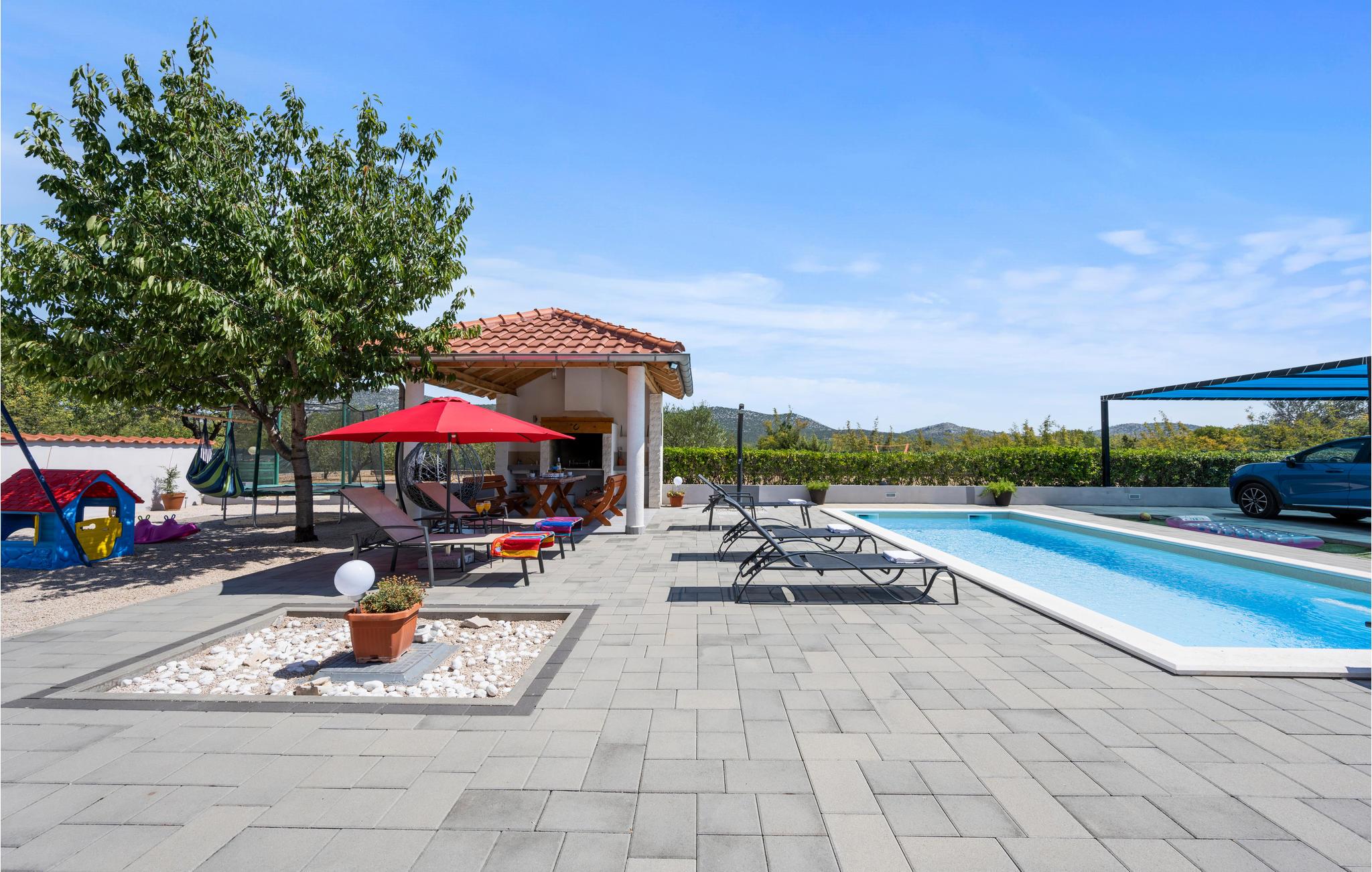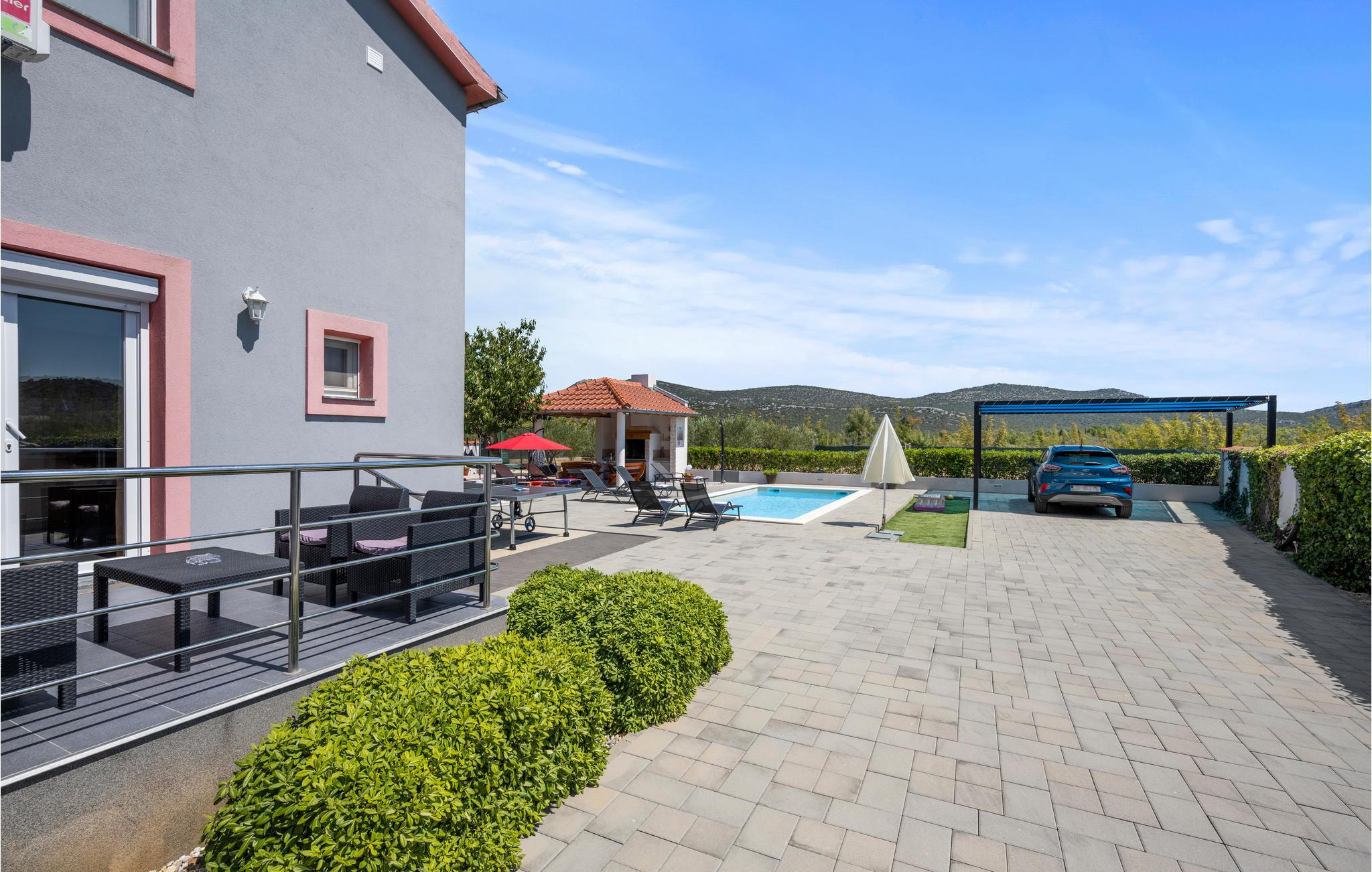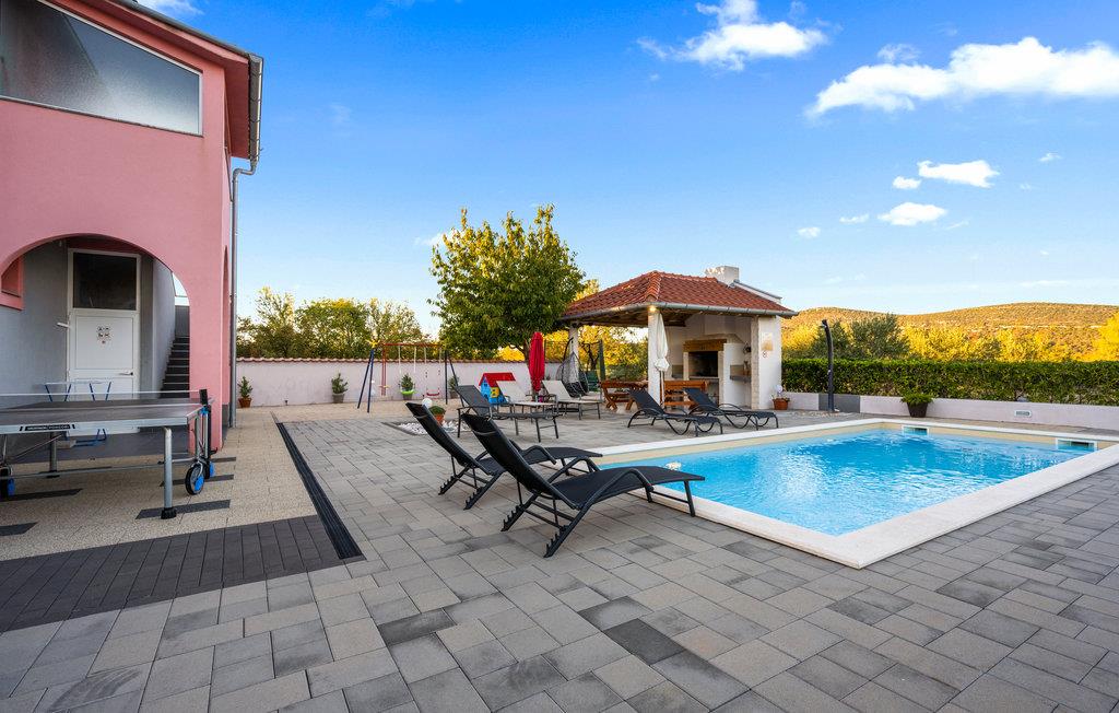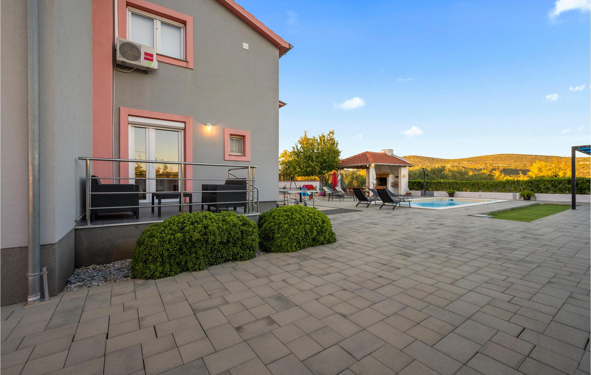 Dieses freundliche Ferienhaus in Dubrava liegt unweit der Stadt Tisno. Es ist praktisch und funktionell ausgestattet und verfügt über drei Wohneinheiten. Genießen Sie Ihr Frühstück auf der großen Terrasse und erfrischen Sie sich an heißen Sommertagen im Außenpool auf dem umzäunten Grundstück. Hier steht Ihnen auch der Grill zur Verfügung. Während Ihres Aufenthaltes empfehlen wir einen Besuch in den Städten Tisno und Sibenik, sie sind bekannt für viele Sehenswürdigkeiten und ein reiches Gastronomieangebot. Naturliebhabern sollten die Nationalparks Krka und Kornati nicht unentdeckt bleiben.