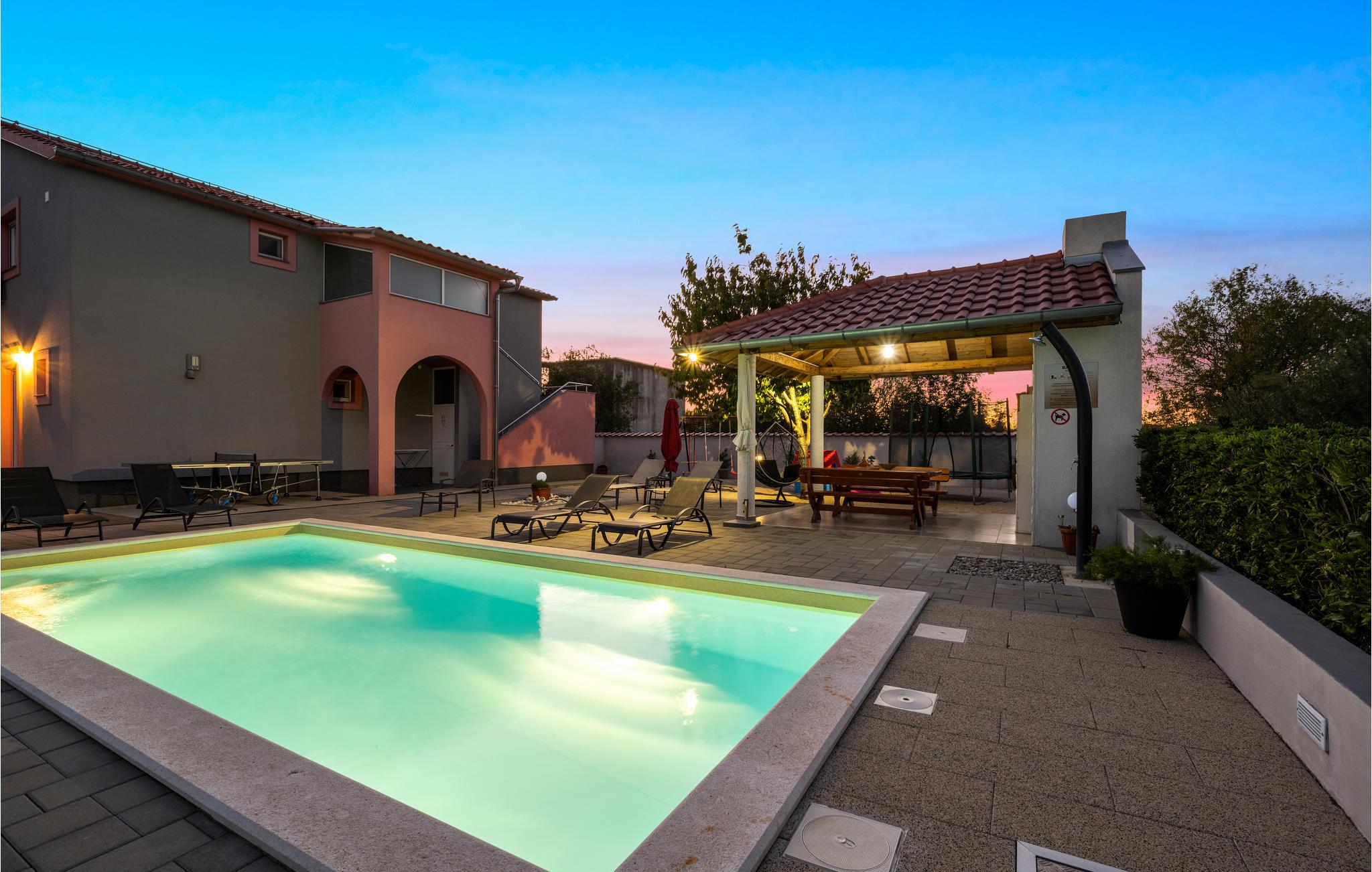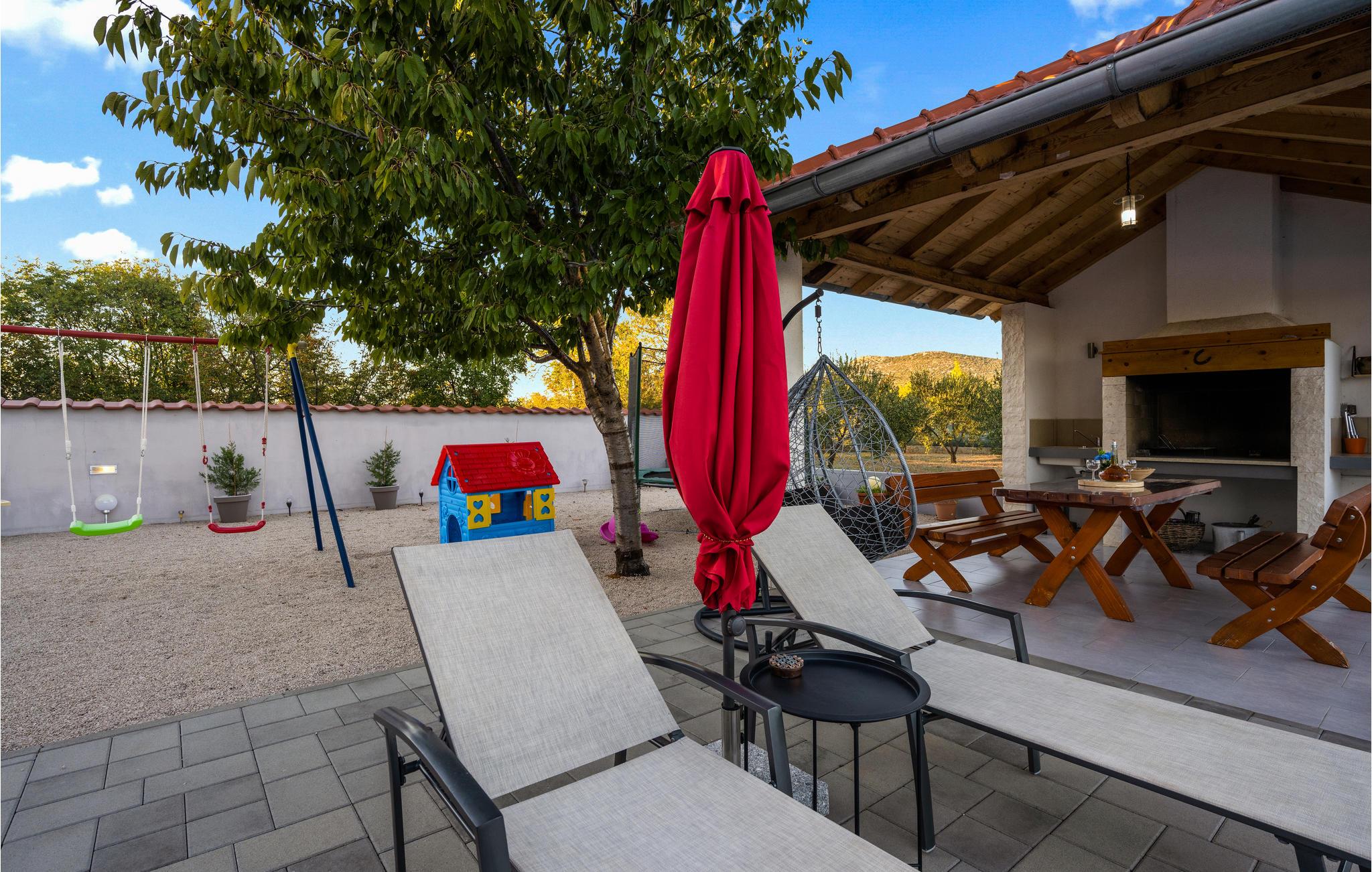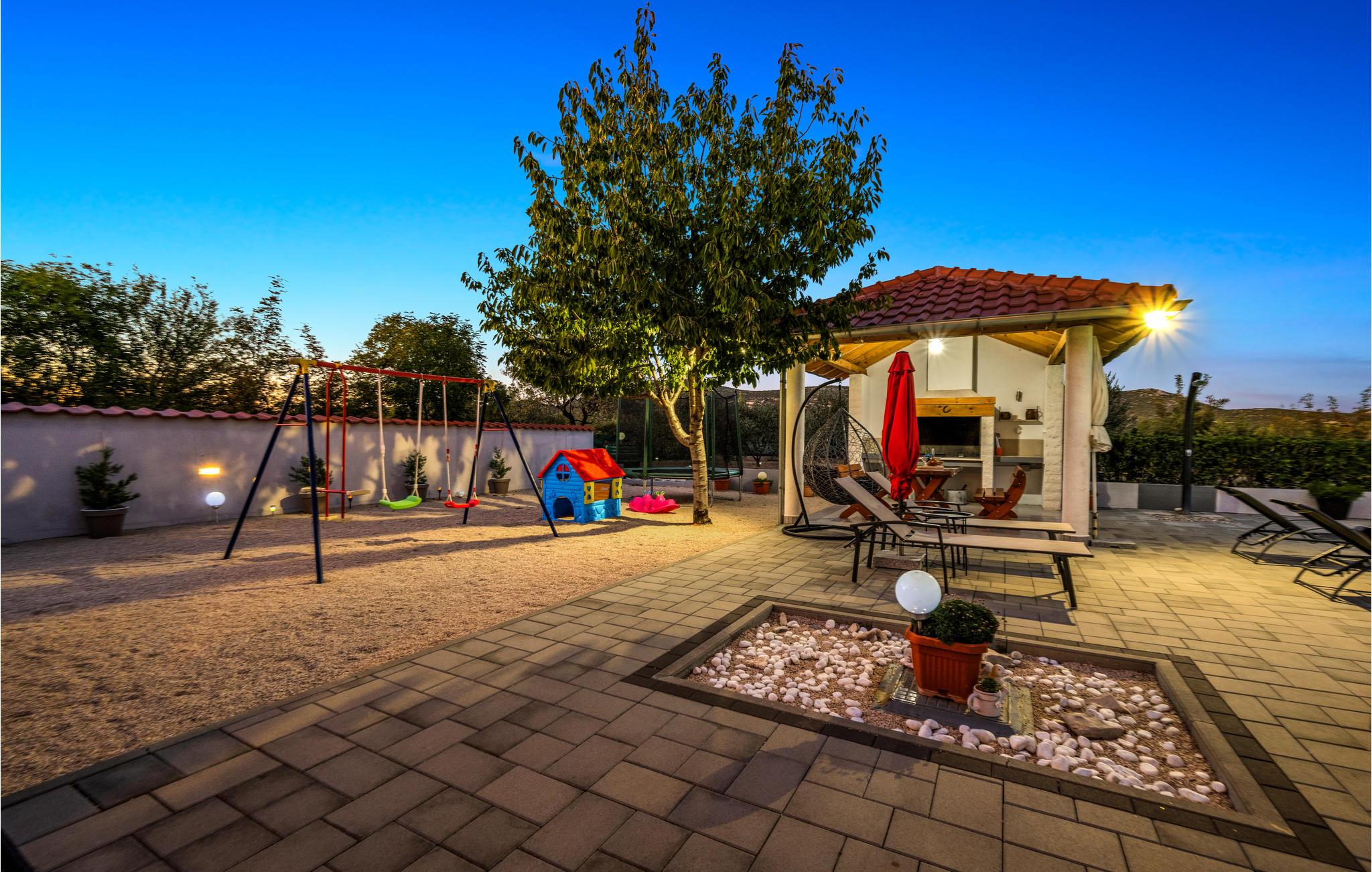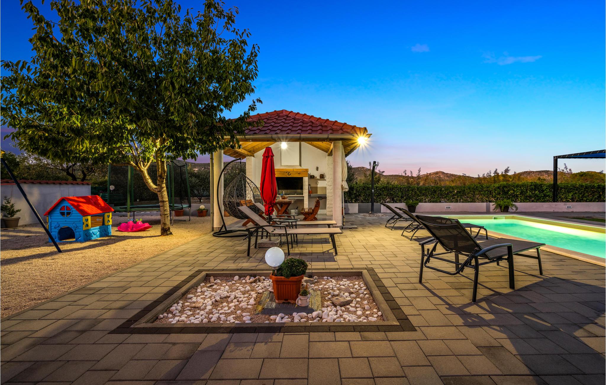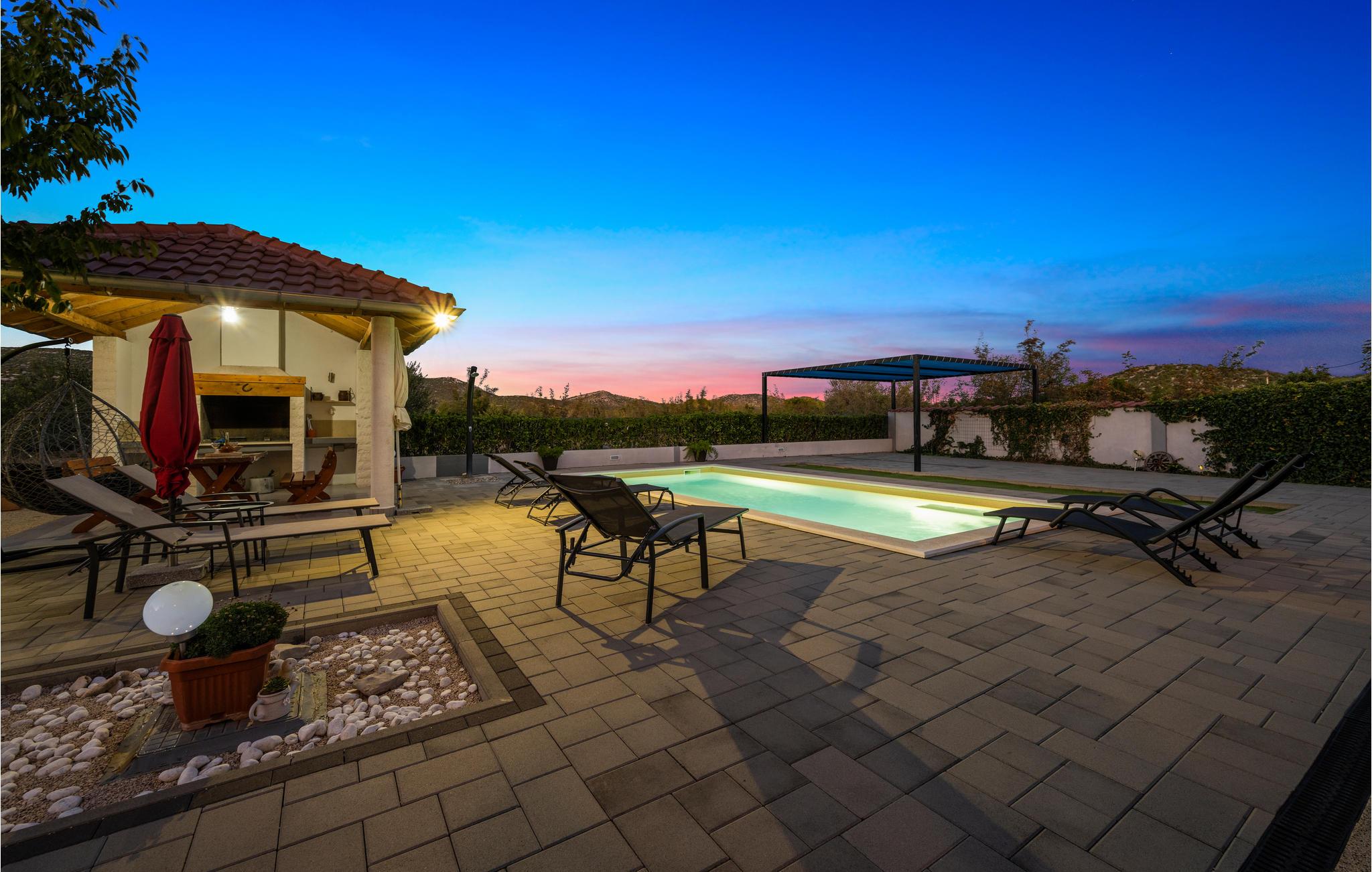 Dieses freundliche Ferienhaus in Dubrava liegt unweit der Stadt Tisno. Es ist praktisch und funktionell ausgestattet und verfügt über drei Wohneinheiten. Genießen Sie Ihr Frühstück auf der großen Terrasse und erfrischen Sie sich an heißen Sommertagen im Außenpool auf dem umzäunten Grundstück. Hier steht Ihnen auch der Grill zur Verfügung. Während Ihres Aufenthaltes empfehlen wir einen Besuch in den Städten Tisno und Sibenik, sie sind bekannt für viele Sehenswürdigkeiten und ein reiches Gastronomieangebot. Naturliebhabern sollten die Nationalparks Krka und Kornati nicht unentdeckt bleiben.