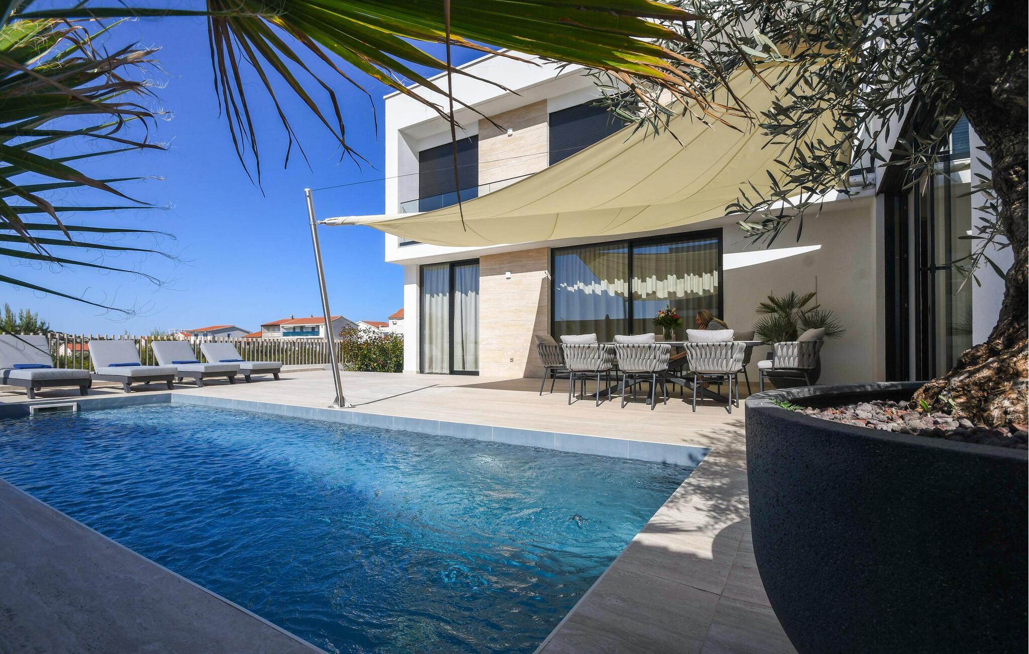 Genießen Sie Luxus und Komfort in diesem exklusiven Ferienhaus mit Pool.