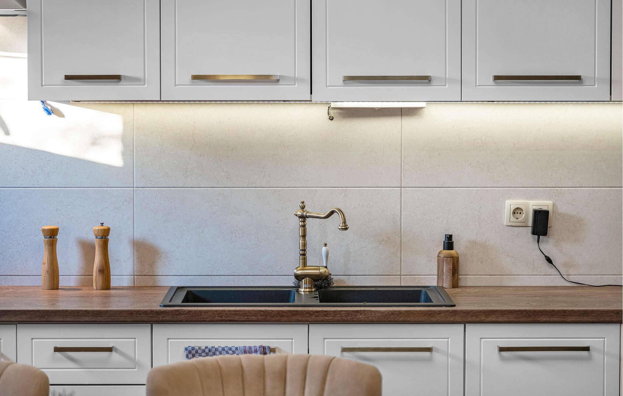 The kitchen has hot and cold water