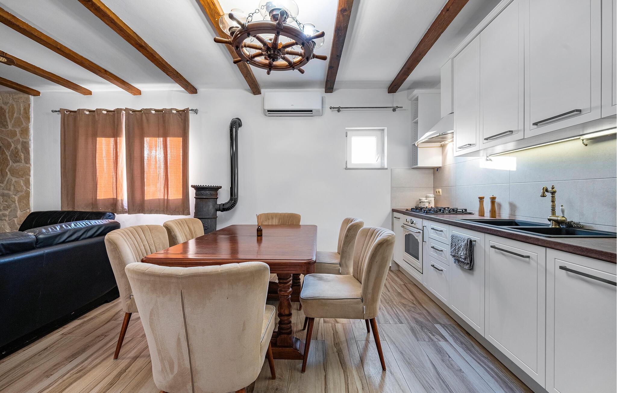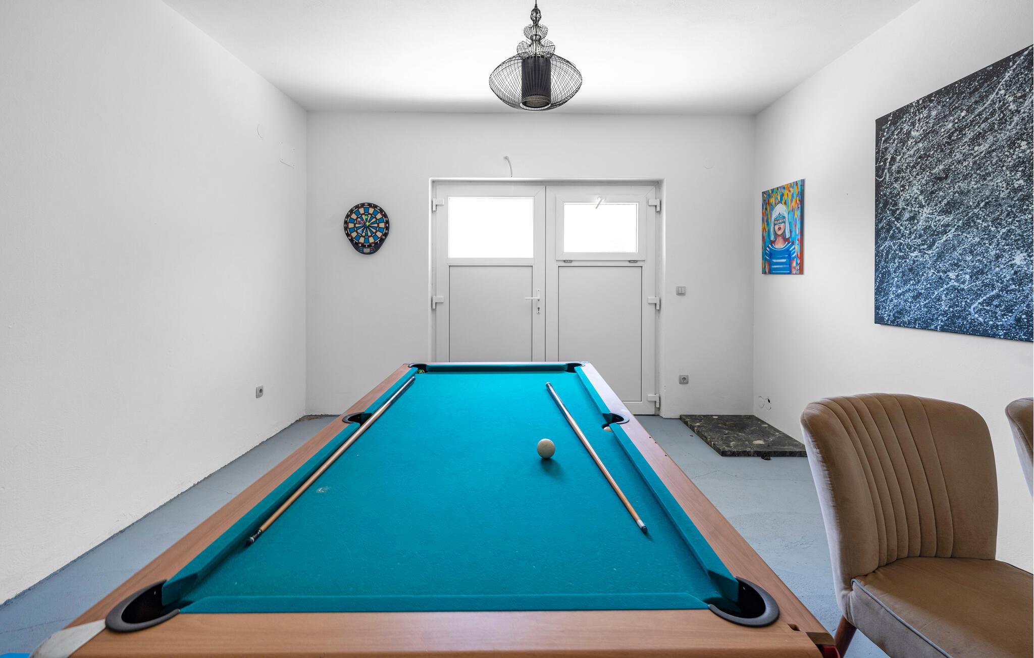 Willkommen in diesem großzügigen, ebenerdig erbauten Urlaubsdomizil, in dem Sie gemeinsam mit Ihren Liebsten den Alltag hinter sich lassen können. Zaubern Sie kulinarische Highlights und lassen Sie sich von der gelungenen Mischung aus modernen Annehmlichkeiten und rustikalen Details begeistern. Streamen Sie abends Ihre Lieblingsserie oder fordern Sie sich am Billardtisch oder beim Dartspiel heraus.
