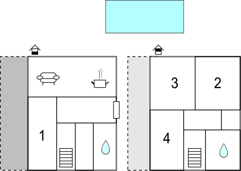 Badezimmer 6m2 (nr. 1) - WC. Warmes und kaltes Wasser. Dusche
