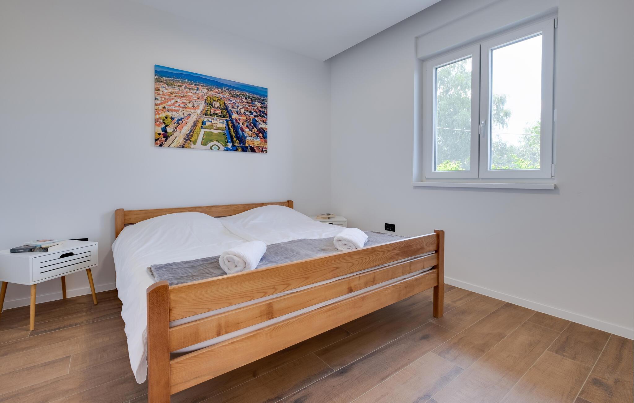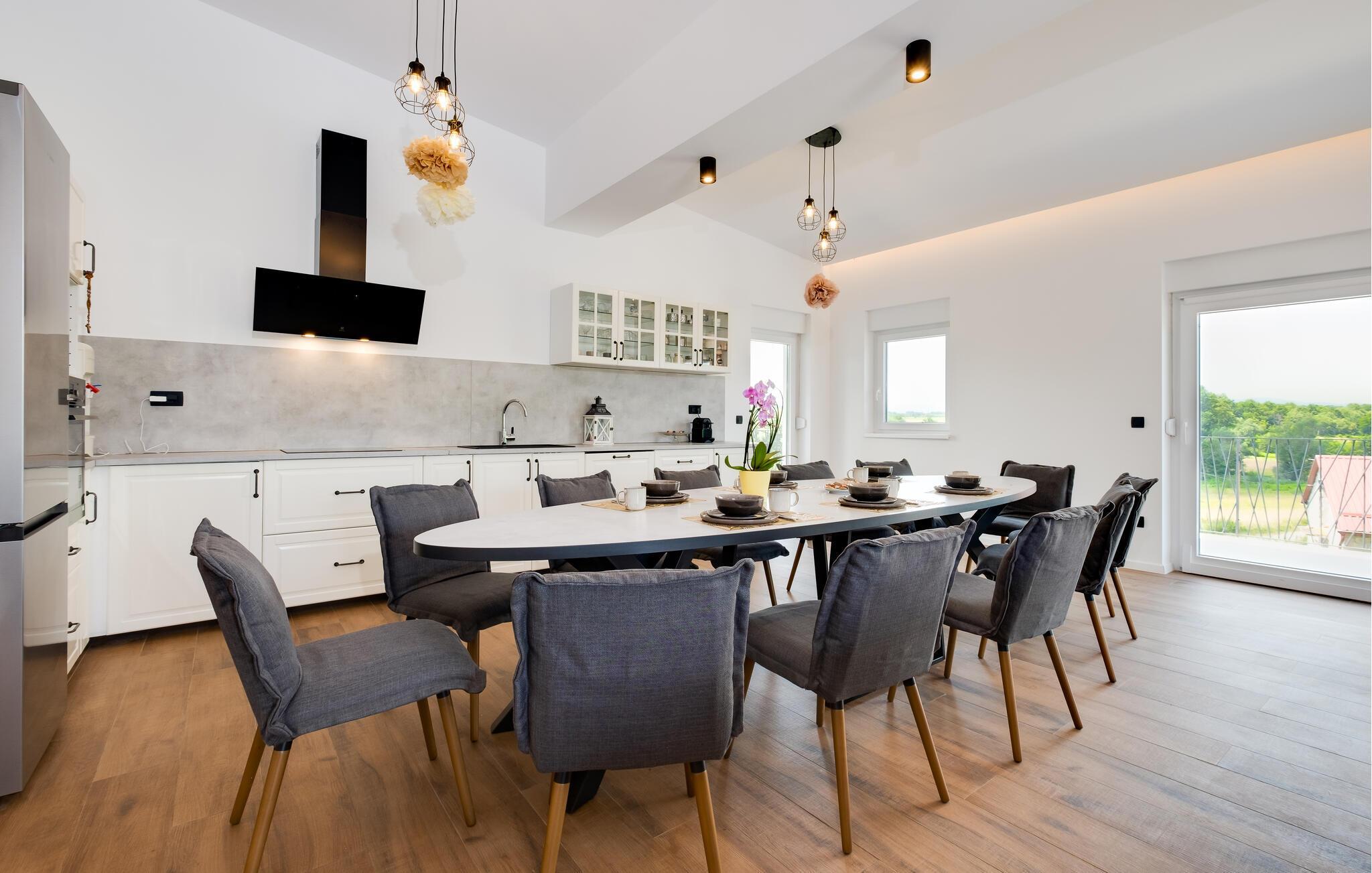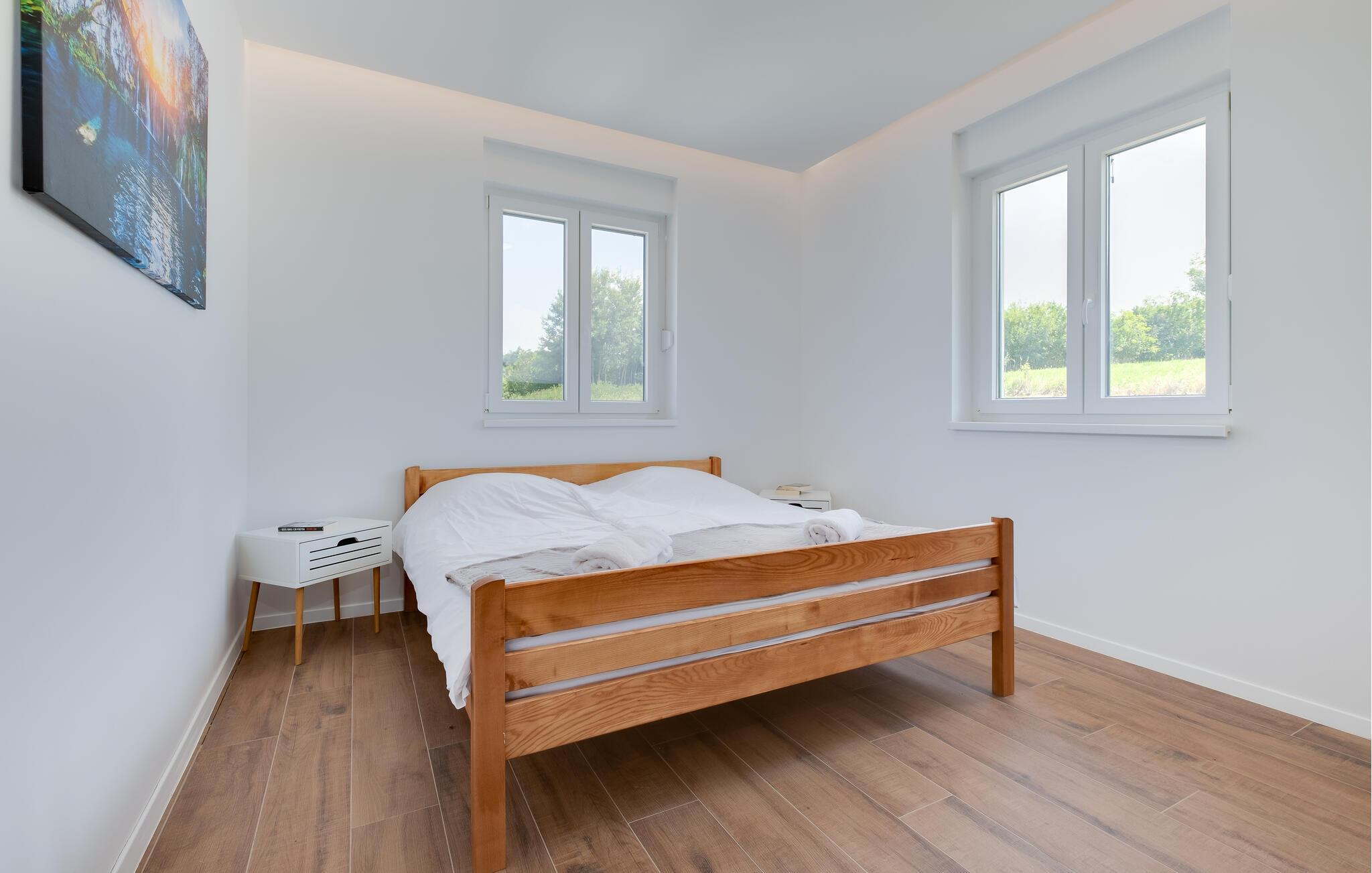 In Dvorisce, nahe Zagreb, lädt Sie dieses moderne Ferienhaus zu einer erholsamen Auszeit ein. Entspannen Sie sich am großzügigen Pool, der von einer geräumigen Terrasse umgeben ist, und lassen Sie den Blick über die sanften Hügel schweifen, die das Anwesen umgeben. Beginnen Sie Ihren Tag mit einem gemütlichen Frühstück auf der Terrasse unter den schattenspendenden Sonnenschirmen. Nutzen Sie die elegante Küche, um frische lokale Produkte zuzubereiten und den Tag in aller Ruhe zu planen. Der helle und großzügige Wohnraum bietet genug Platz für gesellige Abende oder ruhige Momente der Entspannung. Schauen Sie hier einen guten Film oder nutzen Sie den Außenbereich für ein Spiel Tischtennis mit Blick auf die malerische Landschaft.