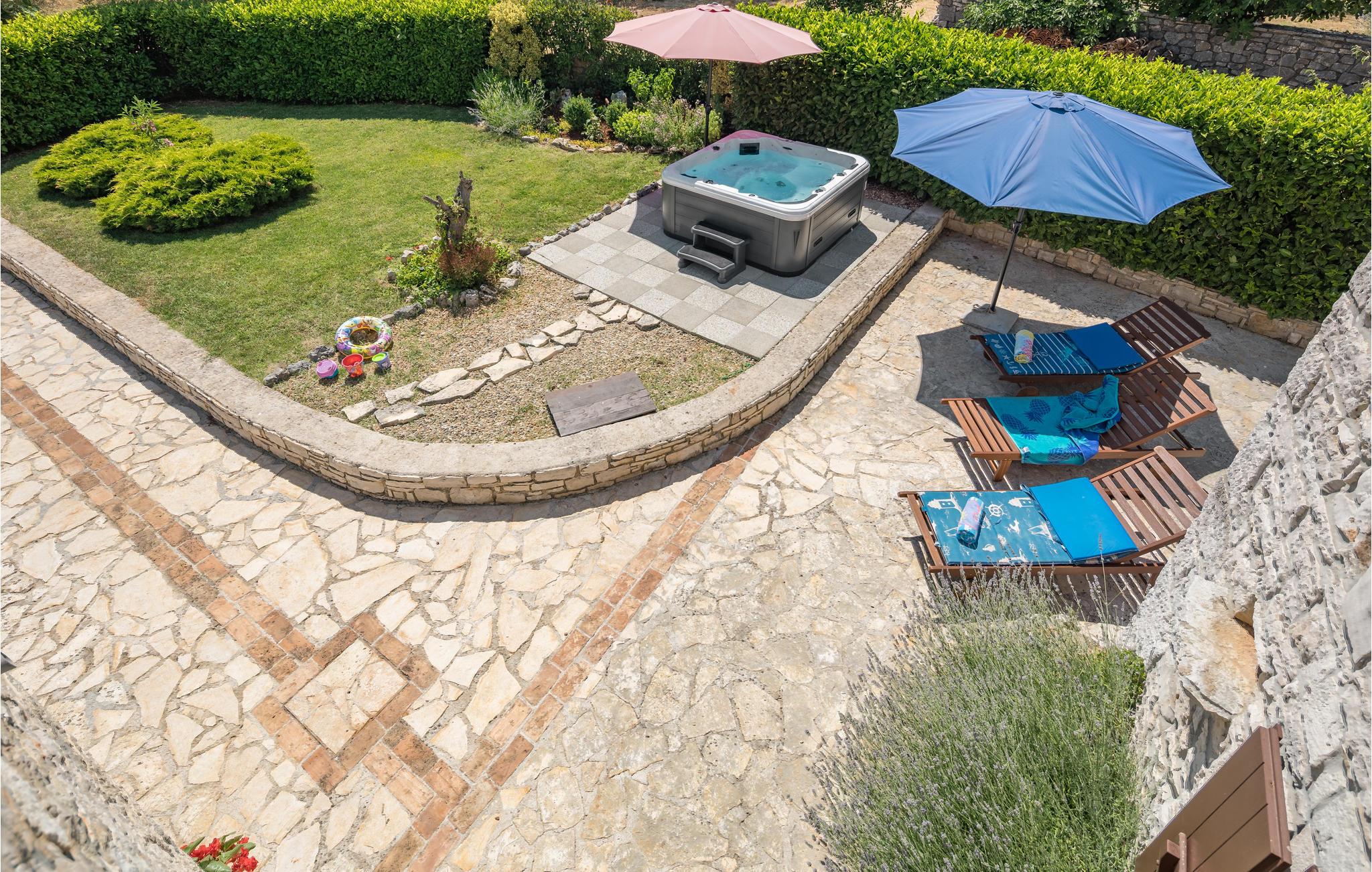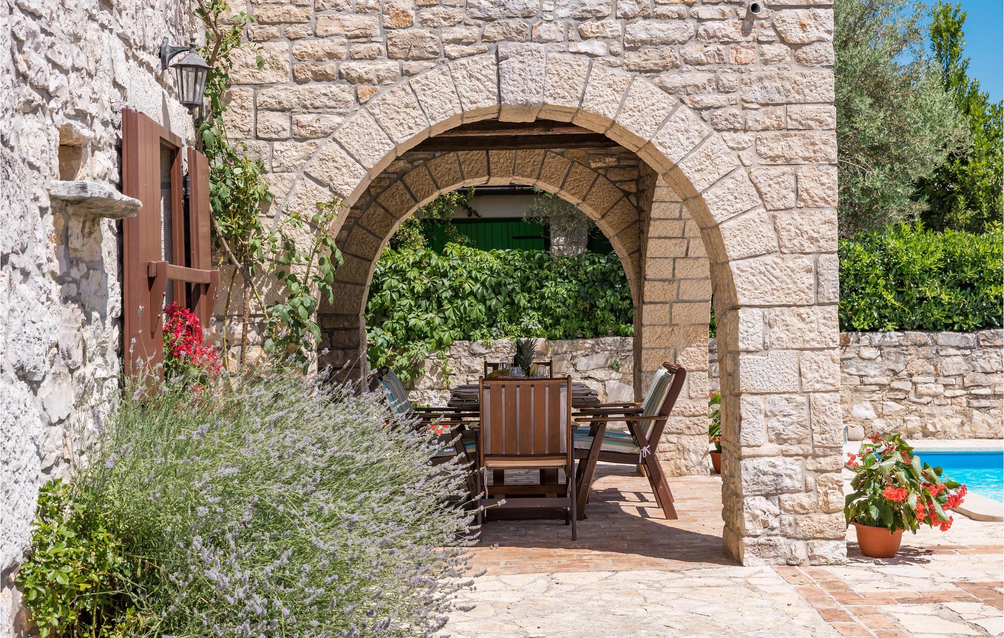 Schätzen Sie die Ruhe kleiner Orte, eine Erfrischung im Pool an heißen Tagen und das alles mit Blick auf eine grüne und blühende Landschaft? Legen Sie Wert auf schmackhafte Gerichte in guten Konobas, nette Menschen und eine gemütliche Atmosphäre? Dann ist dieses Ferienhaus im typisch istrischen Stil genau das Richtige für Sie! Es liegt im beschaulichen Ort Marasi und ist rustikal, elegant und zum Teil antik möbliert. Entspannen Sie am schönen Swimmingpool und genießen Sie dabei den hervorragenden, lokalen Wein. Den Kindern bietet sich, neben Schaukel und Sandkasten, viel Platz zum Spielen und Toben. Wir empfehlen Ihnen u.a. einen Ausflug nach Vrsar! Hier finden Sie schöne Strände und kleine, gemütliche Konobas mit traditionellen Gerichten. In Porec können Sie durch enge Gassen schlendern und eines der zahlreichen Cafés besuchen. Ein Erlebnis für Kinder ist der Dinosauruspark in Funtana. Er ist der Zweite dieser Art in Europa. Hier kann man die Saurier in wahrer Größe und in Bewegung bestaunen.