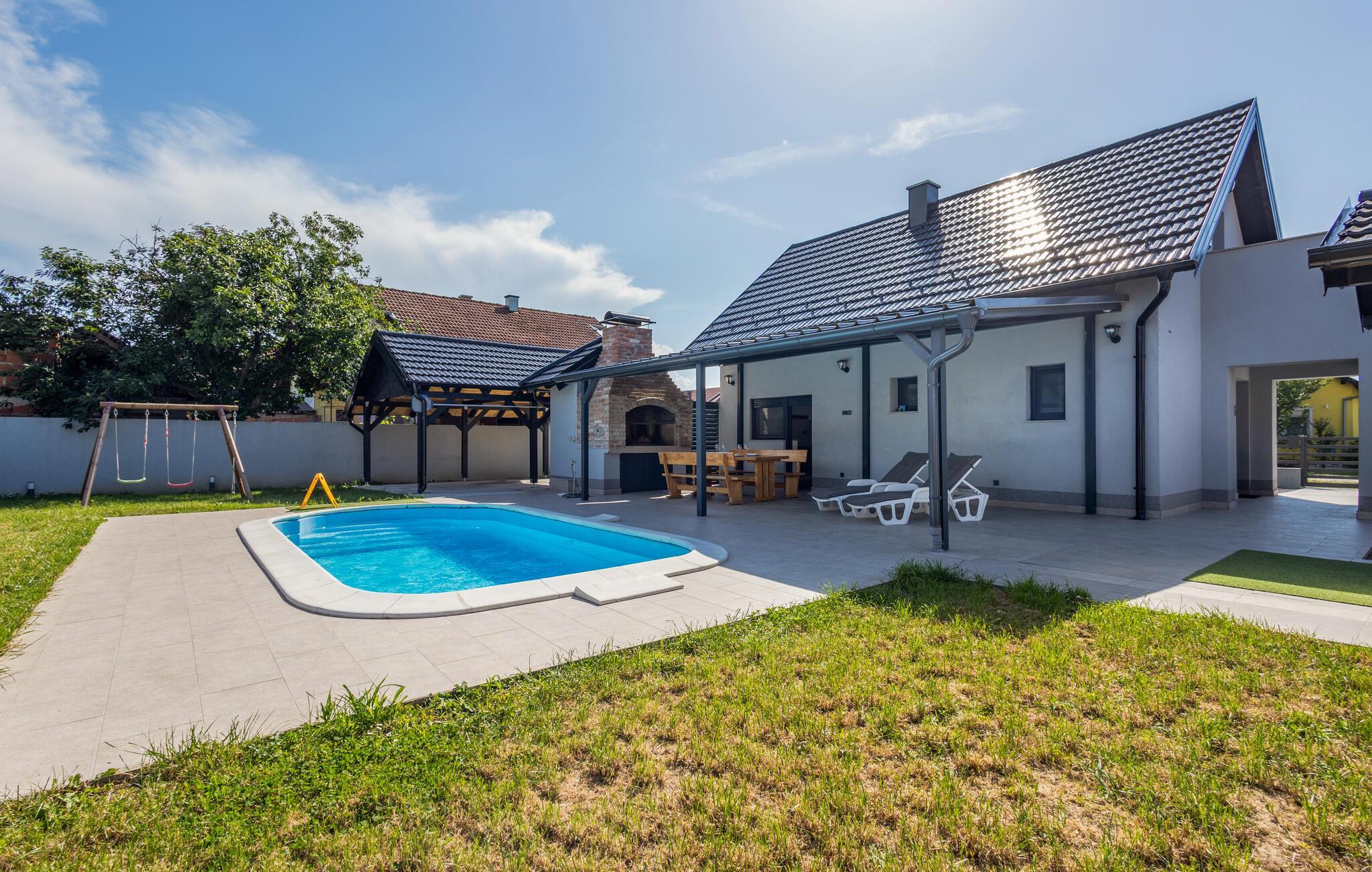 Erleben Sie entspannte Tage in diesem komfortablen Ferienhaus mit Pool und freuen Sie sich auf zahlreiche Extras.