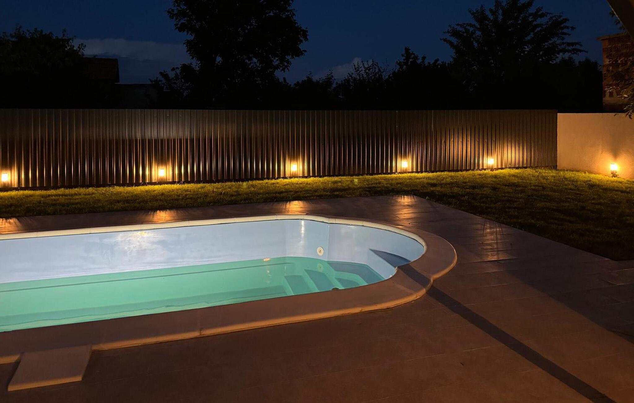 Auf Ihrer schattigen Terrasse können Sie morgens ein herrliches Frühstück servieren. Ziehen Sie ruhige Bahnen im Pool, bevor ihn Ihre Kinder zum Planschen und Toben beanspruchen, und blicken Sie beim Entspannen auf der Sonnenliege in den tiefblauen Himmel. Dank einer gemütlichen Beleuchtung lädt der Pool auch an warmen Sommernächten zum stimmungsvollen Baden ein.