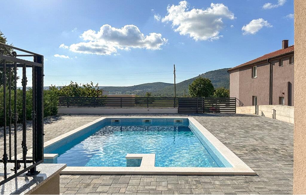Verbringen Sie in diesem Ferienhaus erholsame Urlaubstage mit Pool, Weitblick und viel Platz für die ganze Familie.