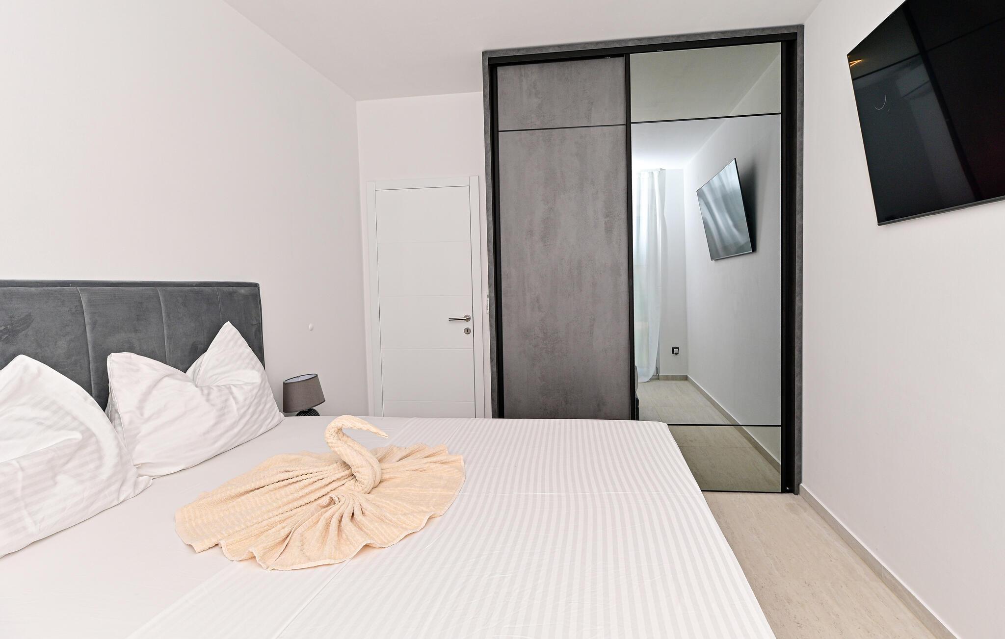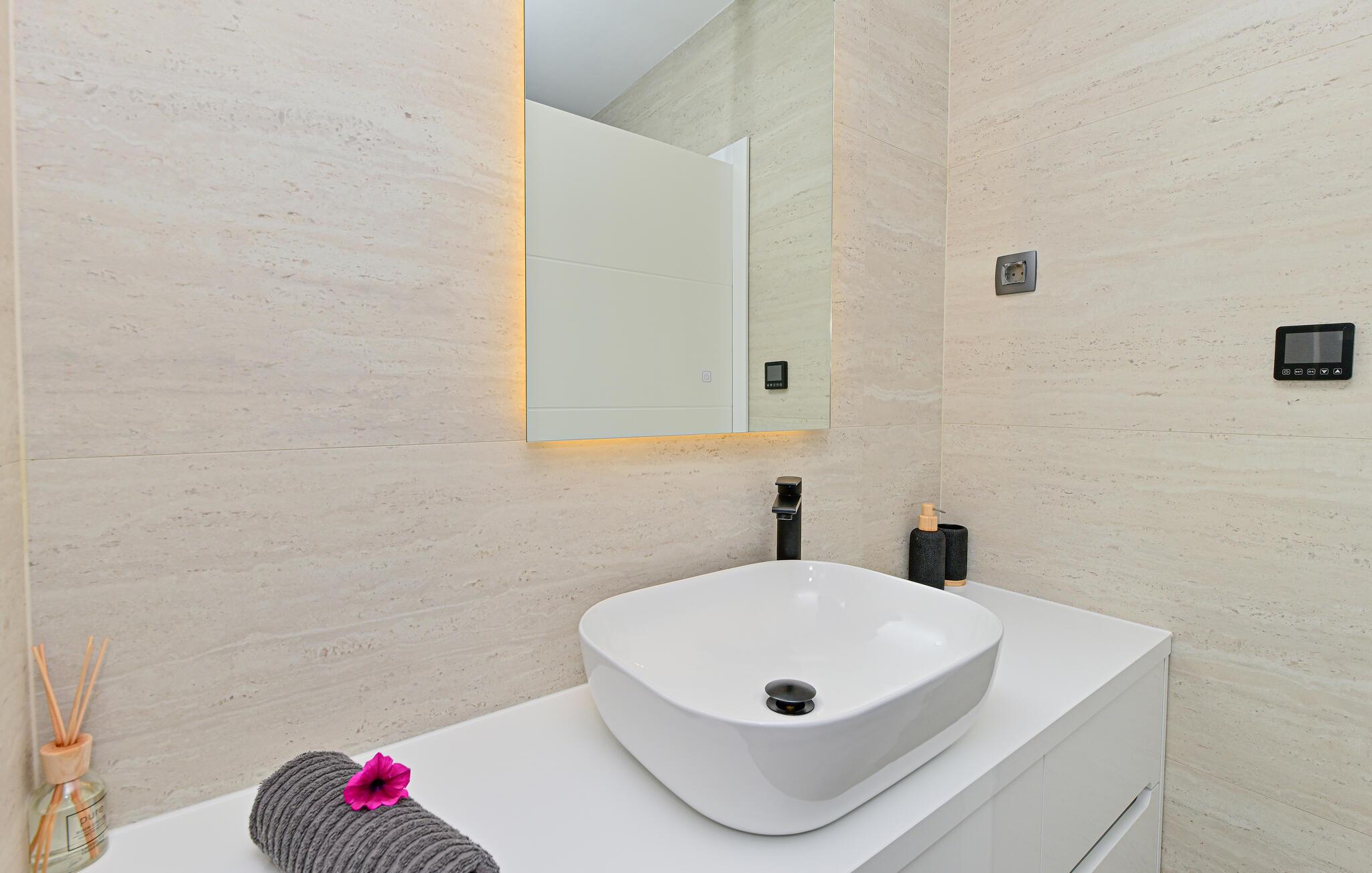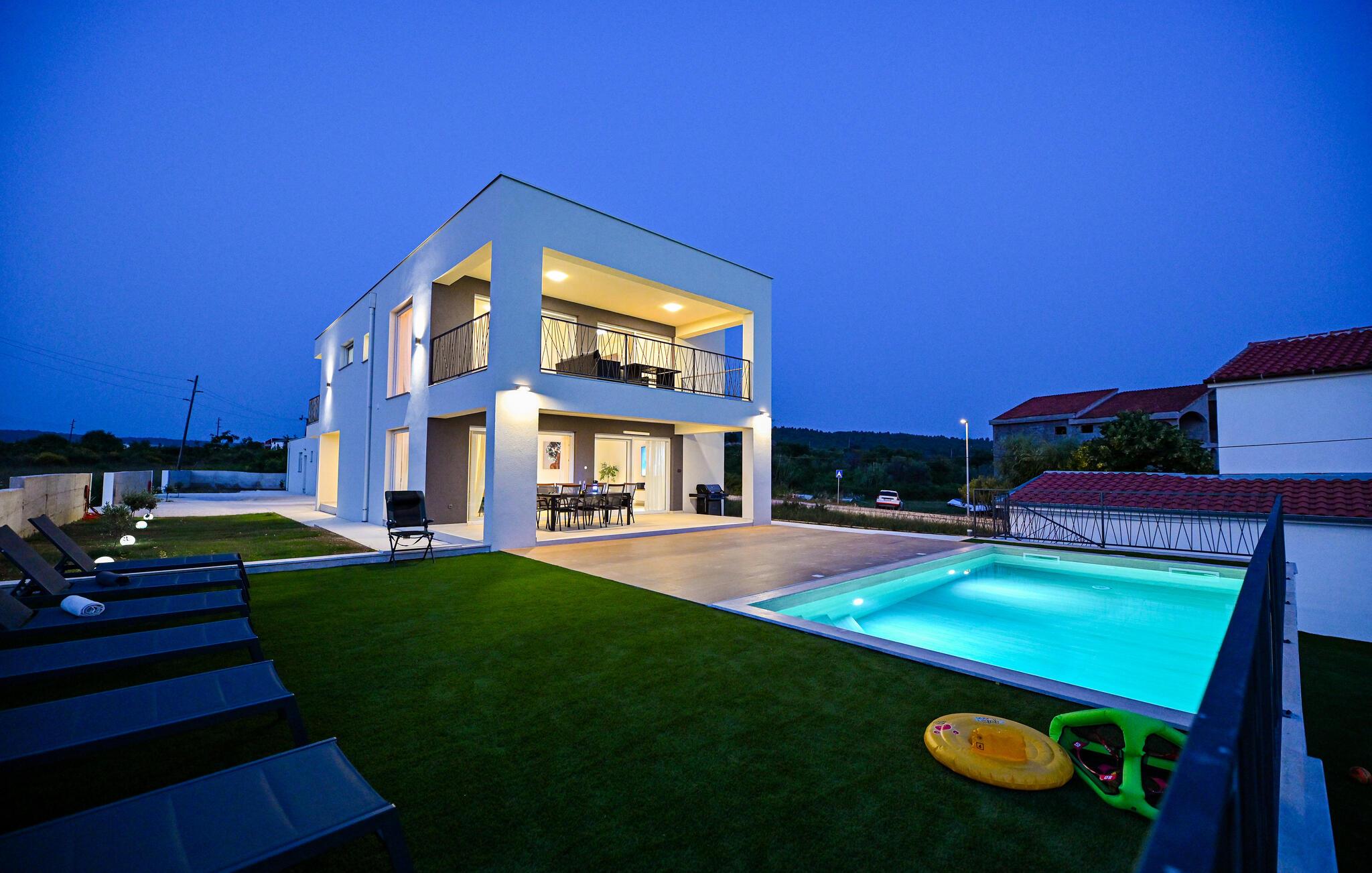 Ziehen Sie gleich nach dem Aufstehen entspannt Ihre Bahnen im Pool und lassen Sie bei einem Frühstück auf der Terrasse den Blick über das nahe Meer schweifen. Ihre Kinder werden sich am separaten Spielbereich erfreuen – hier locken eine Tischtennisplatte und ein Trampolin zum Toben. Entfachen Sie den Grill und zelebrieren Sie die gemeinsame Zeit mit stimmungsvollen Abenden unter freiem Himmel.