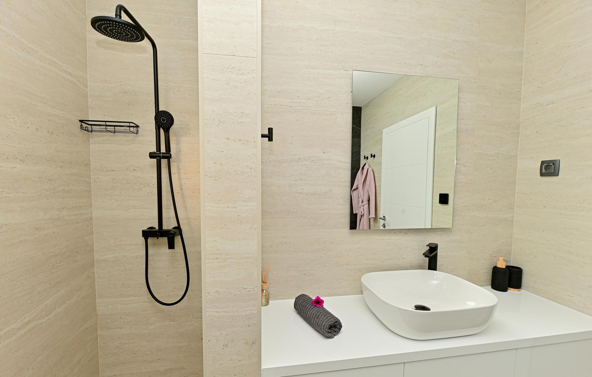 - WC mit warmem und kaltem Wasser, Dusche